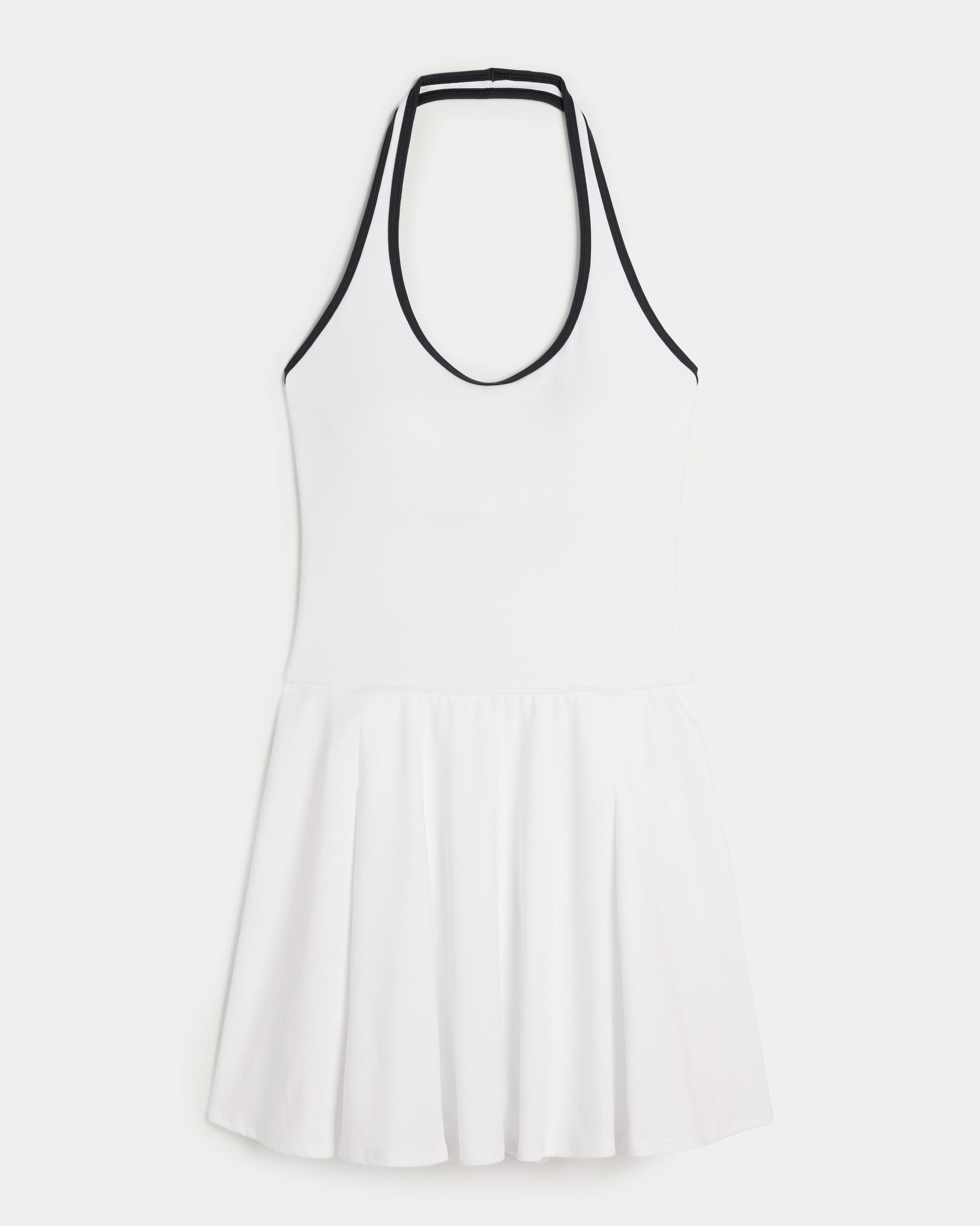 Your new fave dress is designed with a pleated skirt and halter straps. Built-in shelf bra with pads, bathroom-friendly shorts with a pocket.