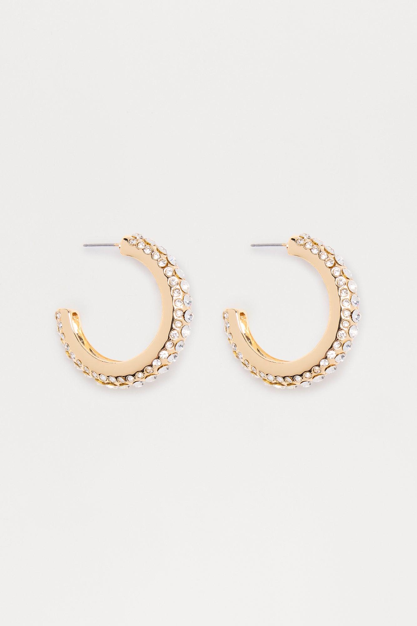 Available In Gold. Hoop Earrings Rhinestone Detail Post Back Closure Final Sale Imported