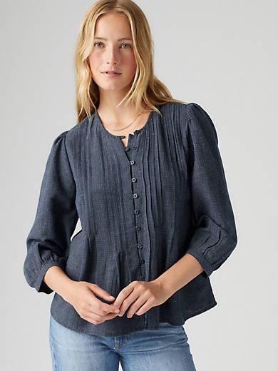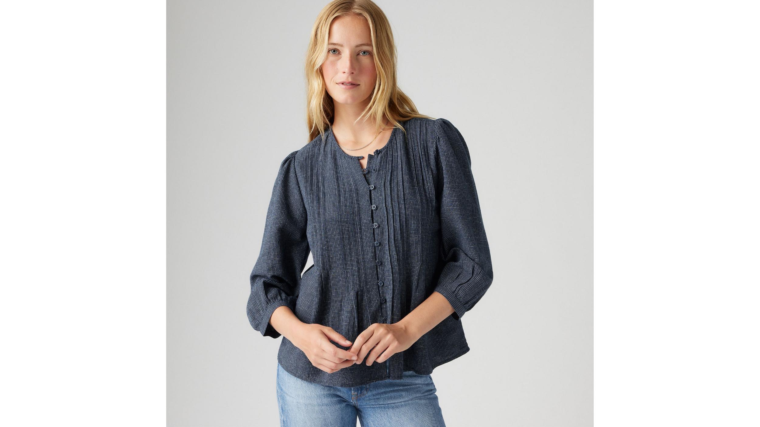 Our Gina Blouse checks all the boxes for the perfect button-up. We designed it with a high neckline, three-quarter length sleeves and cut it with a flowy fit.A fresh take on the timeless button-upCut with a slightly relaxed fitFeatures paneling at the chest