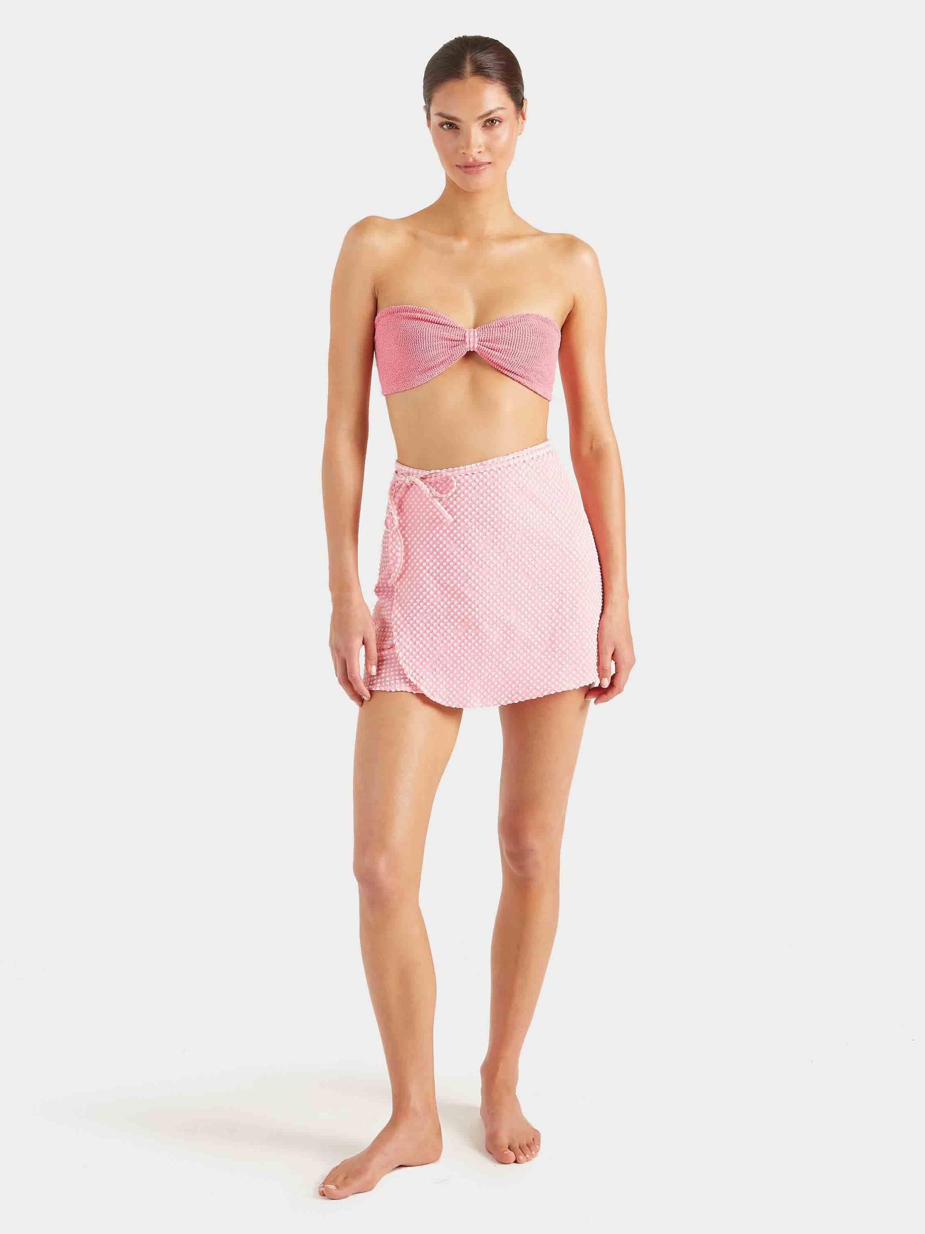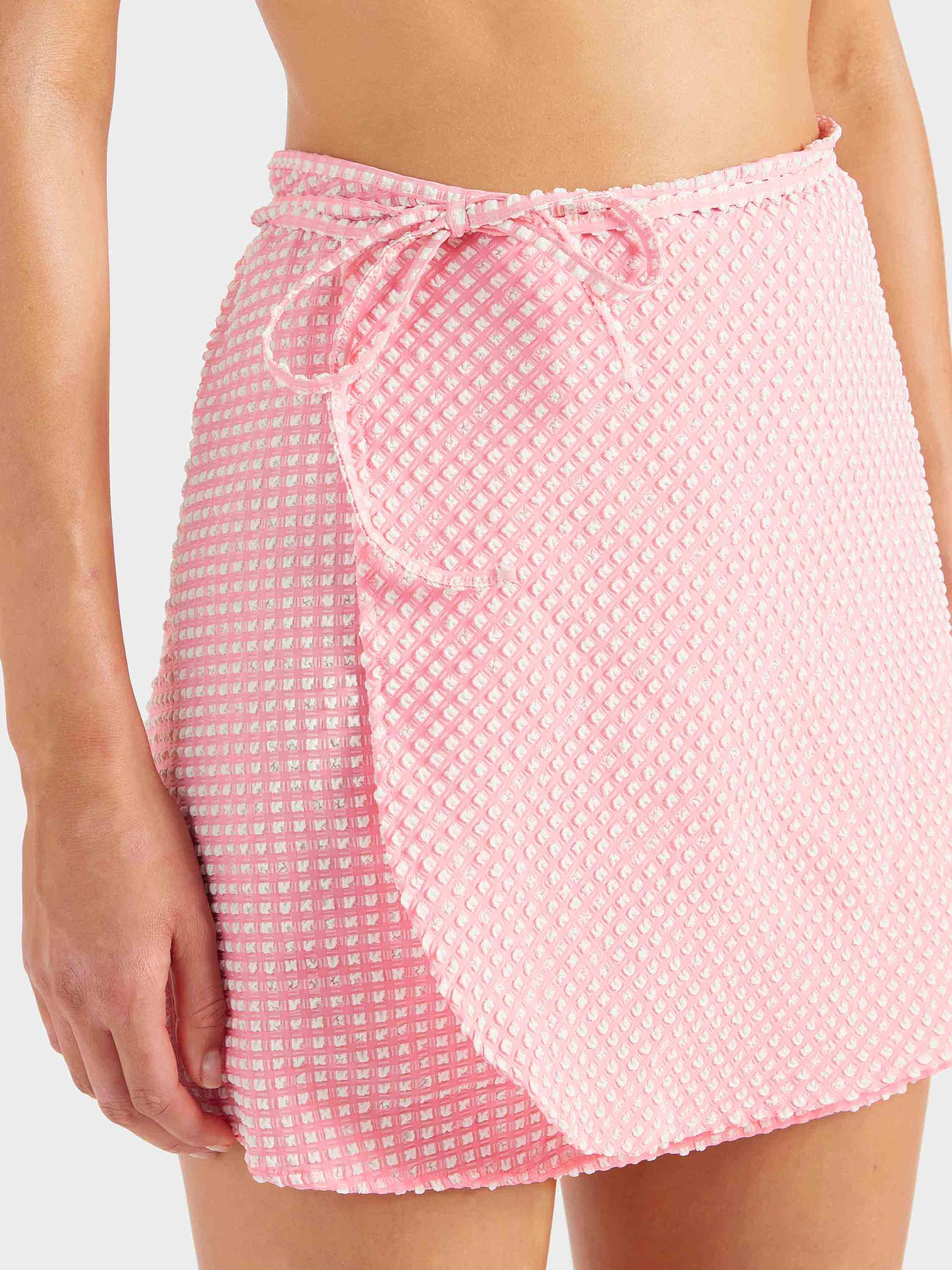This technical beach cover-up is as versatile as it is chic. The mini sarong is fabricated from ultra-lightweight, quick-drying, woven bi-stretch seersucker gingham. Featuring a classic wrap-around design and adjustable tie-waist for a personalised fit.