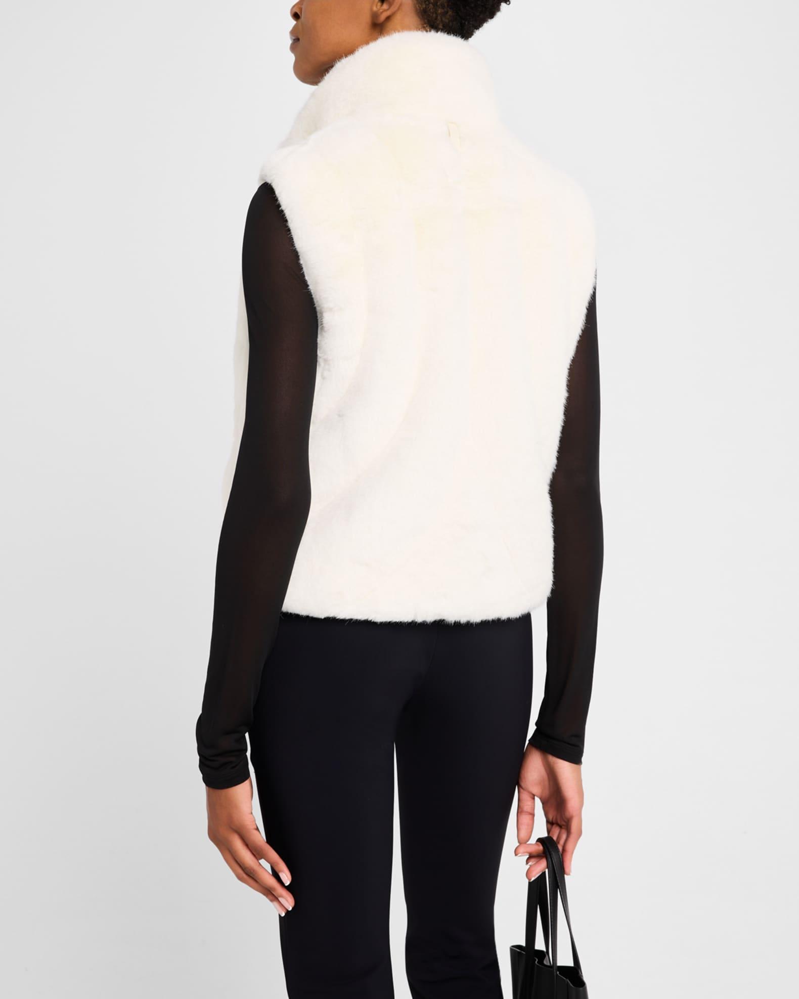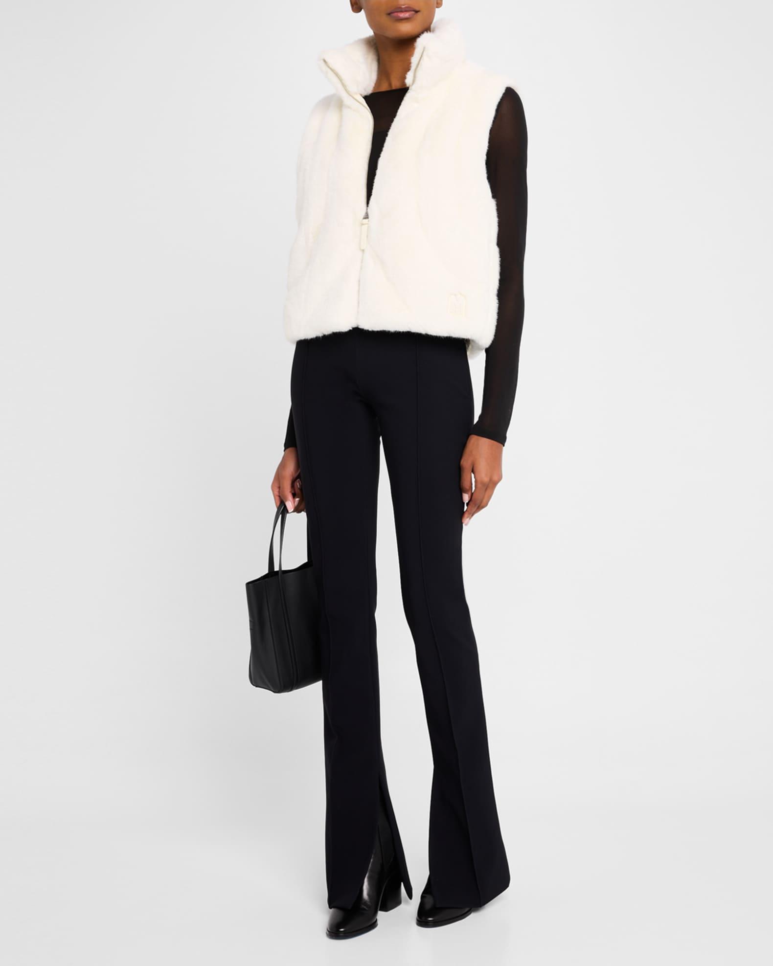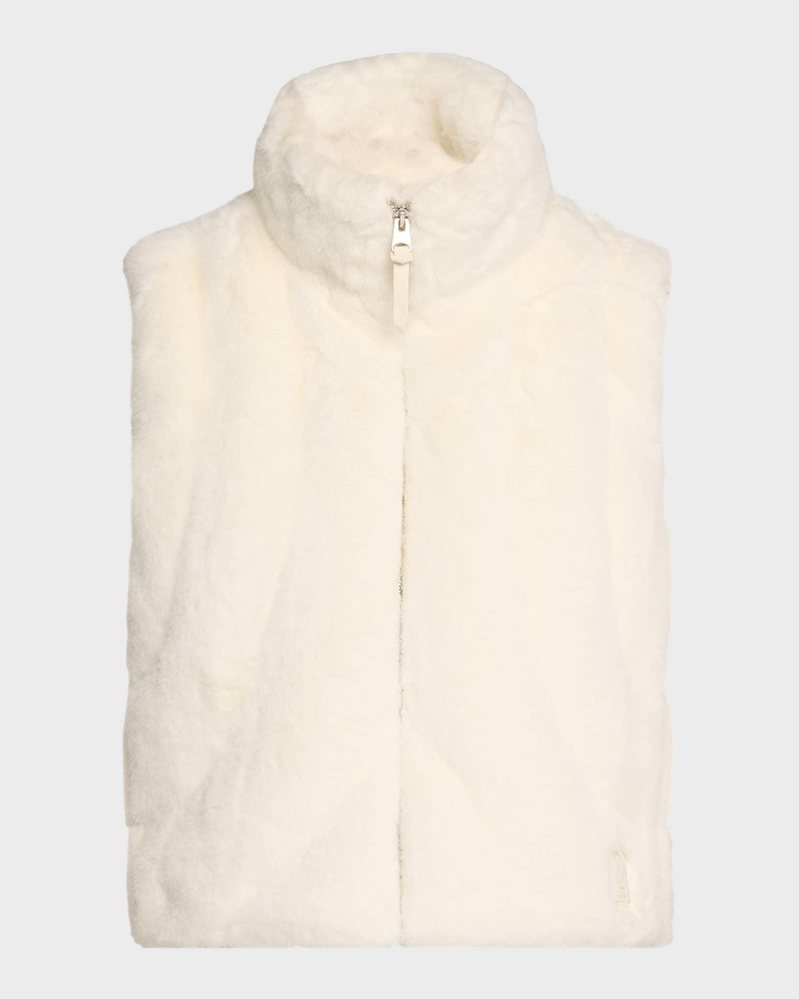 Mackage "Ginny" brushed faux fur vest designed with rounded graphic down channeling Approx. 21.3"L from shoulder to hem Stand collar Center front zip closure Sleeveless Insulated hidden side seam pockets Inner welt pocket with zipper Signature "M" logo patch at left waist Regular fit Polyester Lining: Recycled polyester Fill: Feather/Down 750+ fill power; up to +5ºc Dry clean, leather method dry cleaning Imported Model is 5'10"/177cm.