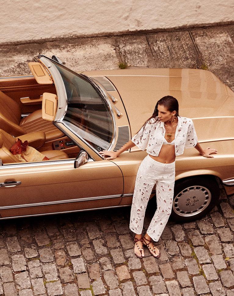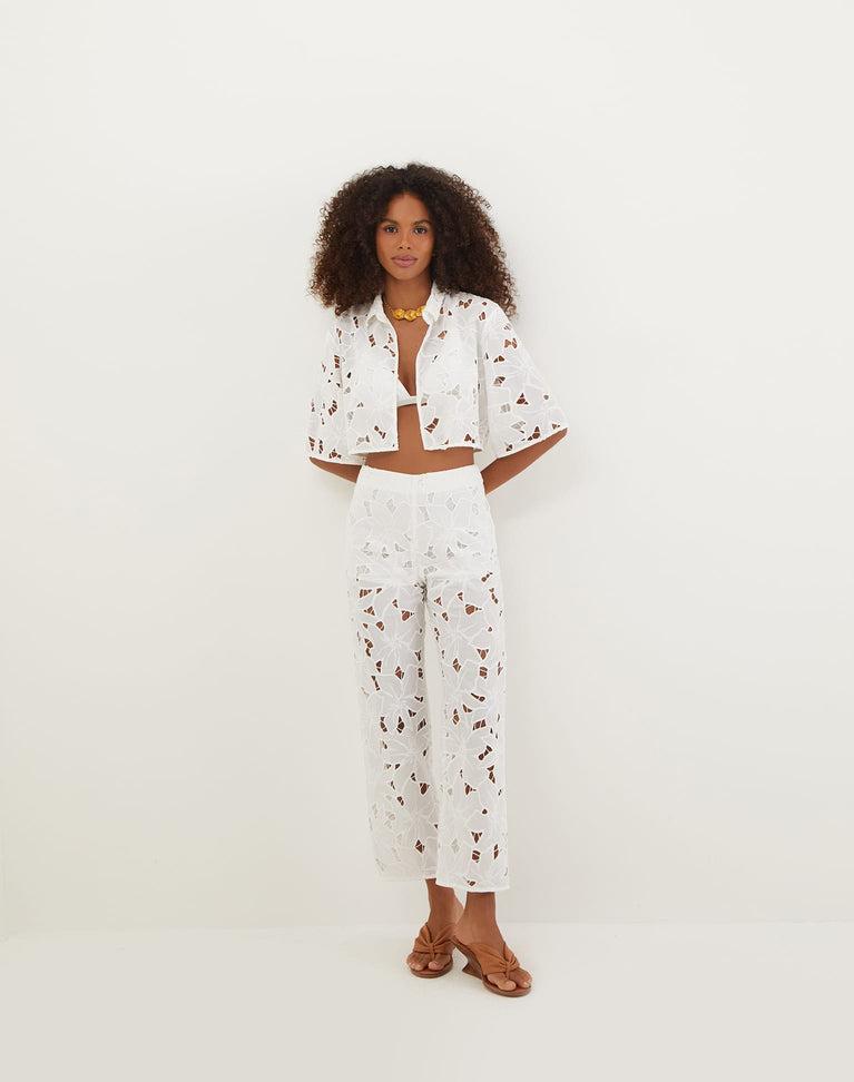 The ViX Eloah Blouse is a chic cropped top featuring a spread collar and wide half sleeves. Crafted from our embroidered cotton eyelet fabric, it offers a light, airy feel for an effortlessly stylish look. Style the Eloah Blouse over your favorite top or swimsuit and pair with a bottom of your choice for a resort-ready