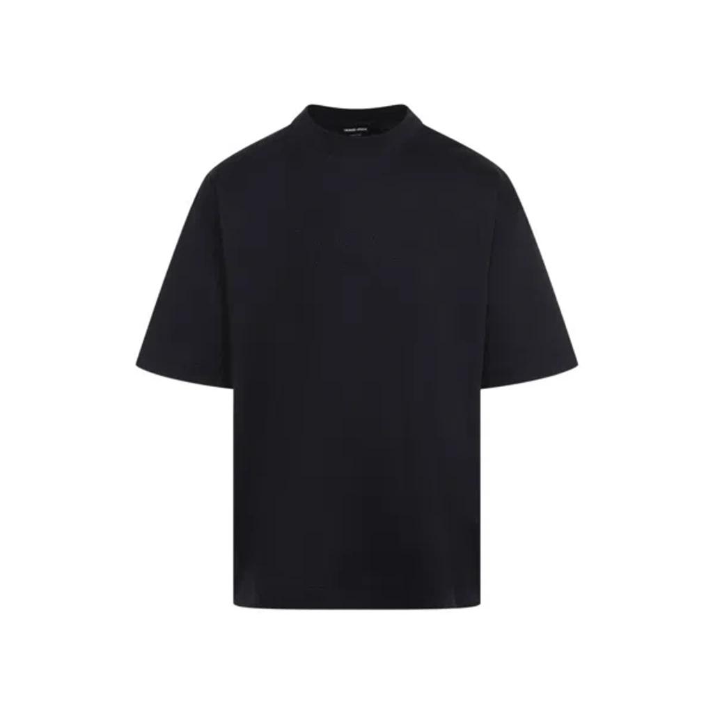 Shop Giorgio Armani Salute Blue Cotton T-shirt In Black from 800+ stores, starting at $403. Giorgio Armani Salute presents a pure blue cotton T-shirt, exemplifying modern luxury in casual wear. Featuring a round neck, short sleeves, and a straight hem, this top offers effortless sophistication. A subtle embossed logo on the front enhances its contemporary appeal, making it an essential addition to any wardrobe.- Brand: Giorgio Armani - Composition: 100% Cotton - Design: Round neck, short sleeves, straight hem - Styles: Casual, Modern