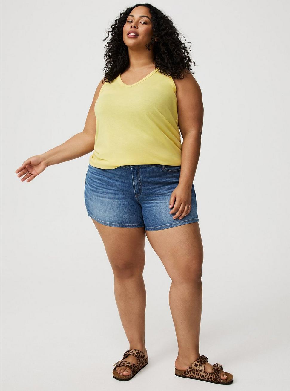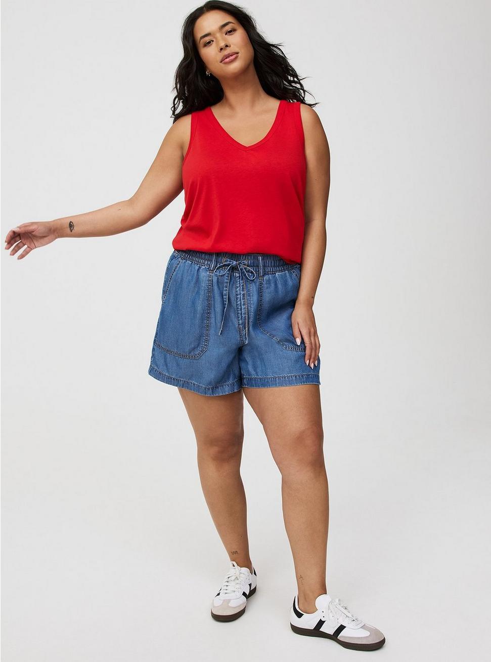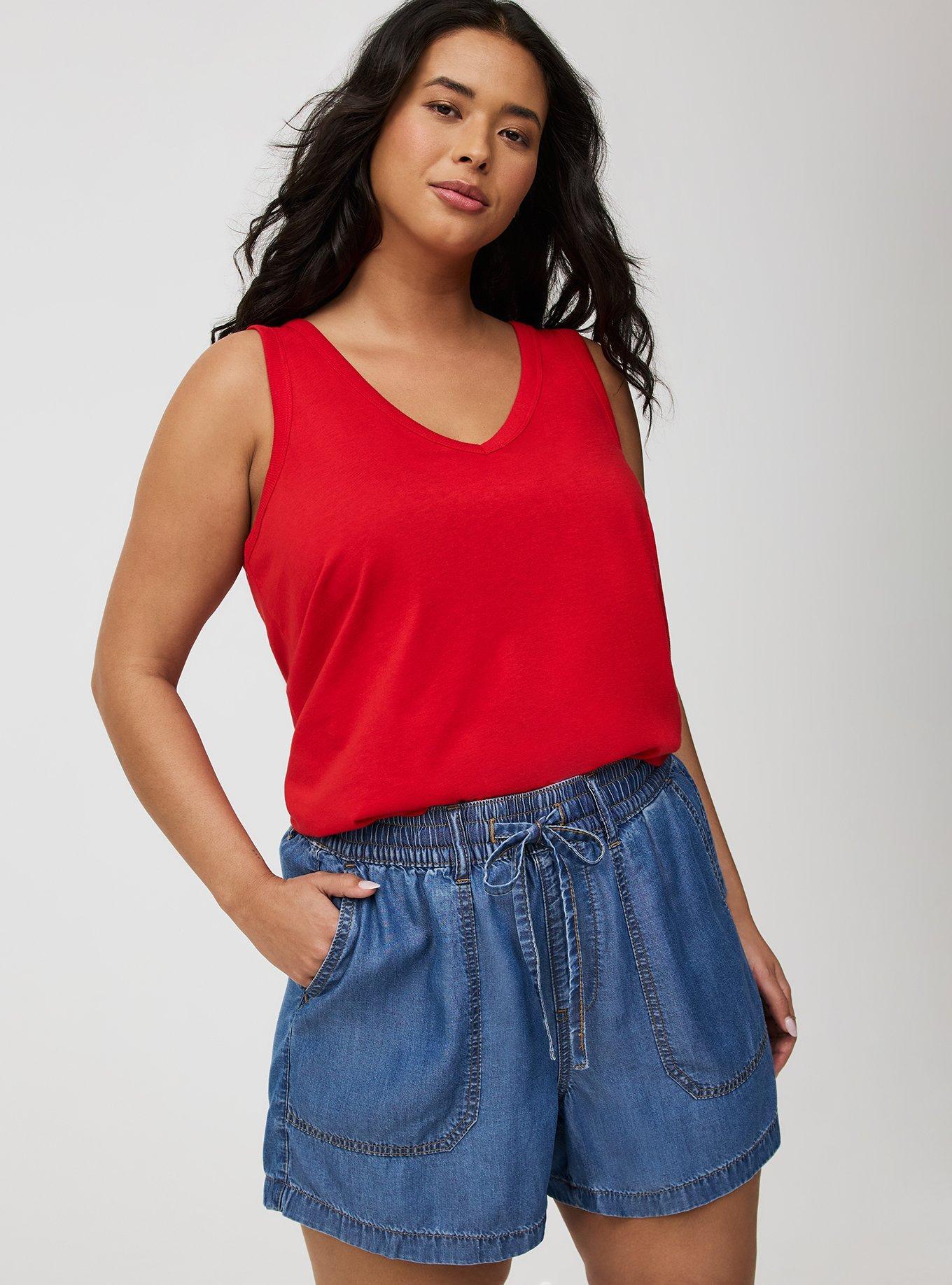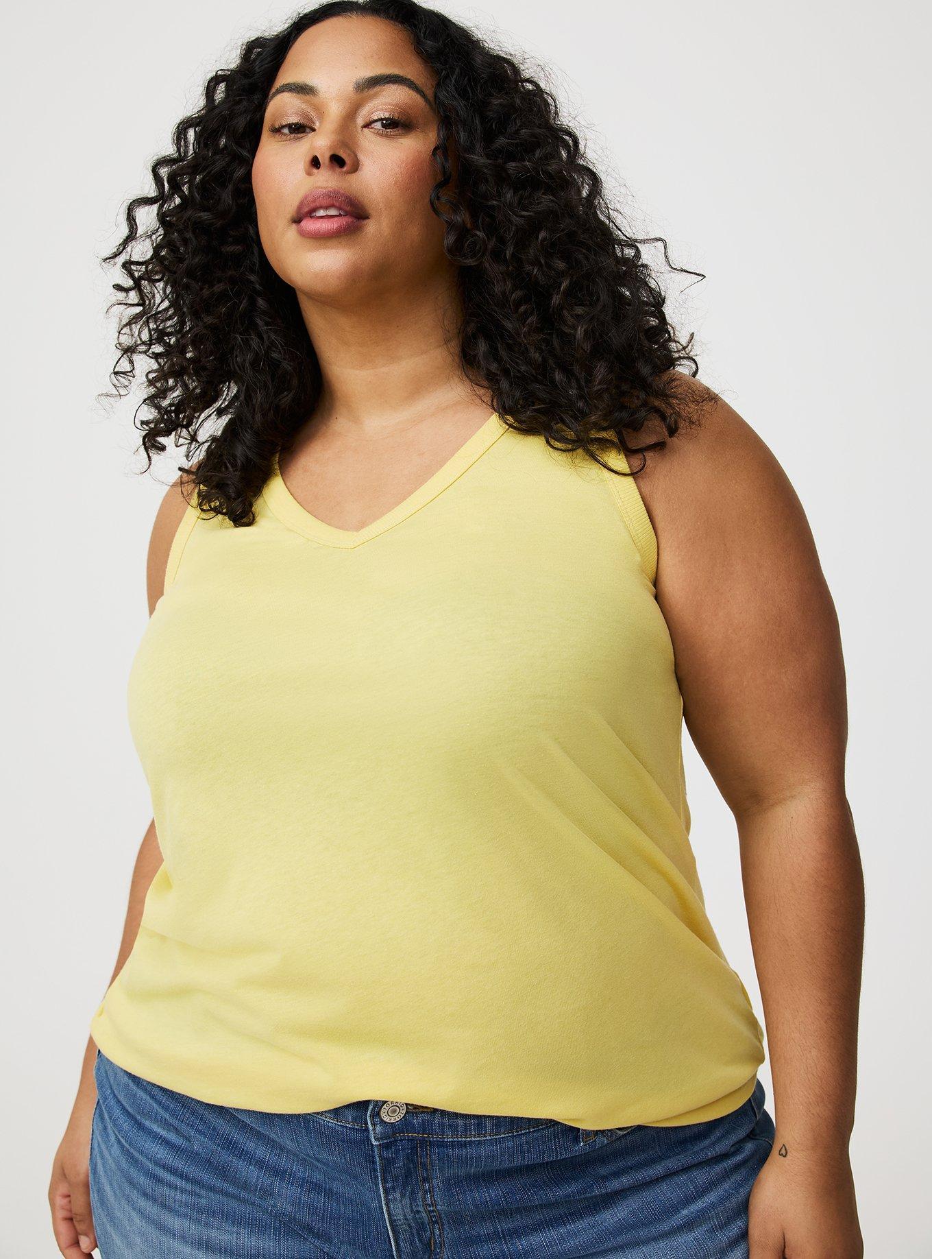 FITClassic fit: Fitted up top, eased through the body.Measures 31'' from shoulder (size 2).MATERIALS + CARESignature Jersey knit fabric: A soft, washed fabric designed for extra comfort.Stretch level: Maximum.65% polyester, 35% cotton.Machine wash cold. Tumble dry low.Imported.DETAILSV-neck. Sleeveless.