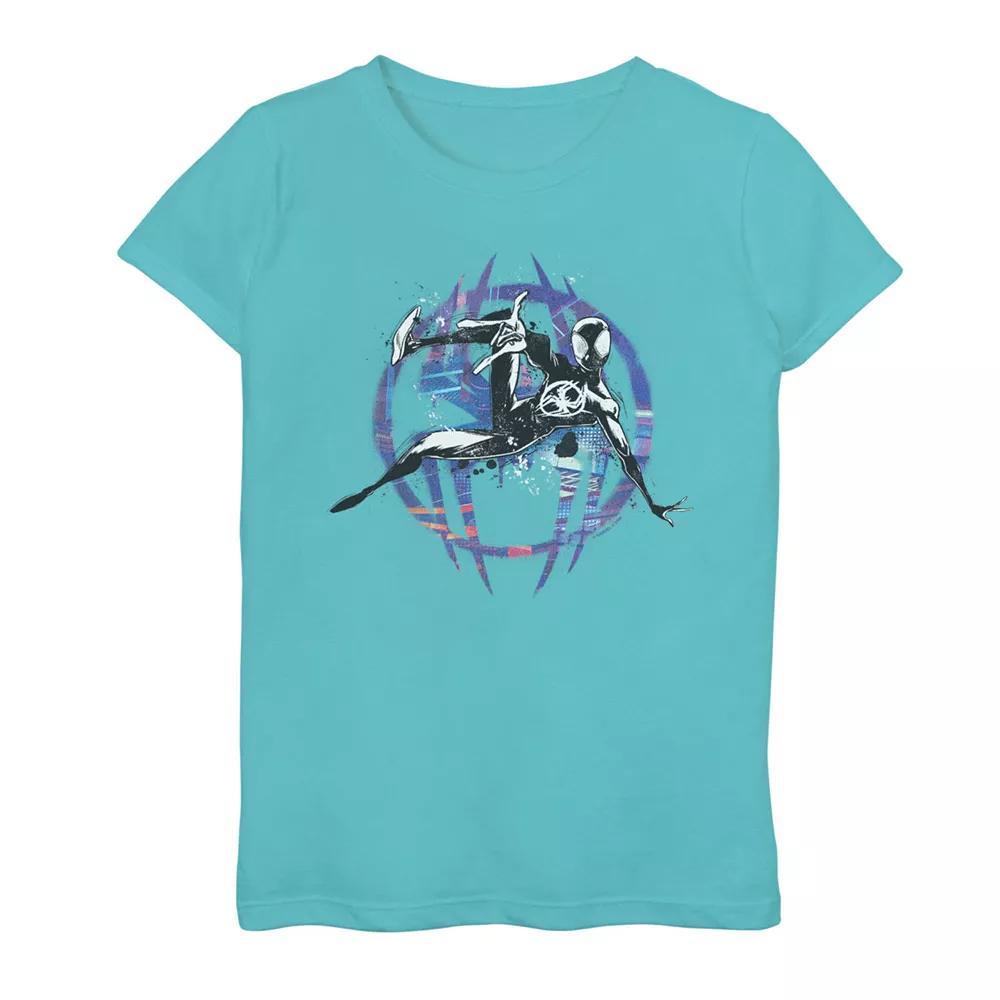 Shell love showing off her unique sense of style with this girls Marvel Spider-Man Across The Spider Verse Hanging Marvel Spider-Man Graphic Tee. FEATURES Crewneck Short sleevesFABRIC & CARE Cotton Machine wash Imported Size: Small. Color: Tahiti Blue. Gender: female. Age Group: kids.