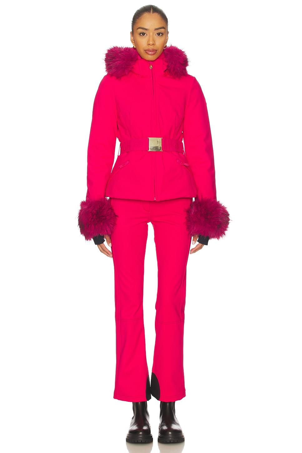 Self: 74% polyamide, 26% elastane>br>Lining 1: 100% polyamideLining 2: 74% polyamide, 26% elastaneLining 3: 100% recycled polyesterFilling 1: 90% duck down, 10% feathersFilling 2 and Hood trim: 100% recycled polyester. Made in China. Machine wash cold. Zip up closure. Elasticized waistband belt with metallic buckle. Side seam pockets with zip closure. Faux fur-trimmed cuffs and hoodie. Revolve Style No. GDBE-WO112. Manufacturer Style No. GB01615254.