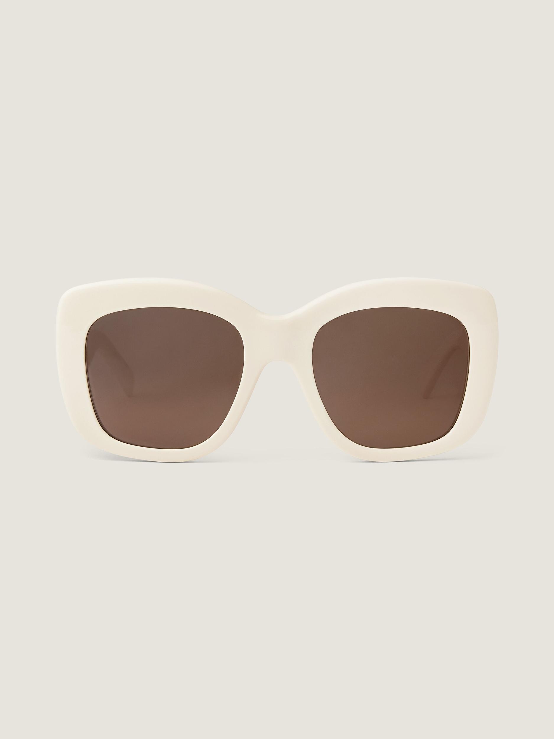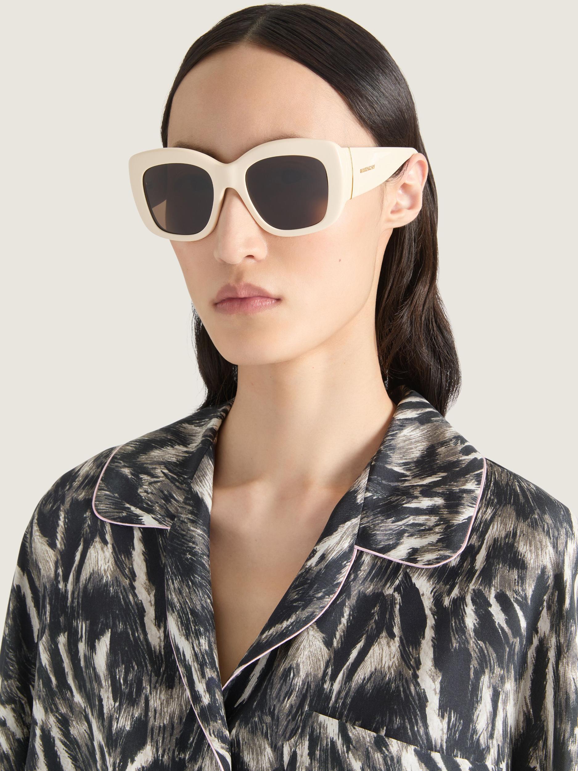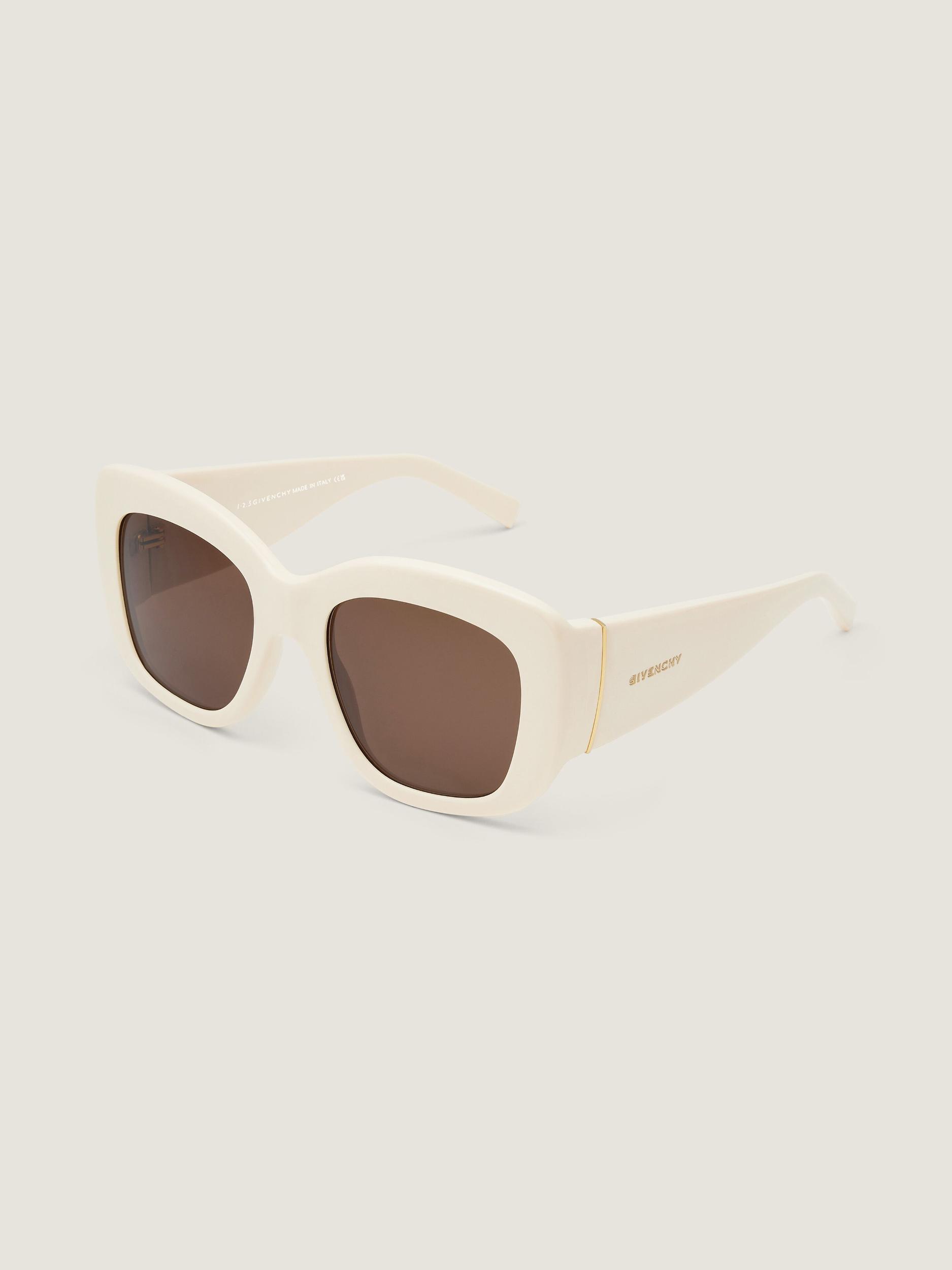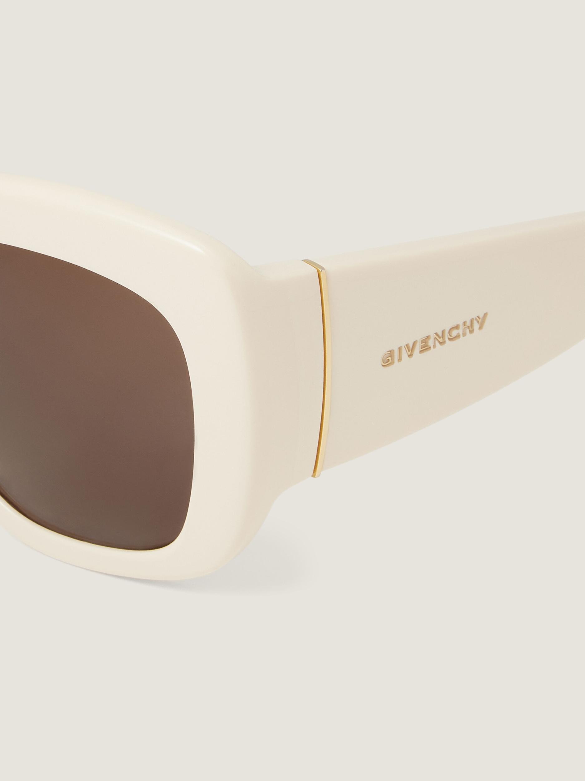 Sunglasses in acetate. GIVENCHY Bold line. Large square shape. Brown lenses. Golden GIVENCHY signature engraved on the temples. Golden-finish metal detail on the hinges. 100% UVA/UVB protection. Weight: 73g. Model comes in a soft case.