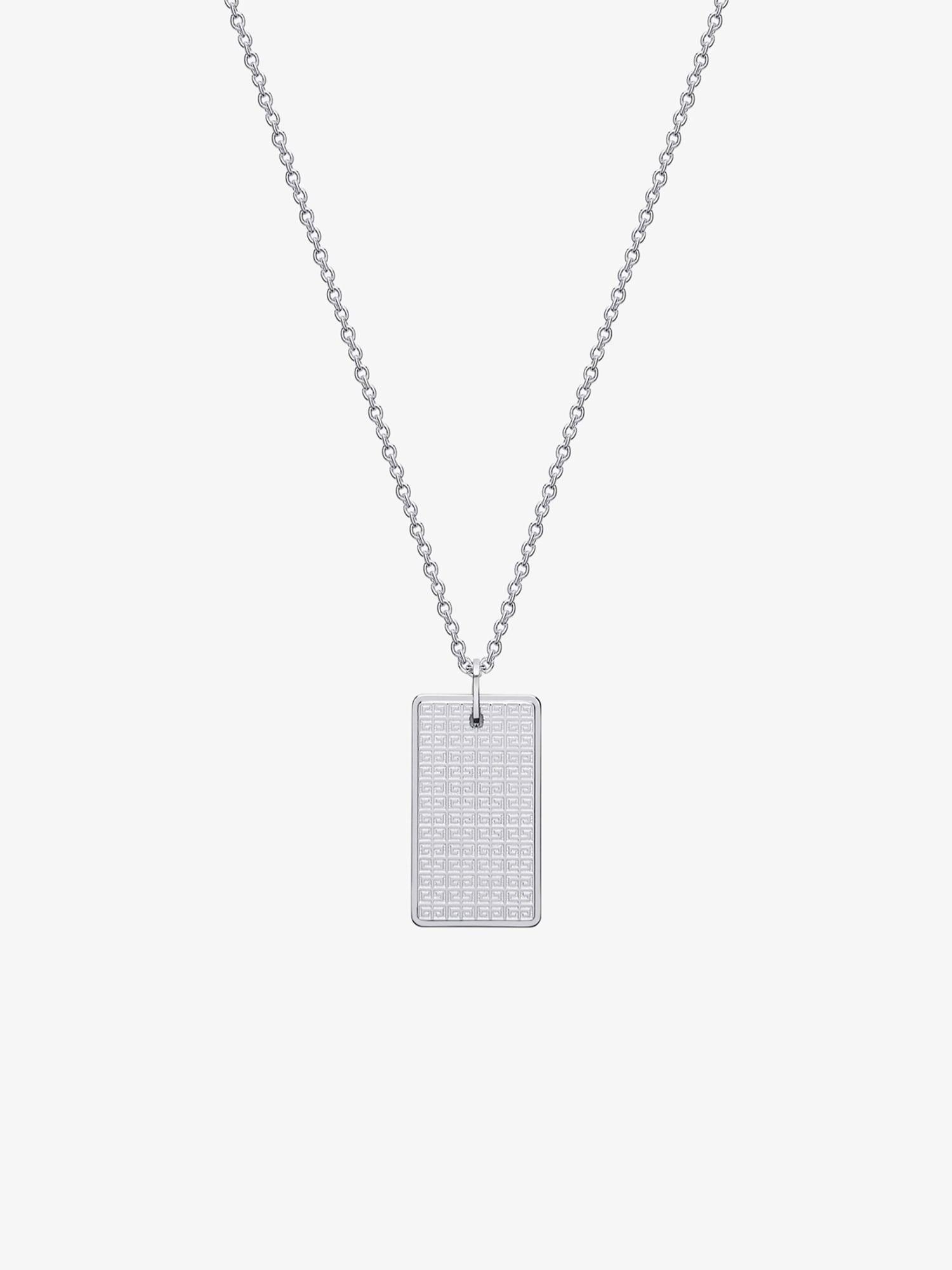 Necklace in silvery-finish metal. GIVENCHY line. Silvery-finish metal pendant with 4G pattern engraved all-over on one side and GIVENCHY signature engraved on the other side. Adjustment chain with 4G plaque. Adjustment chain length: 1.4 in. Matching cuff, ring and cufflinks sold separately.