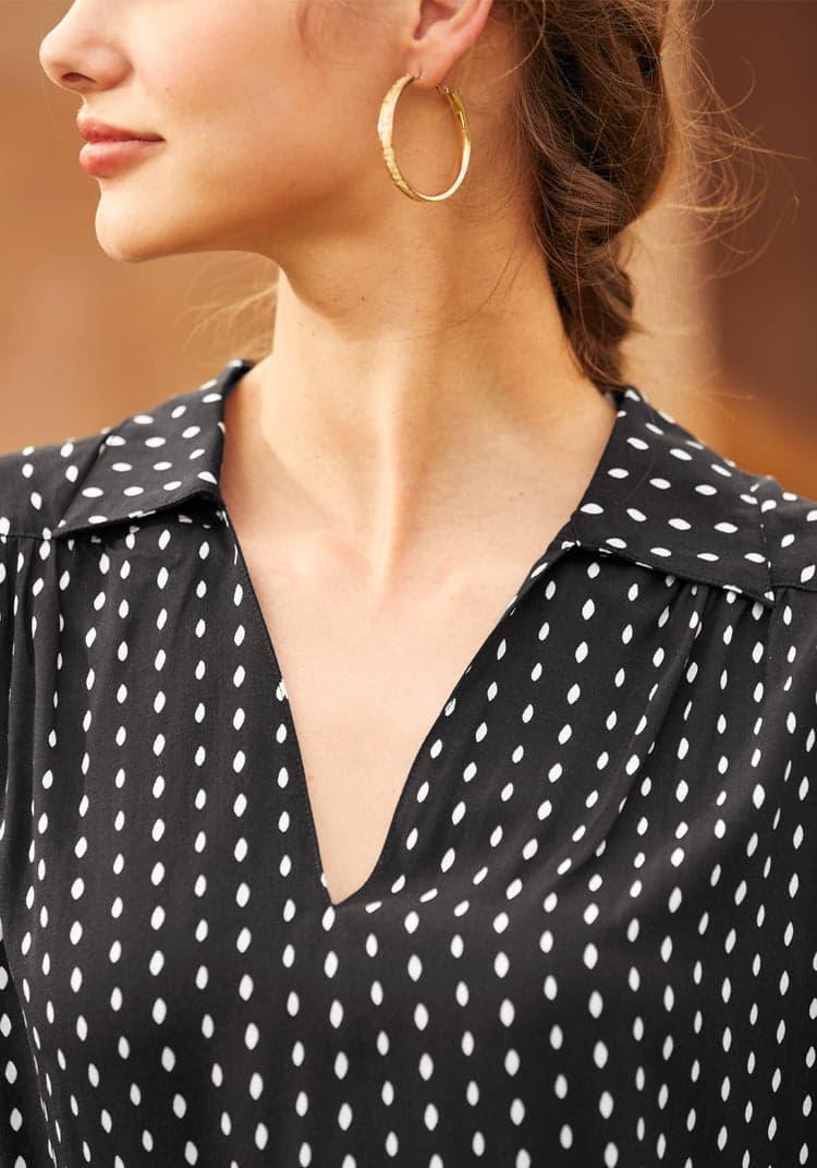 Meet your new closet staple: a sleek black blouse from our ModCloth namesake label that infuses day-to-evening versatility. A sophisticated V-neck meets a sharp collar with extended shoulder sleeves to frame your silhouette in mystery. This blouse's flowing fabric pairs effortlessly with glossy slacks or distressed denim, ready for downtown strolls or uptown soirees.100% ViscoseMachine wash cold, line dryImportedModel is wearing a US size S Model Measurements: Height 5'8"/ Bust 33''/ Waist 24''/ Hips 35''