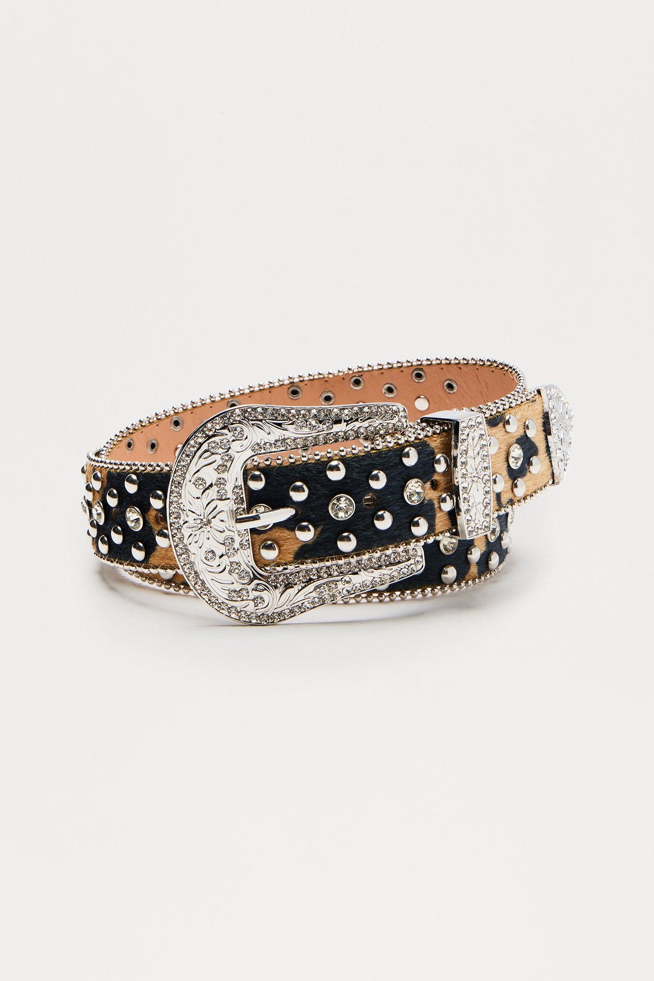 Glamorous Rodeo Cow Print Belt - Camel/combo