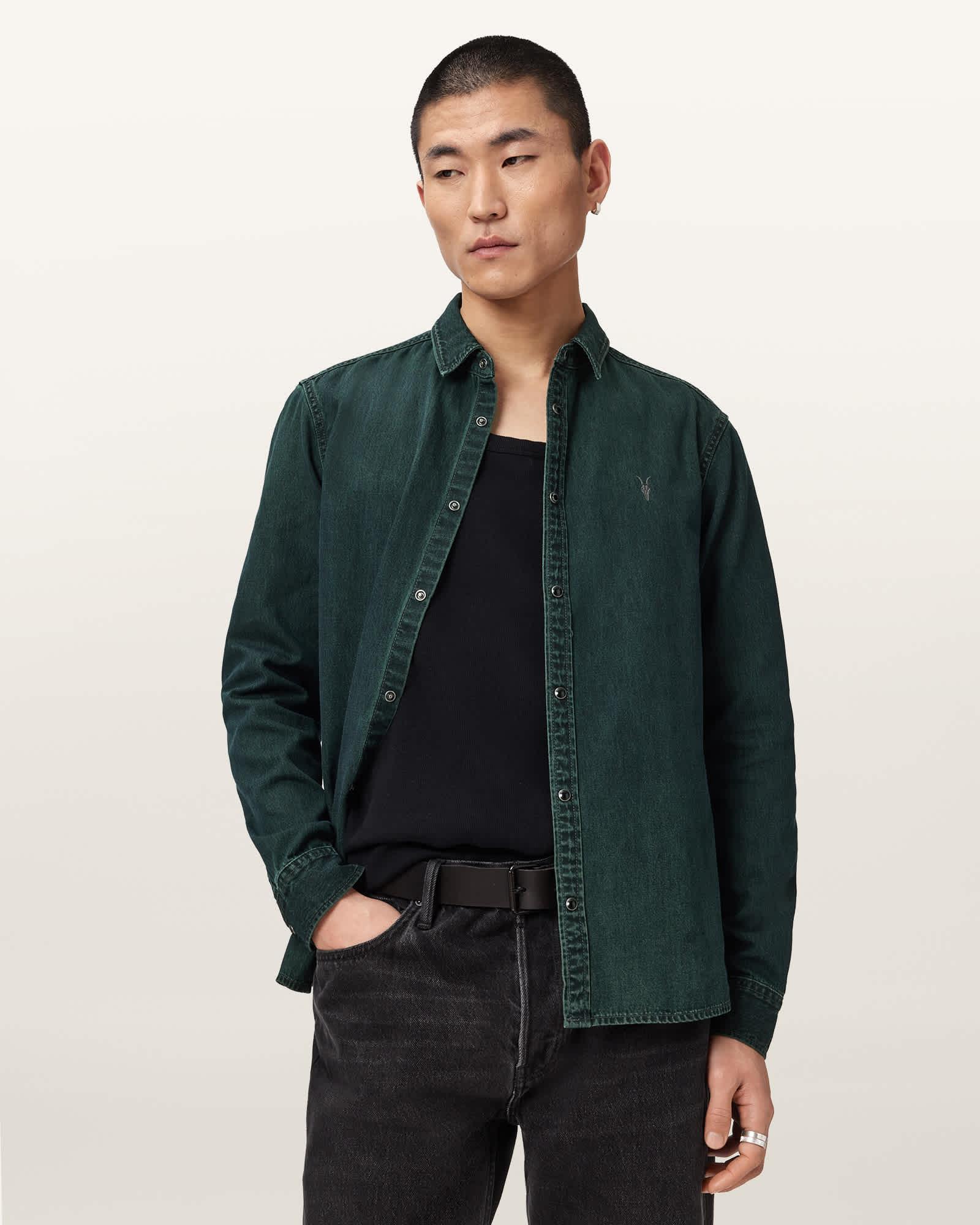 Gleason Long Sleeve Ramskull Shirt PHANTOM BLUE | ALLSAINTS US