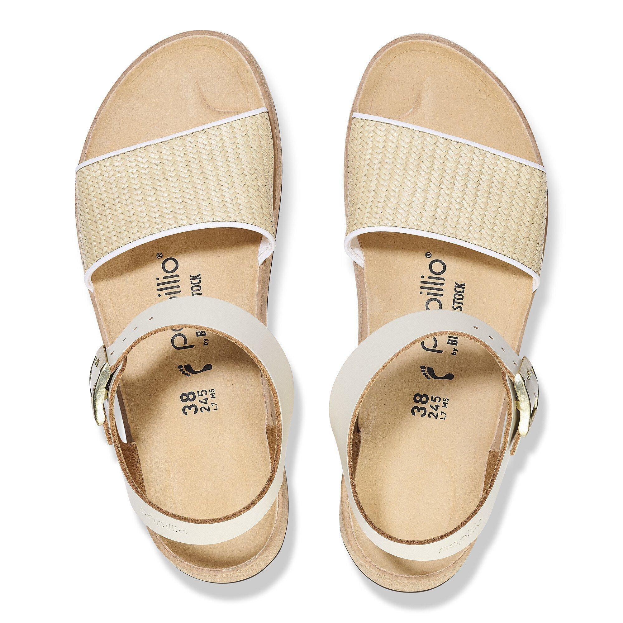 From Papillio® by BIRKENSTOCK®. The Glenda wedge brings on the breeze in summer-ready raffia. As elevated as it looks, with an ankle strap and contoured footbed for the ultimate in support. Put your comfort above the rest.