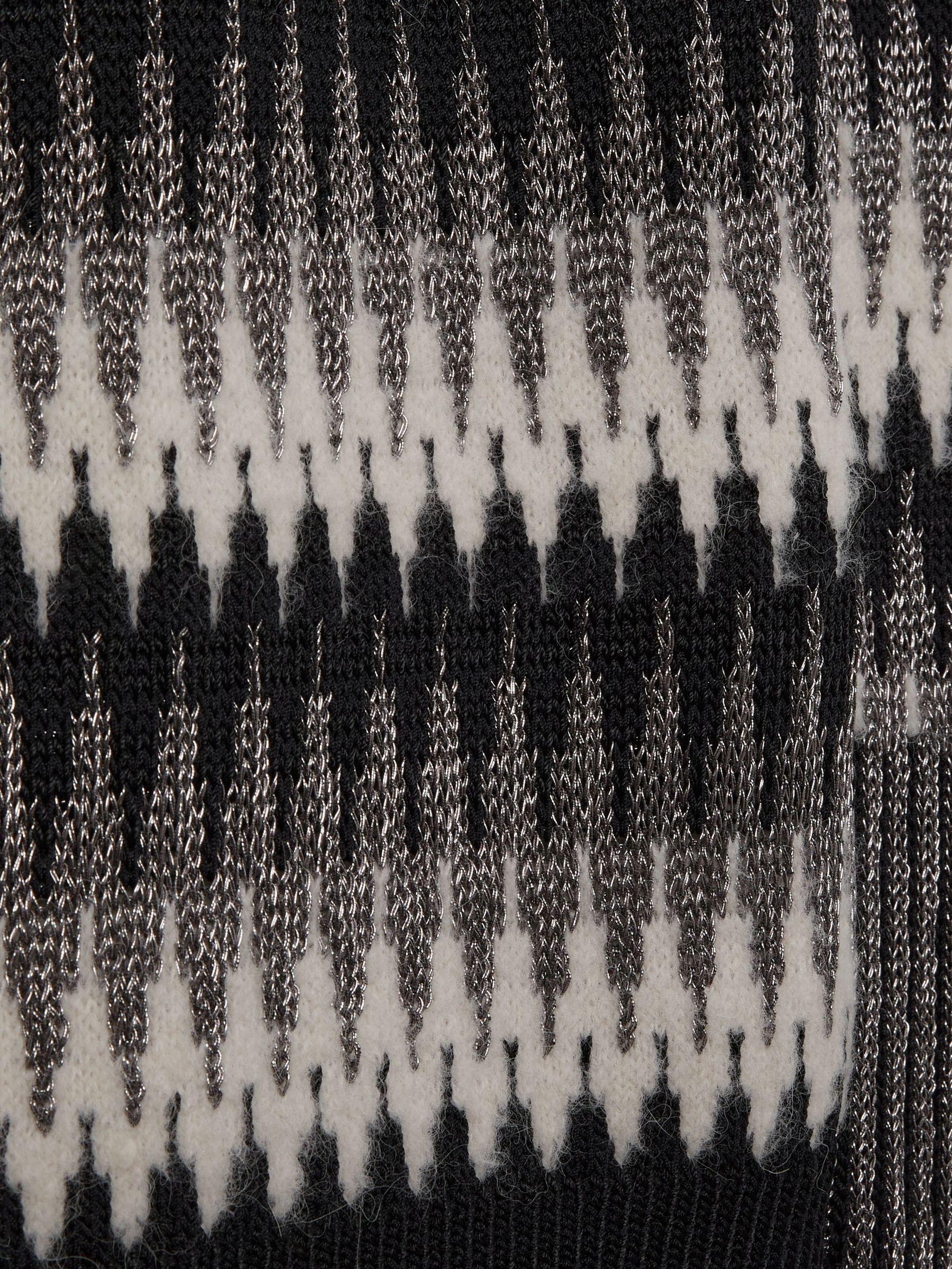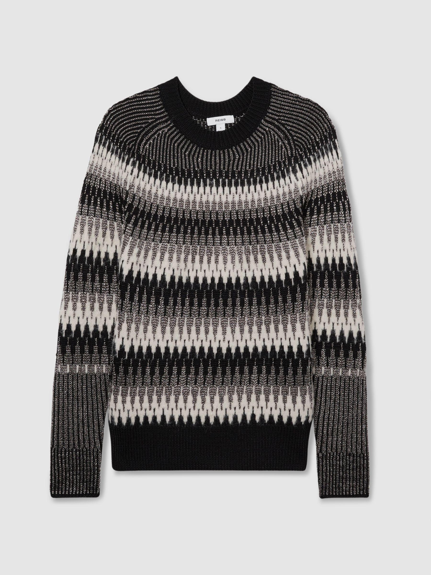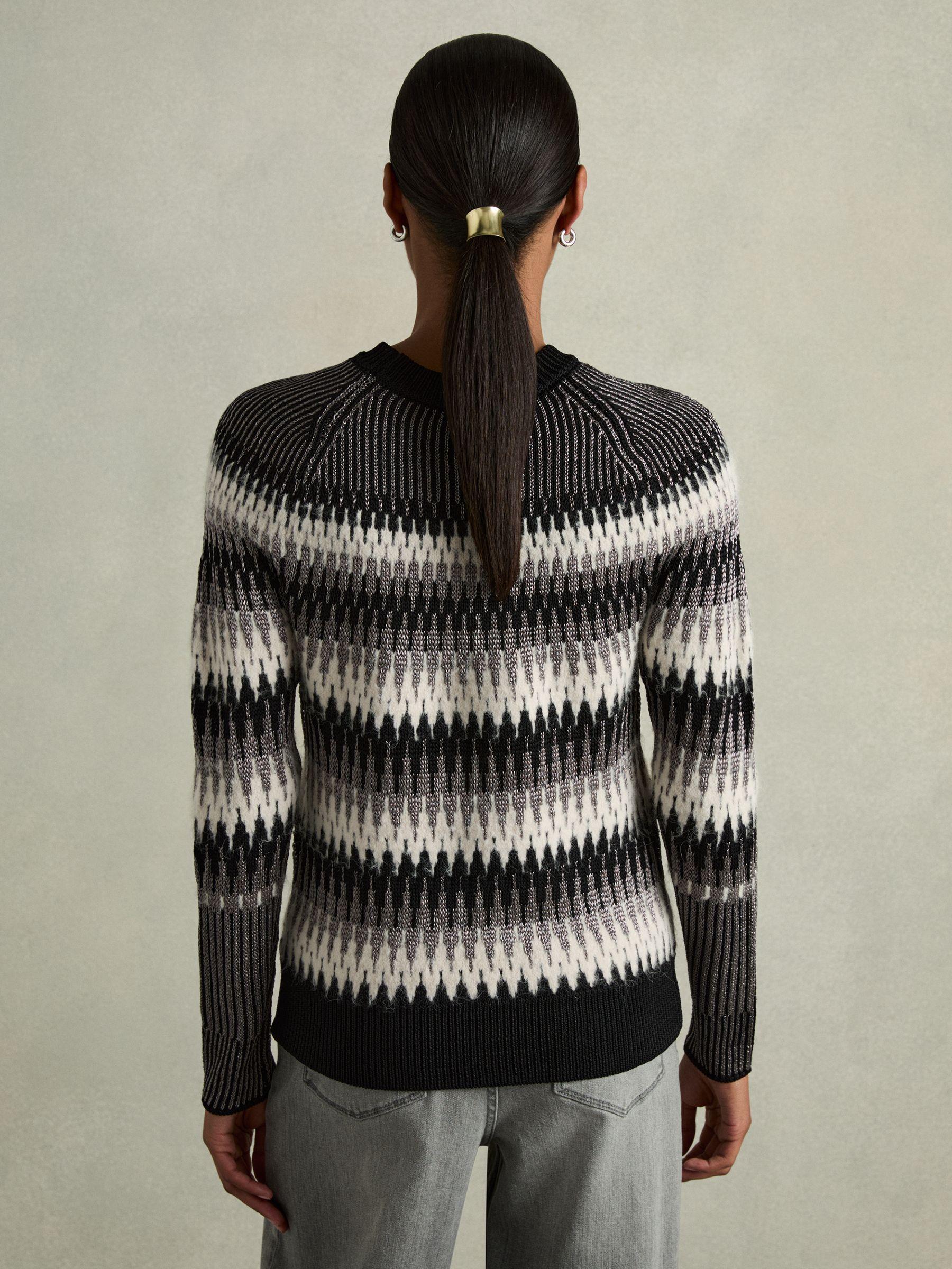 Bring a glittering aspect to everyday looks with the Belle jumper, which is Fair-Isle knitted with light-catching lamé yarns. Crafted from a blend that includes a hint of impeccably soft alpaca, it’s shaped with a round neckline and soft-shouldered raglan sleeves. Ribbed round neck, cuffs and hem Raglan sleeves.