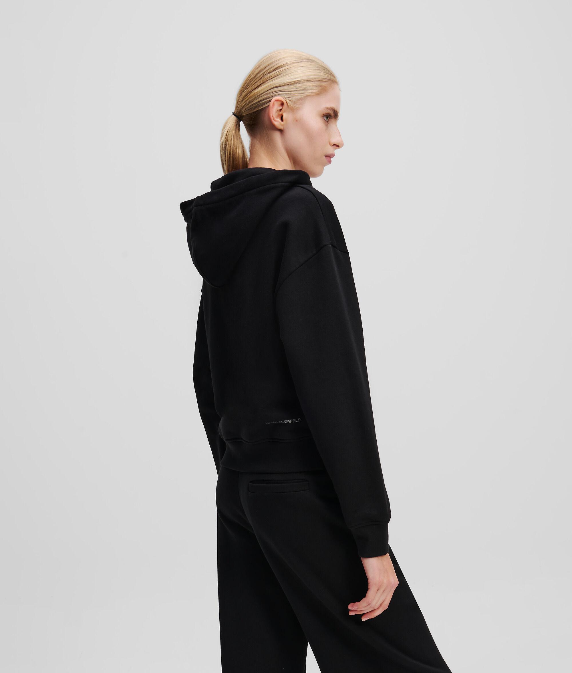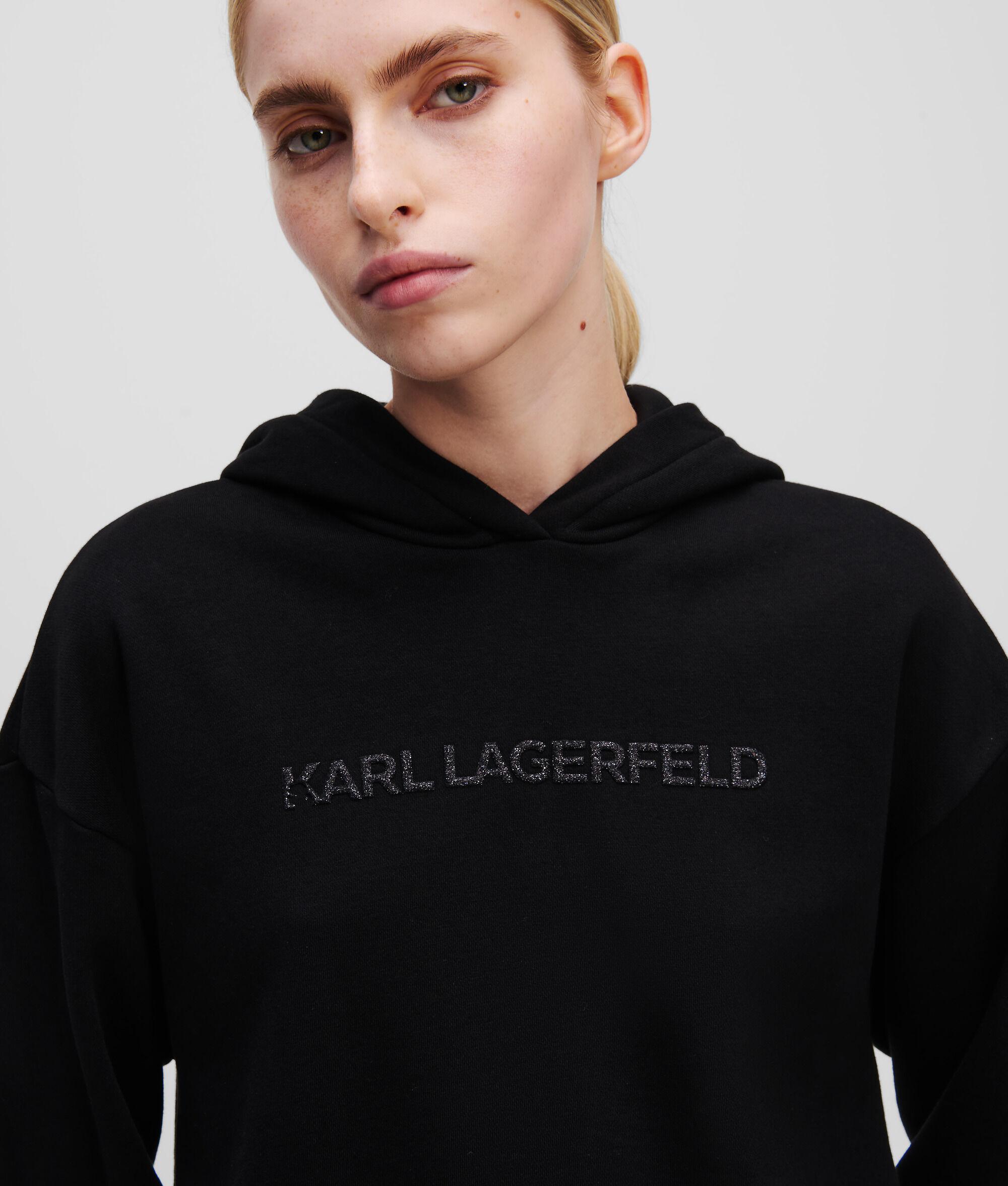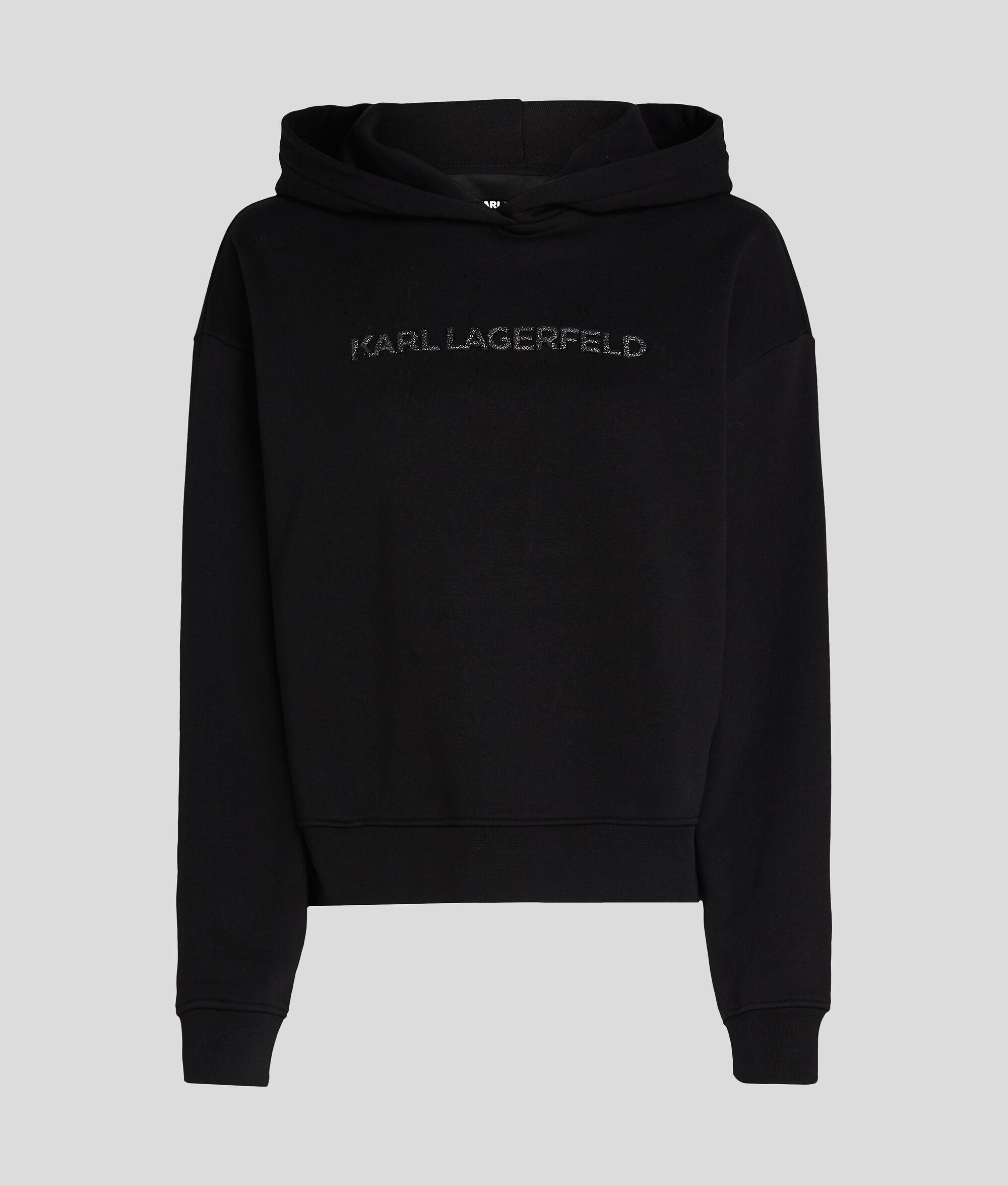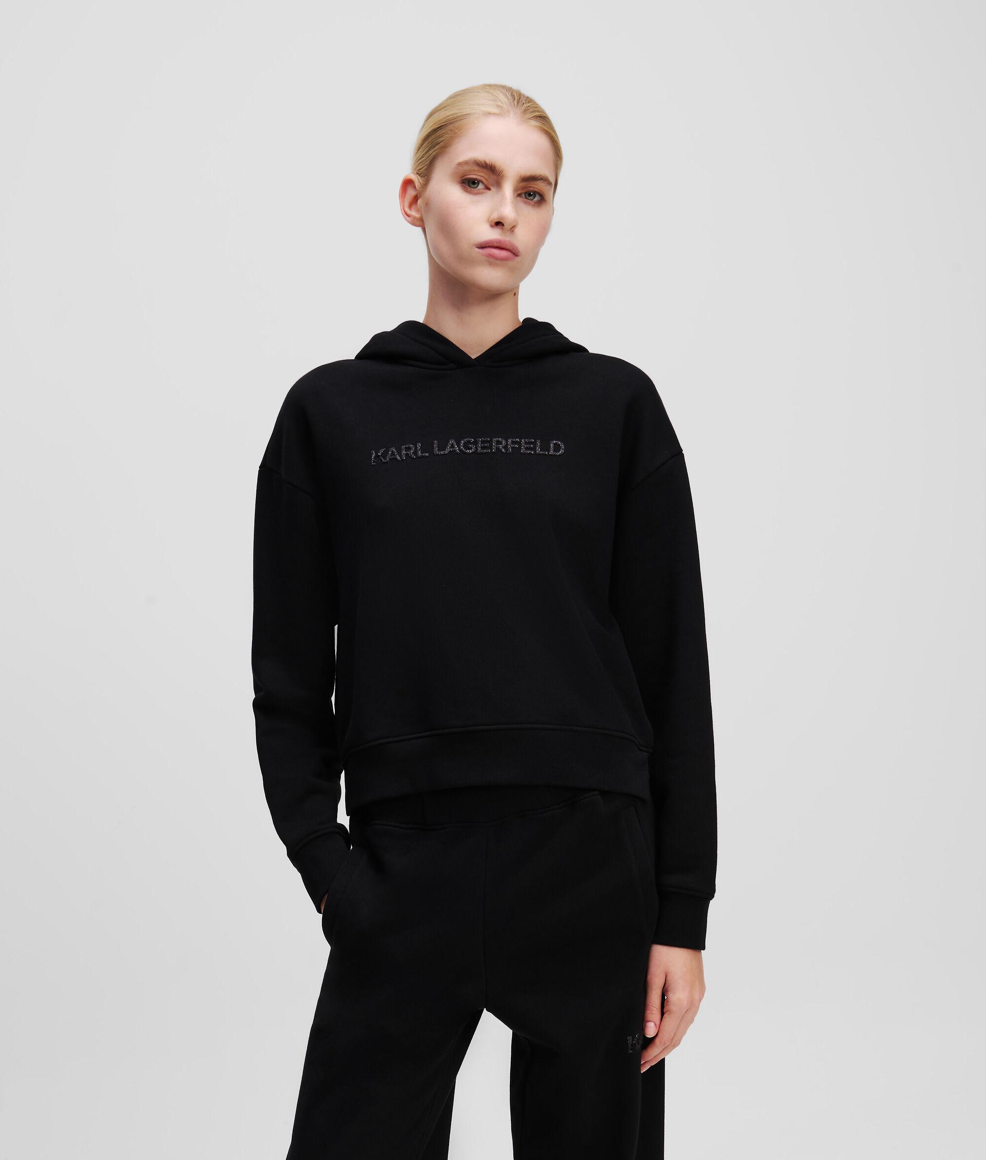 This brushed sweat hoodie features a striking glitter KARL LAGERFELD logo for an eye-catching finish. Light ribbing at the cuffs and hem enhances the comfort of this athleisure favorite, making it a versatile go-to for casual days or nights out.