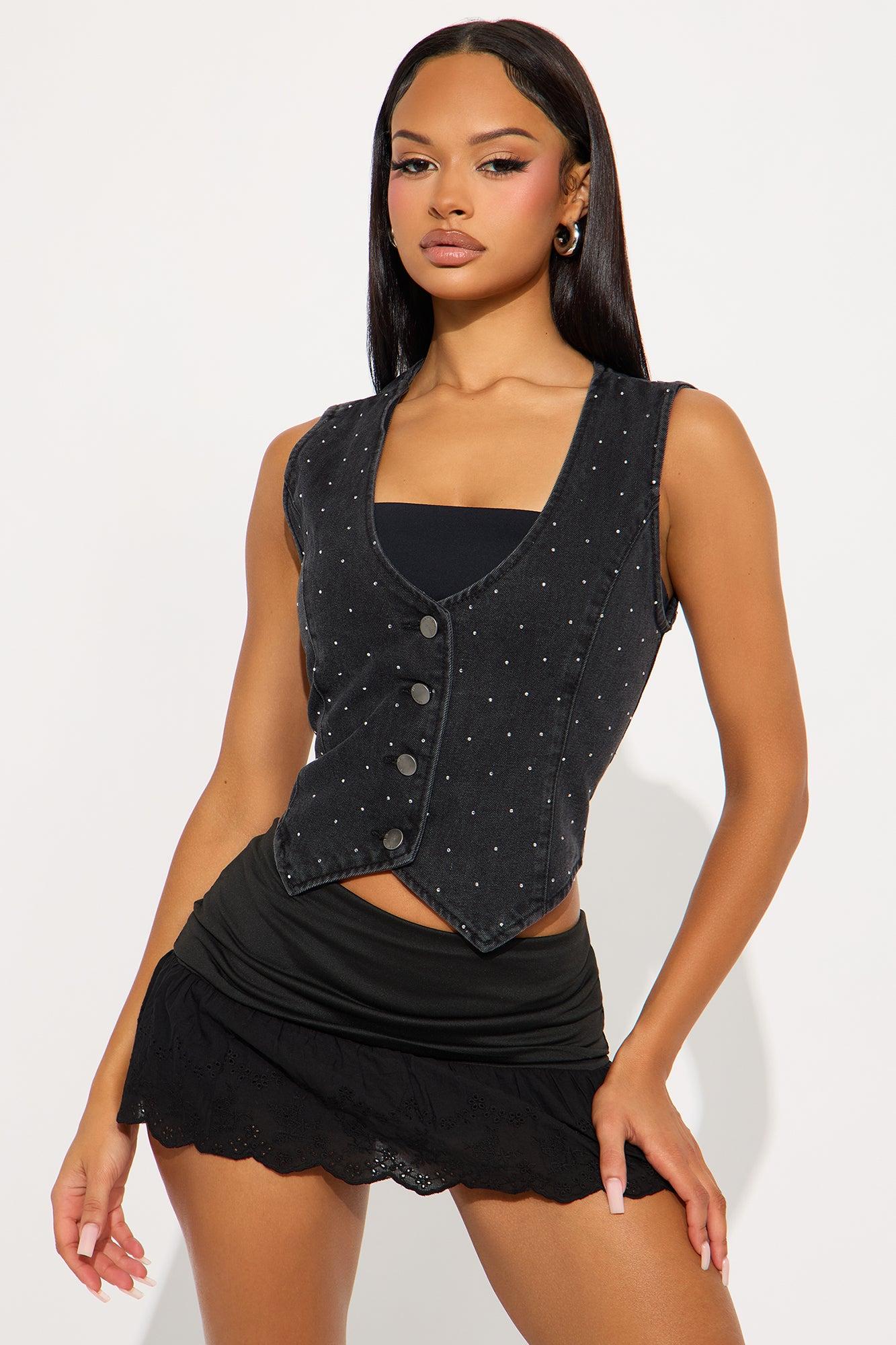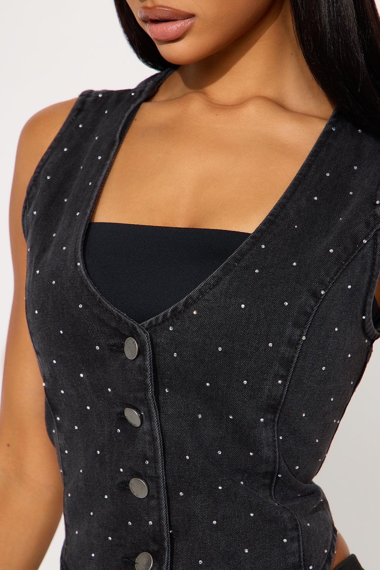 Glitz And Glam Embellished Denim Vest - Black Wash Female
