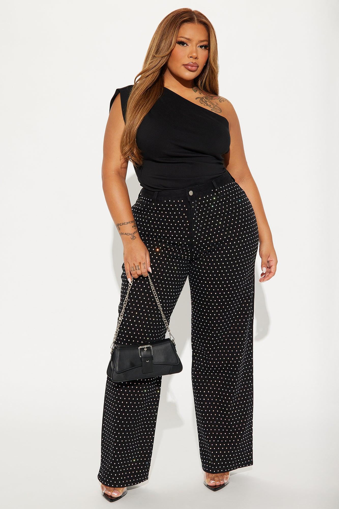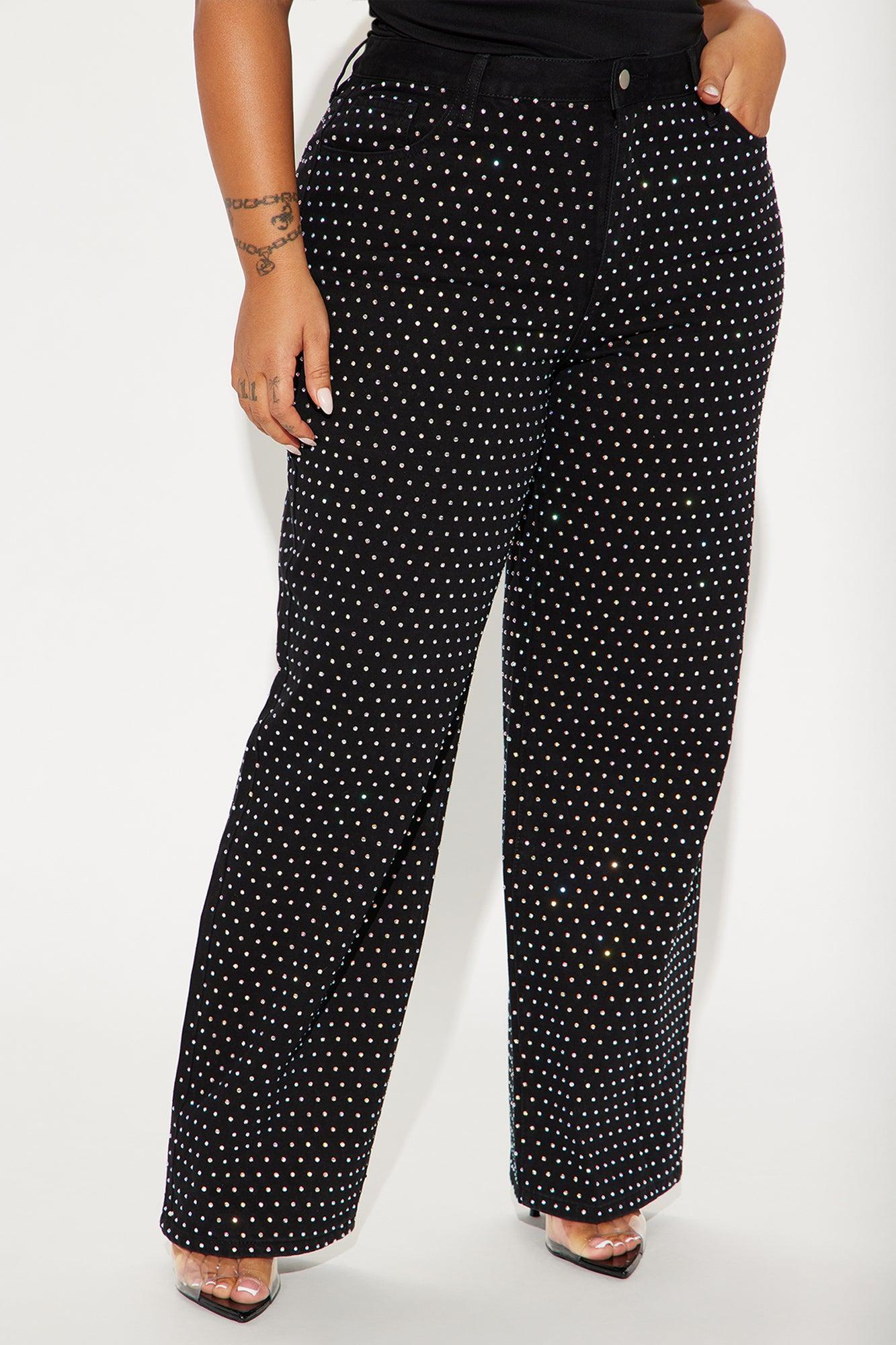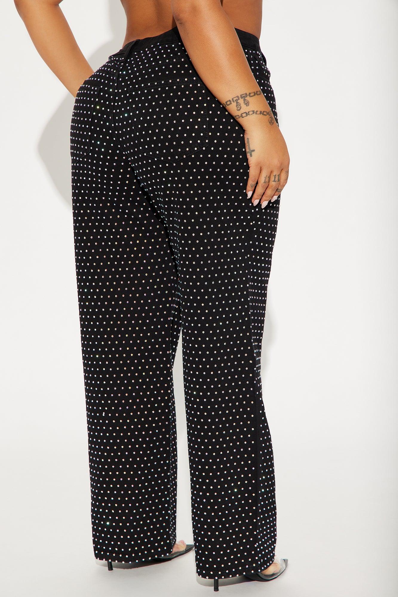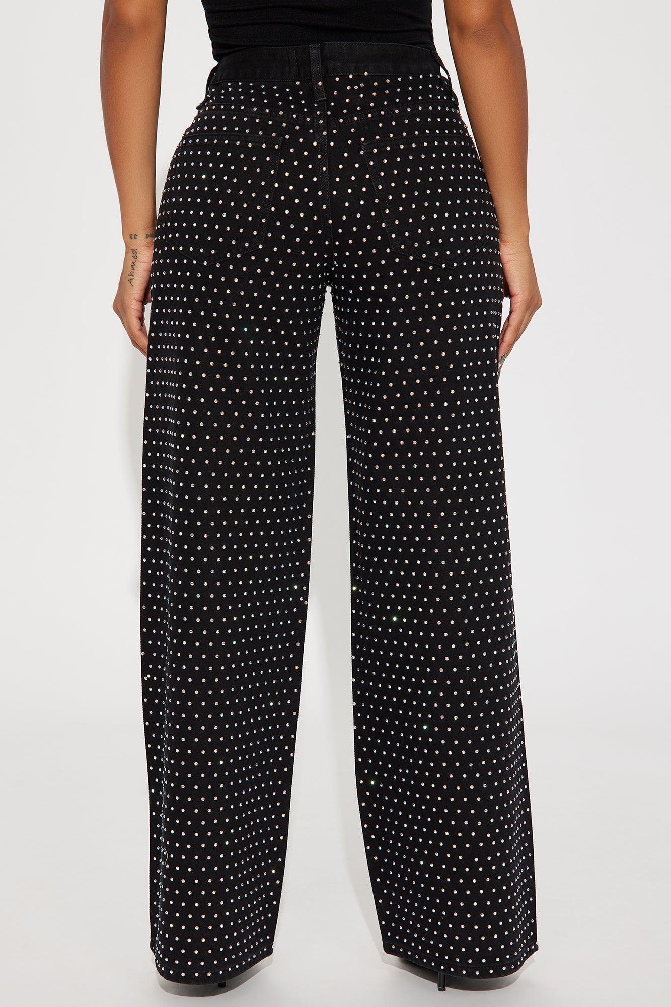 Available In Black. Wide Leg Jean 5 Pocket Embellished 10" Mid Rise 32" Inseam Non Stretch Disclaimer: Due To The Specialized Wash Process, Each Garment Is Unique. 70% Cotton 30% Polyester Imported California Proposition 65WARNING: Cancer and Reproductive Harm - www.P65Warnings.ca.gov.