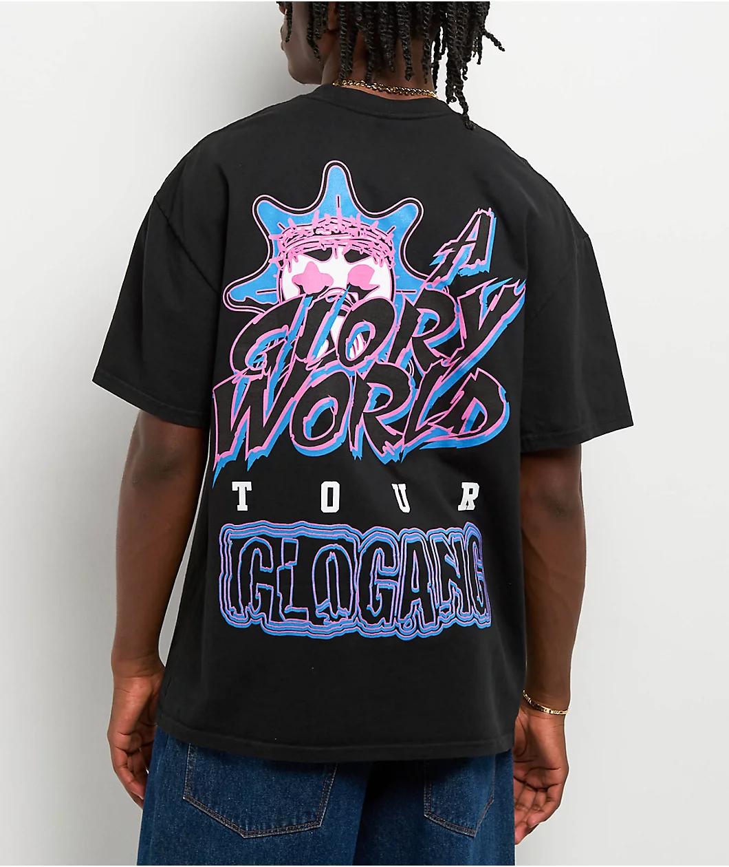 Add streetwear style to any outfit with the A Glory World t-shirt from Chief Keef's brand Glo Gang. The black tee features blue, purple, and white branding on the front and back for eye-catching urban flair. The top is made from 100% cotton for comfo