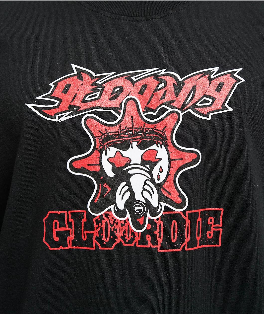 From Chicago drill rapper Chief Keef's clothing label, Glo Gang comes the Glo Or Die t-shirt in a black cotton construction. The front of the graphic tee displays branding in a graffiti font, adorned with the phrase "Glo Or Die" and a brand character