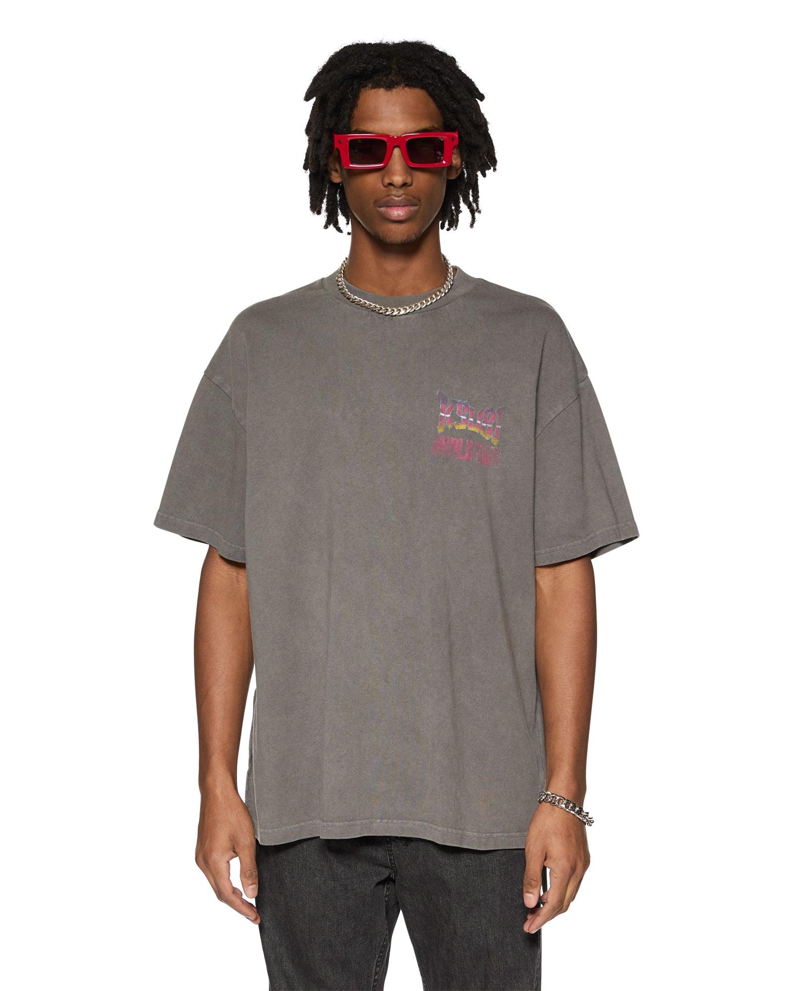 The Global Ekcess Short Sleeve Tee Black Fade features a boxy oversized fit with a dropped shoulder and raw cut back hem. Made from premium heavyweight cotton jersey in overdyed faded black with an aged wash. Featuring a signature rats tail, and seasonal screen-printed artwork on the front, finished with T-box and 4x4 raised rubber branding.