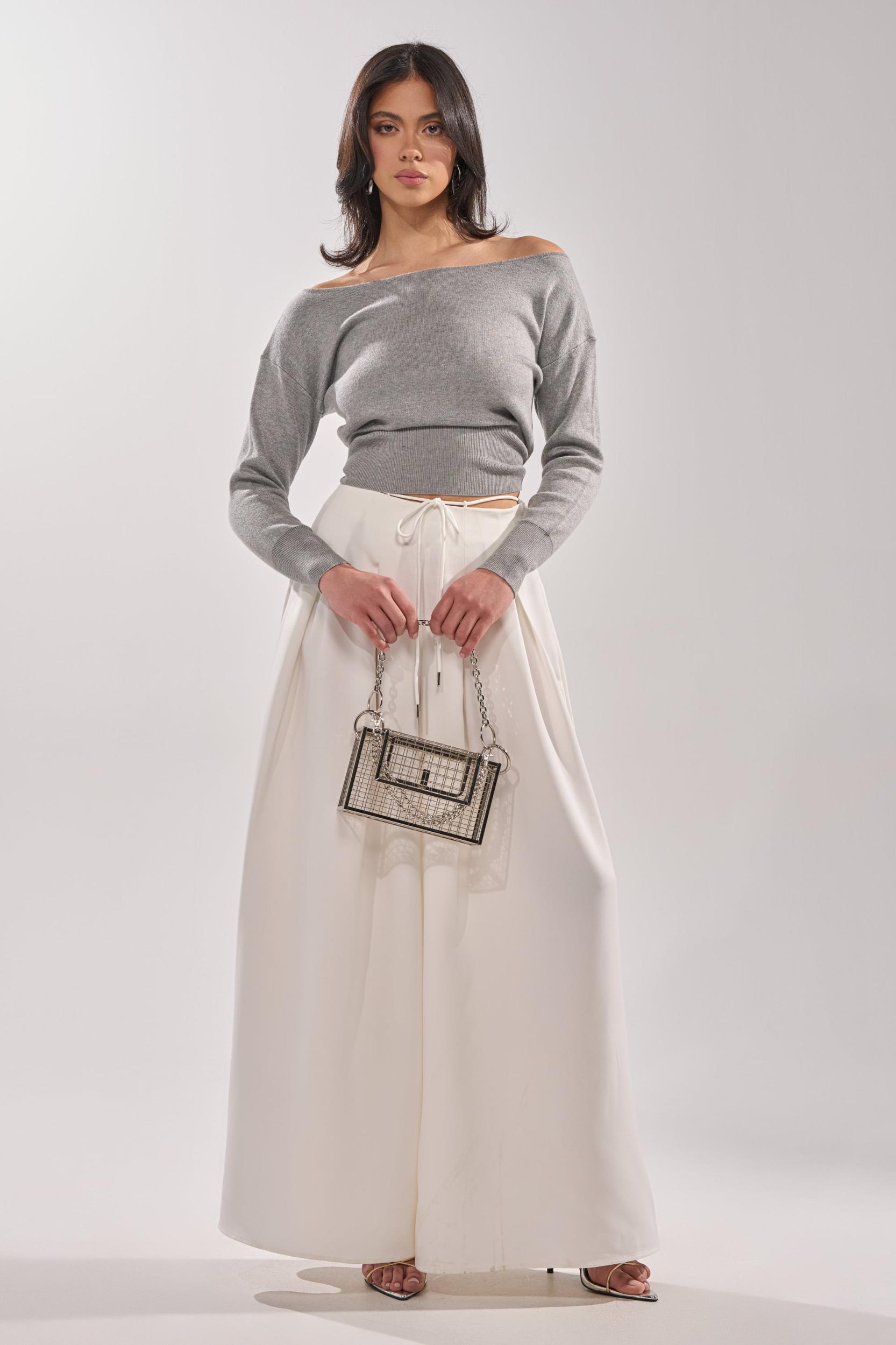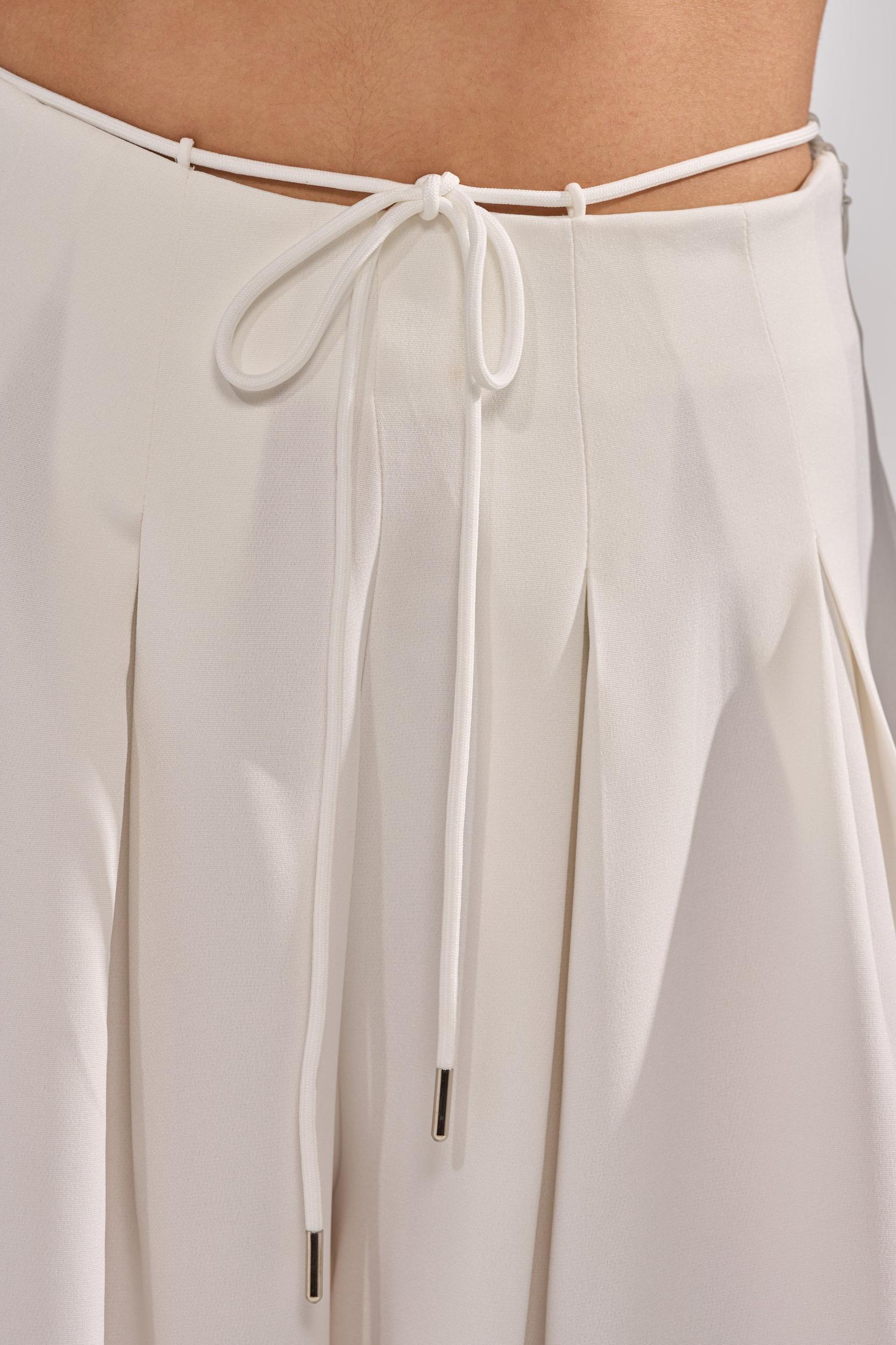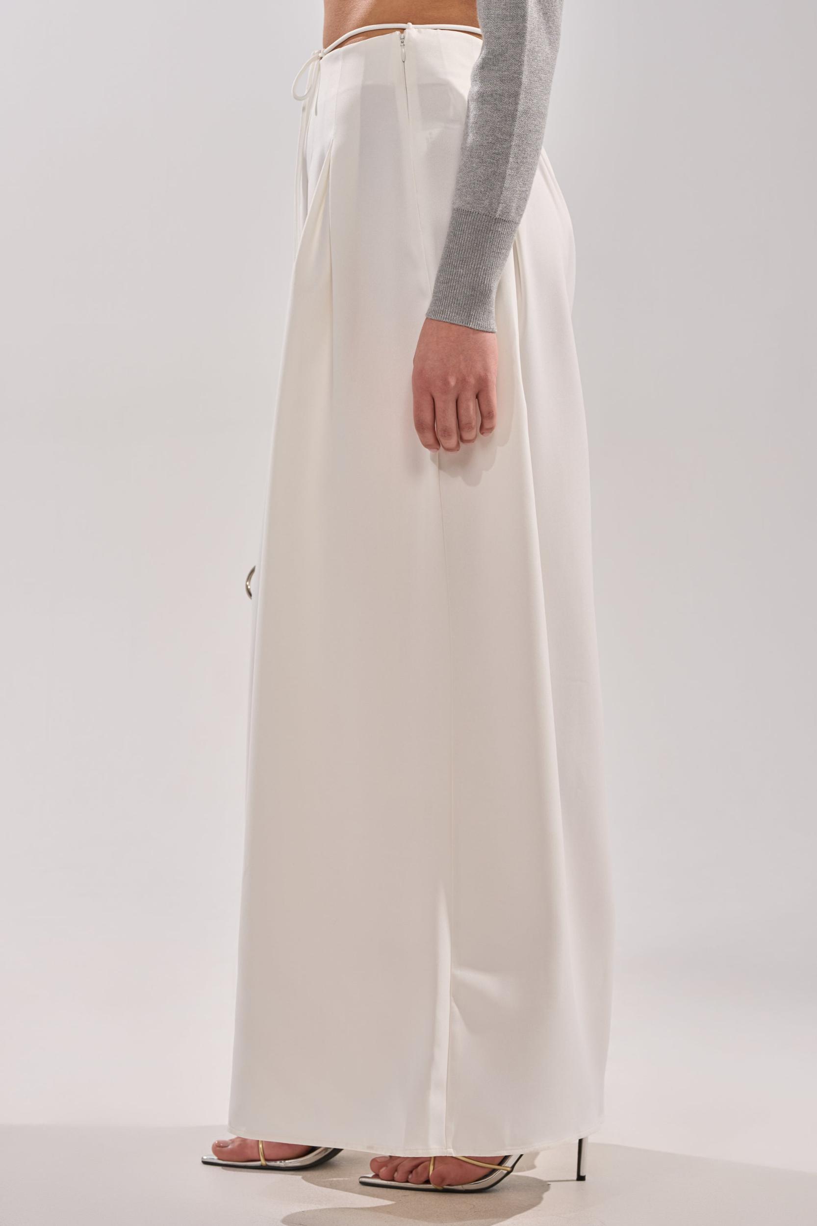 White wide-leg trousers designed for modern elegance and all-day comfort. Featuring a high-waisted silhouette with soft front pleating, this style creates graceful movement and a flattering, elongated leg line. The adjustable drawstring waist with an elasticized back and side zipper enclosure adds a relaxed yet tailored touch, blending ease with sophistication. Perfect for pairing with structured tops, soft blouses, or minimalist knits, they are a versatile wardrobe essential with timeless appeal. - 100% Polyester- Hand Wash Cold- No Stretch- Imported (all measurements are approximate from size small)- 13” Rise- 33” Inseam- Model is 5’9.5” and wearing size smallProduct ID: 1076786 (all measurements are approximate from size 1X)- 16” Rise- 33” InseamProduct ID: 1076790