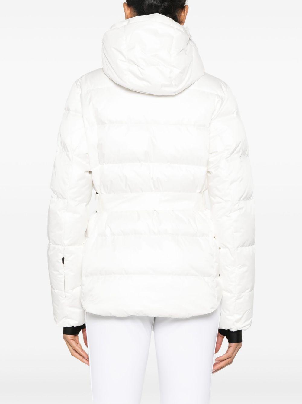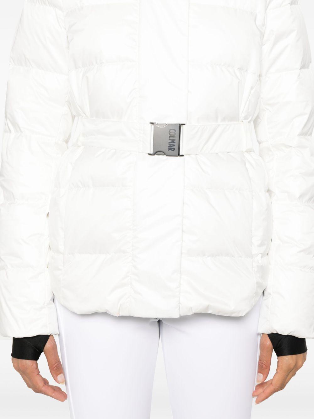 Colmar glossy belted ski coat | White | white | duck down | padded design | glossy finish | embroidered logo | detachable waist belt | drawstring hood | concealed front zip fastening | long sleeves with internal cuffs with thumb holes | two side zip-fastening pockets | straight hem | full lining | Polyester/Duck Down/Duck Feathers/Elastane/Polyamide | Ski Jackets | Skiwear | Activewear | Women