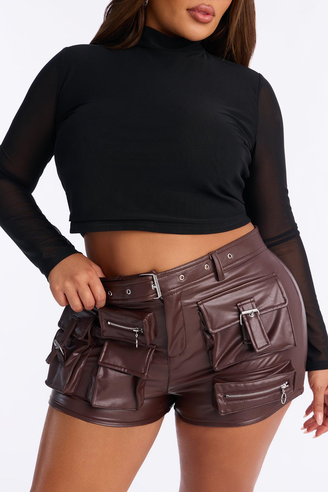 Go All Out Faux Leather Cargo Short - Chocolate Female