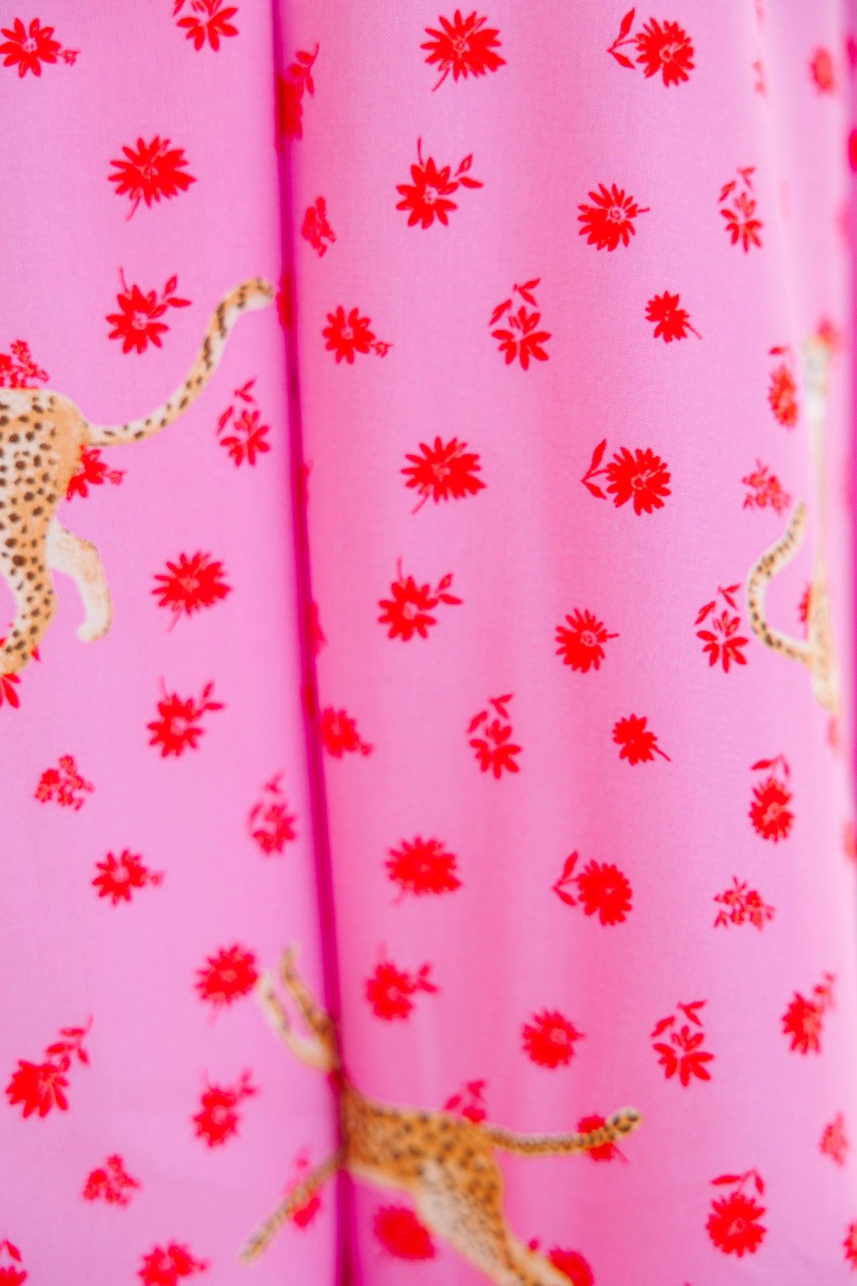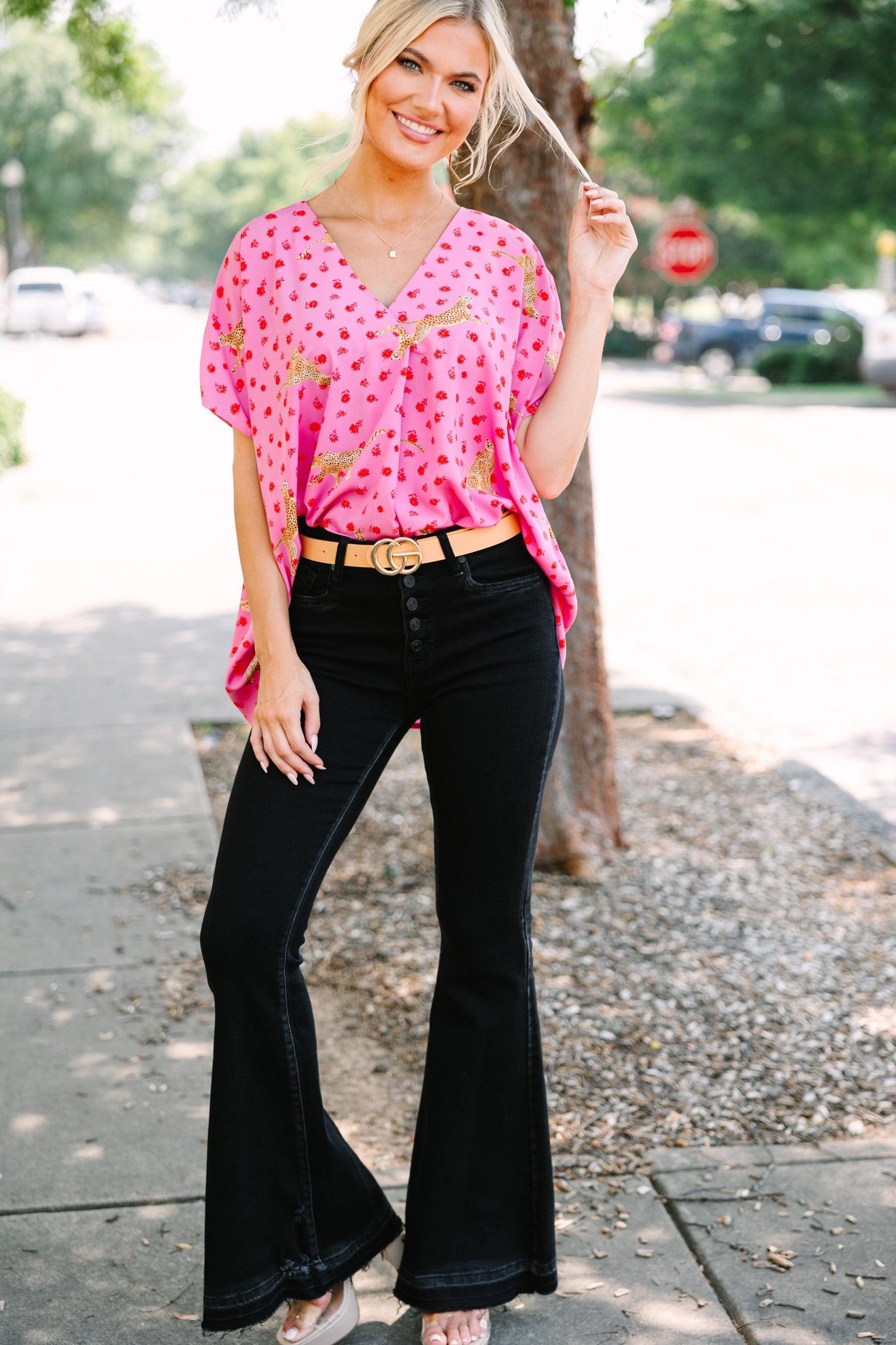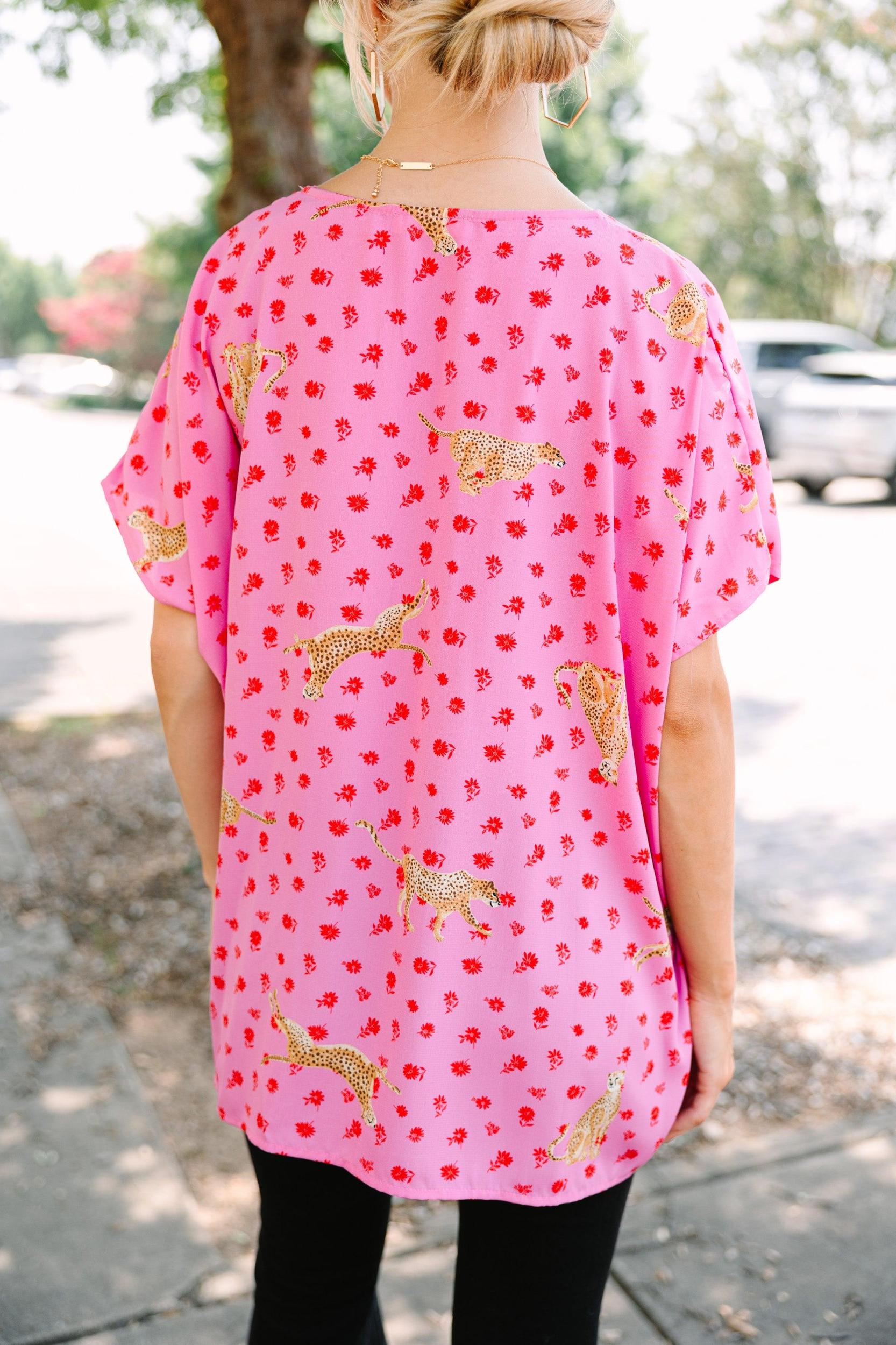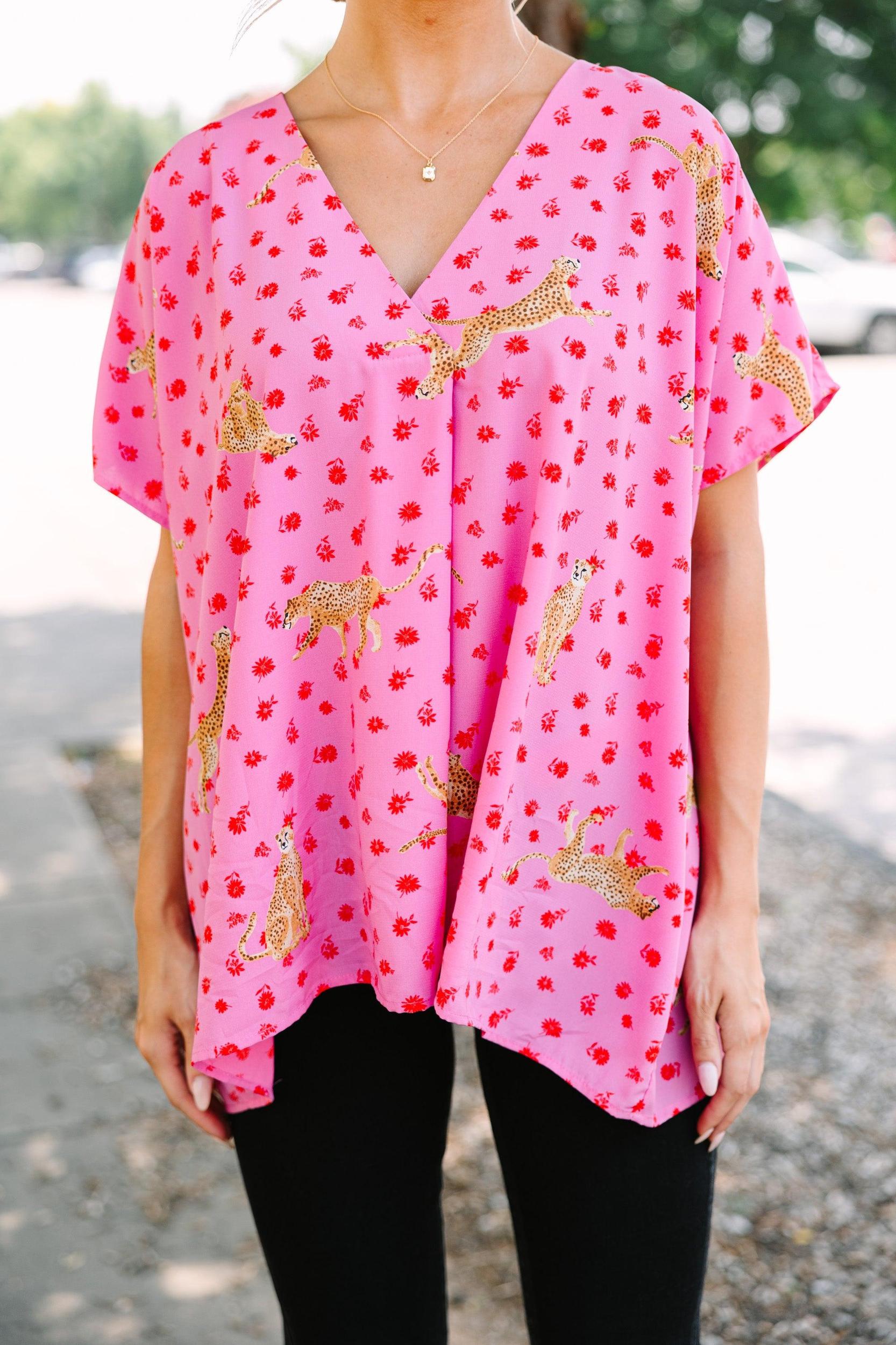 This top is perfect for any casual day! The fit is perfectly flowy and we love that fun print! The combo of flowers and cute little cheetah are so unique and fun! This top is going to be so easy to throw on with jean shorts for any summer day! This top features short sleeves, a dual leopard and floral print, and a soft v-neck. Material has no amount of stretch.Baileigh is wearing the small.