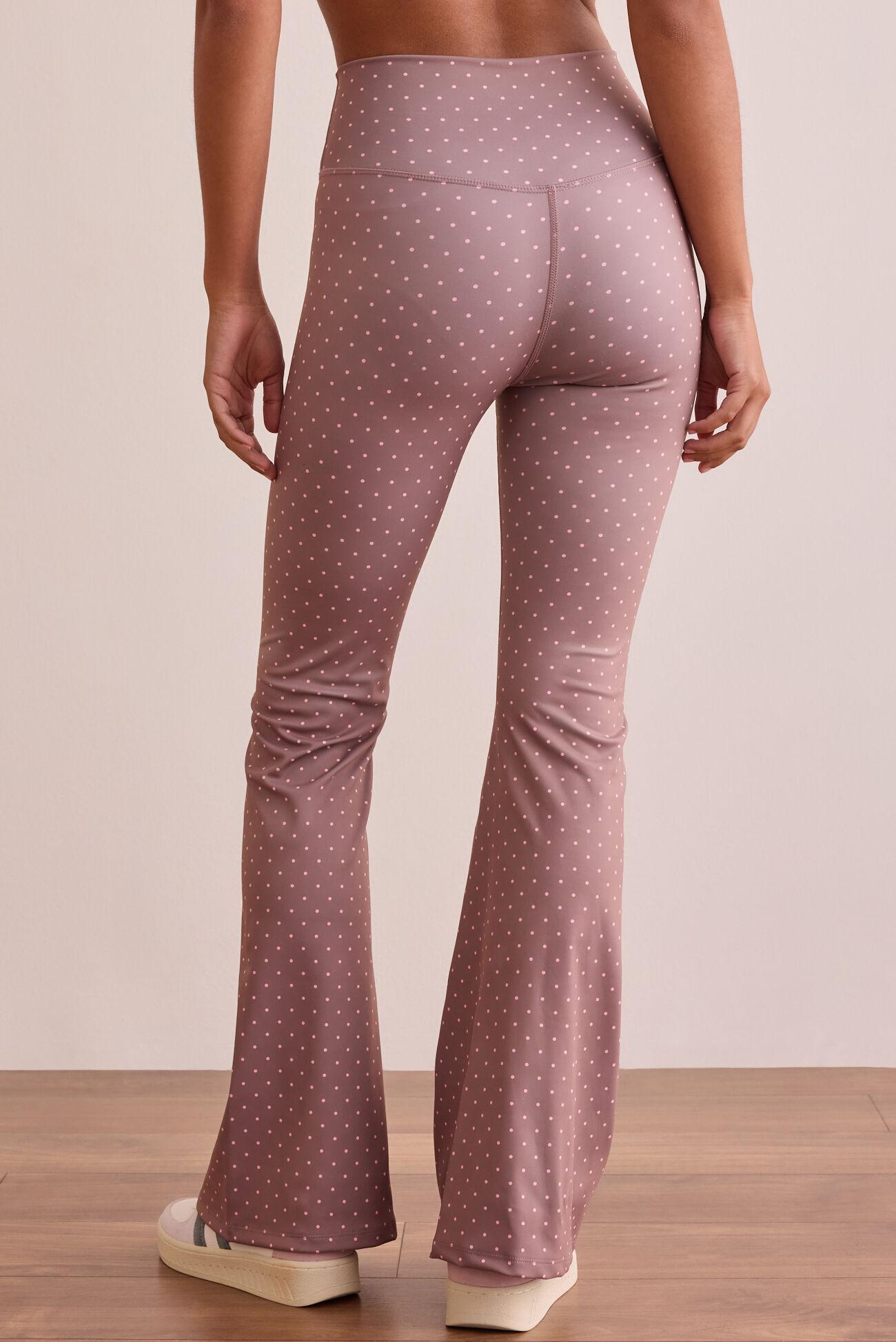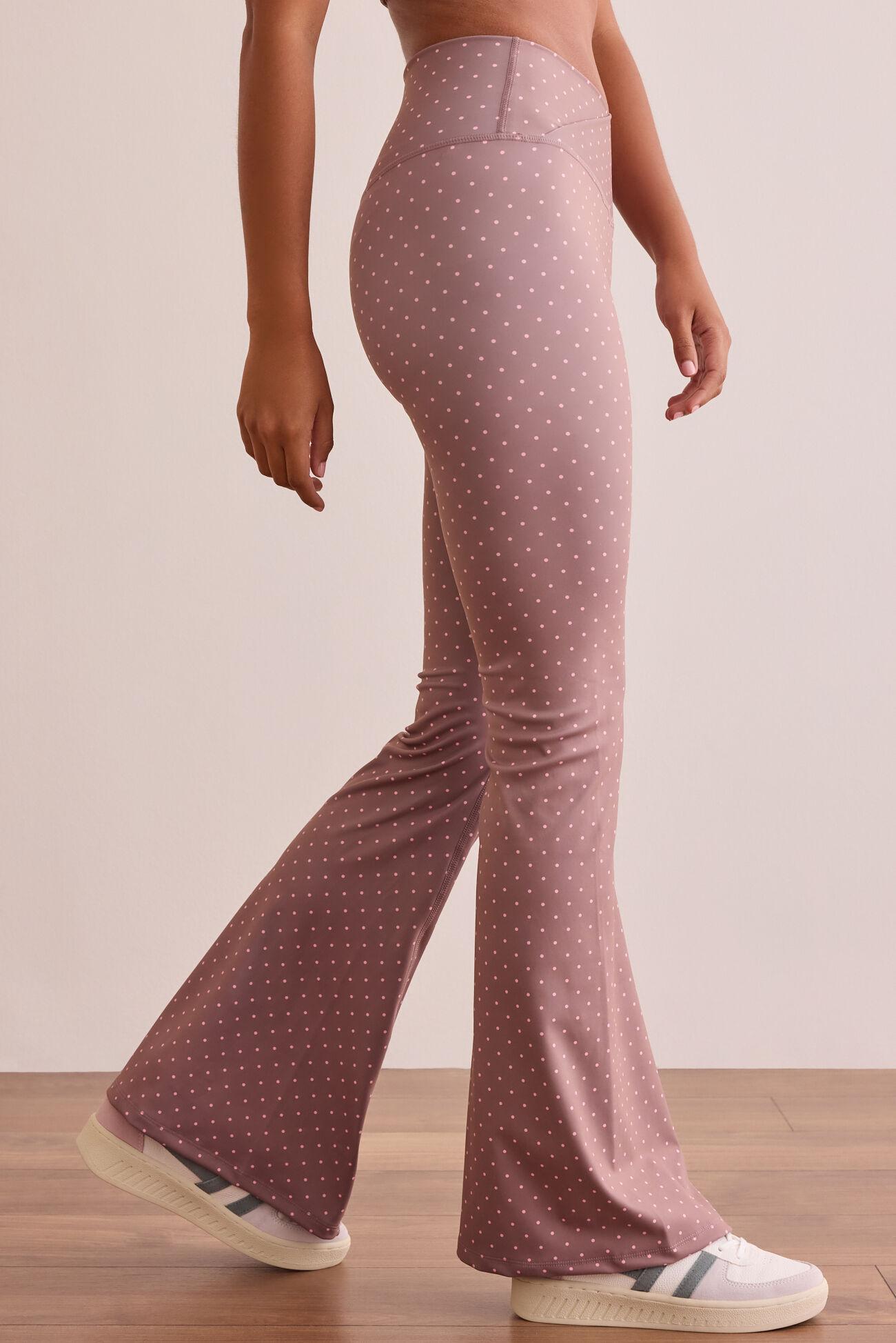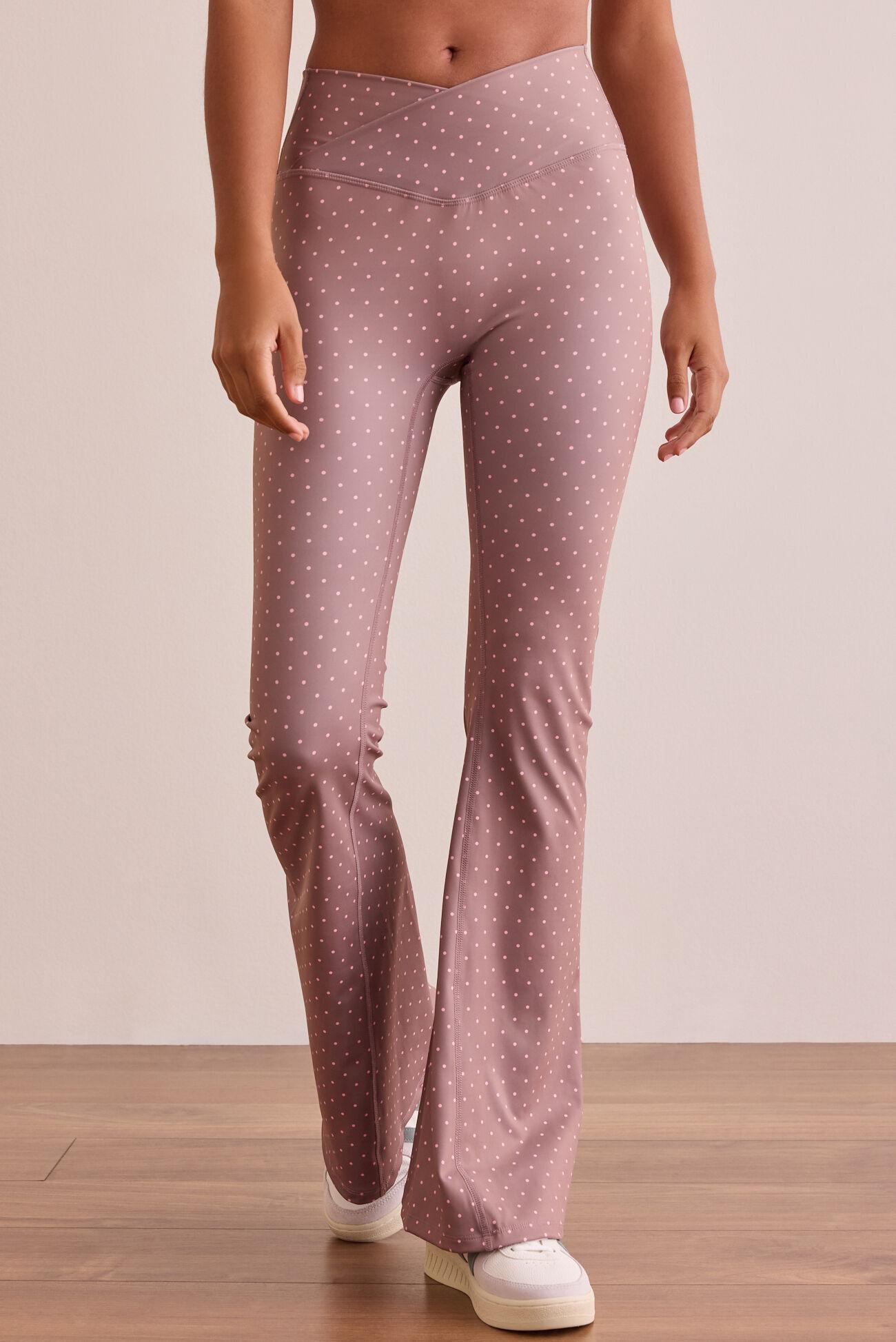 These flare leggings feature a flattering crossover design and a playful polka dot print that adds a feminine touch to your activewear. Comfortable and versatile, they’re perfect for any workout or casual activity!