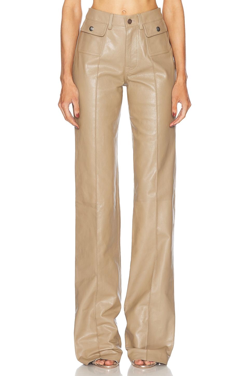 pantsSelf: 100% goat leatherLining: 92% silk, 8% elastane / Made in Italy / Professional leather cleaning only / Zip fly with button closure / Front flap pockets / Back pouch pocket design / Genuine leather / Our Style No. TFOF-WP83 / Manufacturer Style No. PAL755-LEX333 / Model is wearing size 38.