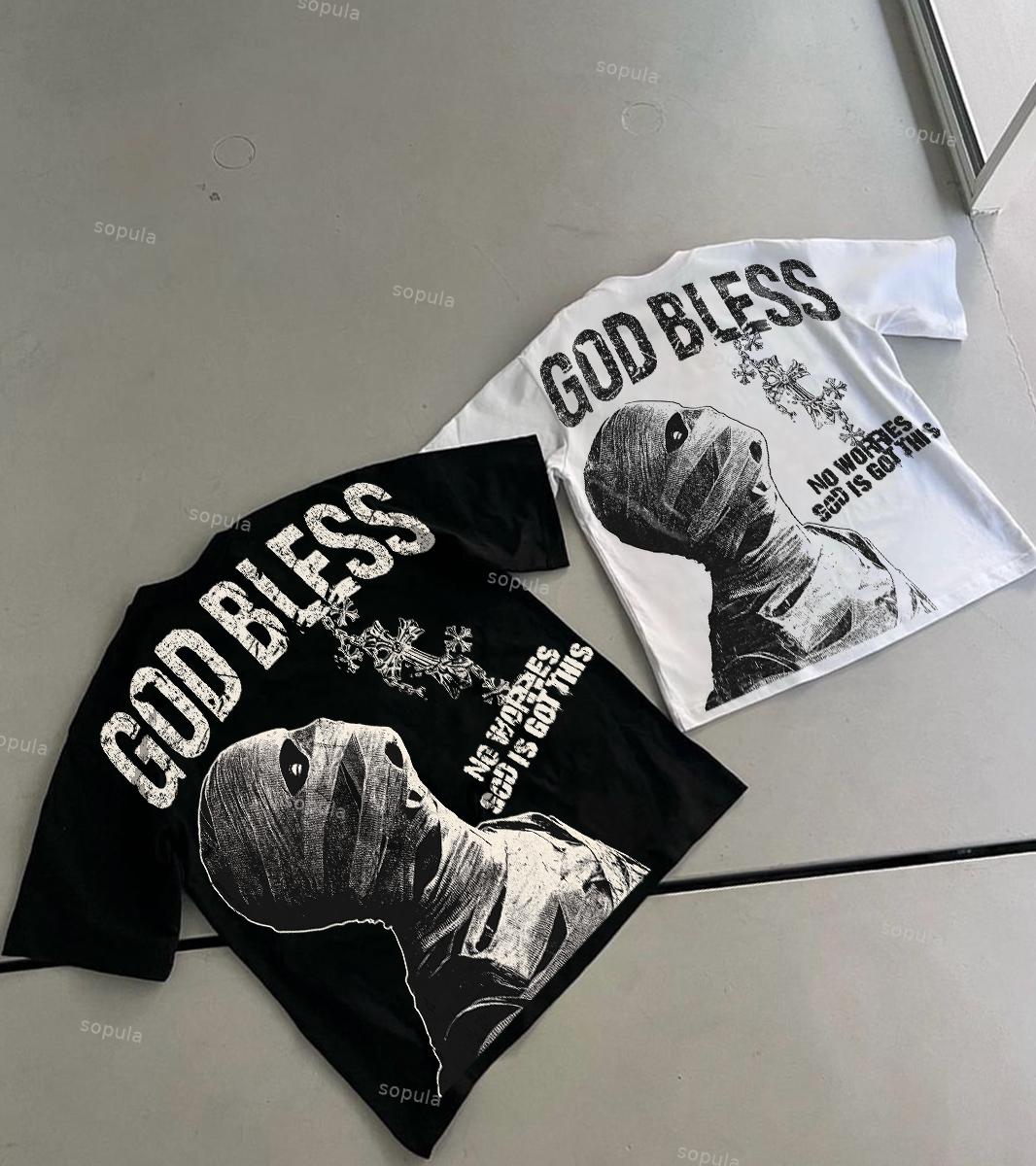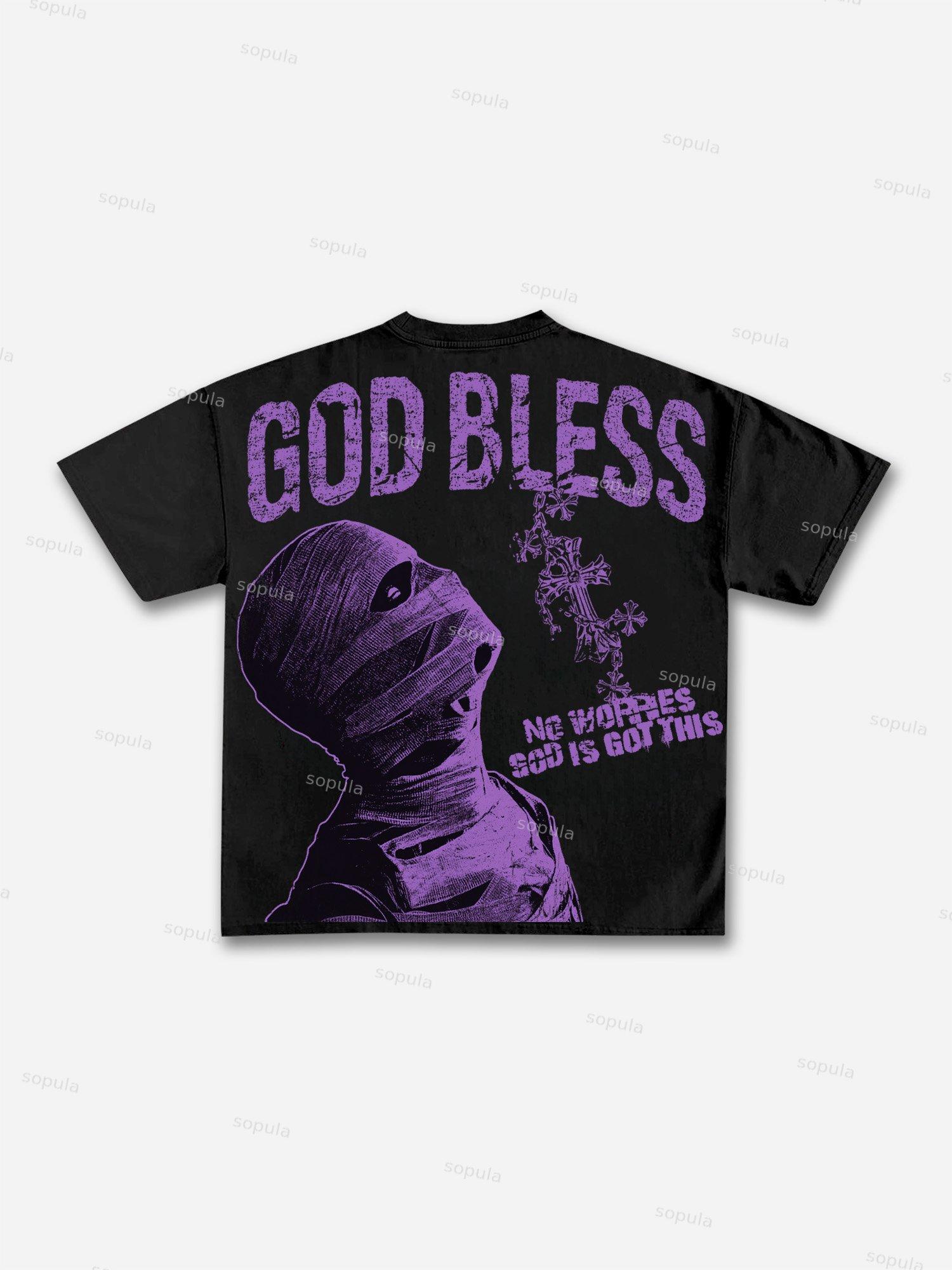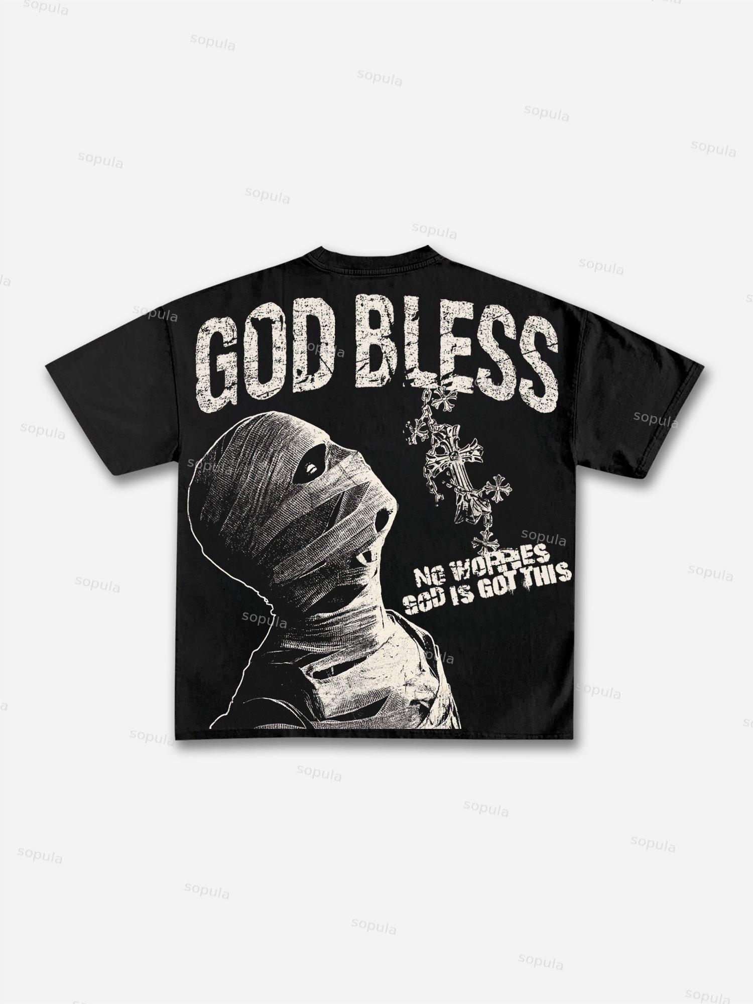 Sopula Vintage Blessed Cross God Bless You Graphic Print Cotton T-Shirt