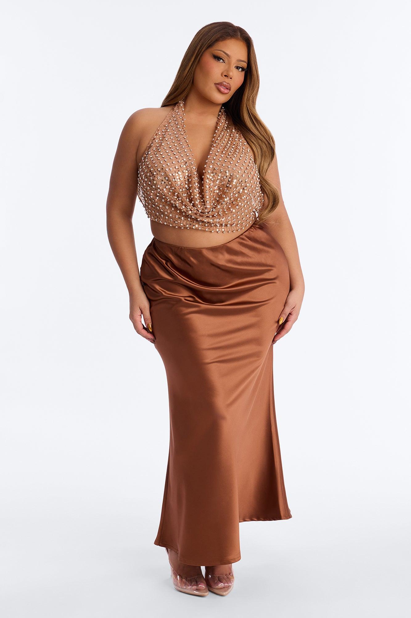 Going Out Tonight Rhinestone Halter Top - Nude