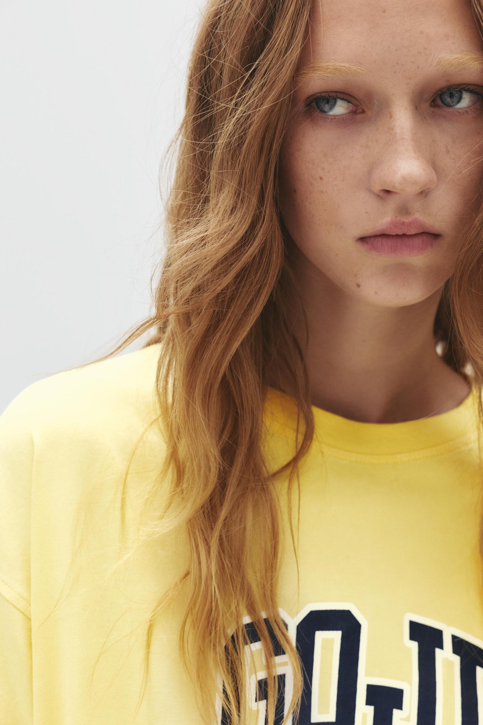 Yellow T-shirt with a contrasting 'Goji' slogan, round neck and short sleeves.