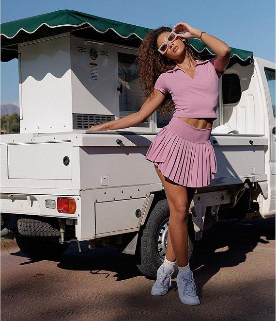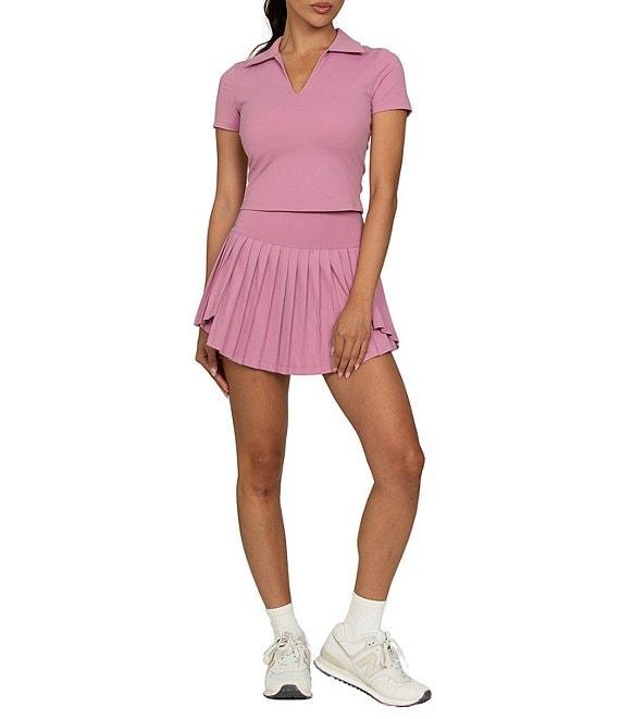 GOLD HINGE Preppy V-Neck Short Sleeve Polo Top