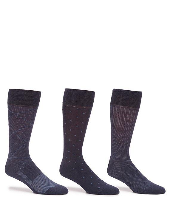From Gold Label Roundtree & Yorke, these dress socks feature: assorted three-pack: argyle, dots and mini argyle crew length anti-microbial reinforced arch for secure fit soft cotton blend for all day comfort One size fits men's shoe sizes 9-13 cotton/nylon/spandex machine wash Imported.