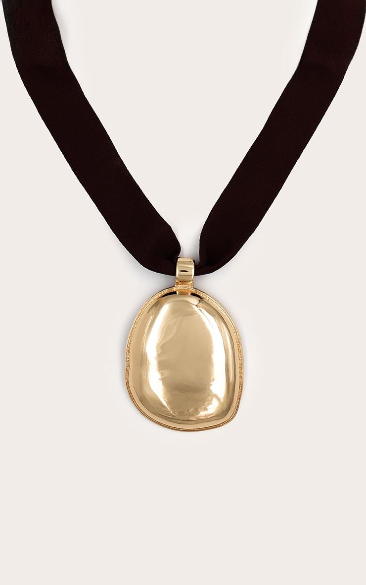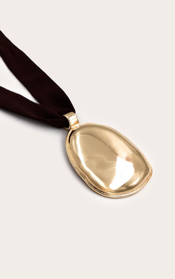 Make an assured entrance with just one piece. The gold pendant plum ribbon necklace features an oversized, high-shine gold-toned oval pendant, creating an unmissable focal point. Its deep plum ribbon offers a bold contrast, forming a confident line around the neckline. Let this statement accessory elevate a sleek bandeau top for evening occasions, or layer it over a sharp tailored blazer to add a knowing, distinct edge to your power dressing.p]:!mb-4inch>Brand: PrettyLittleThingCategory: AccessoriesProduct type: NecklaceColor: PlumMaterial: MetalOccasion: Occasion