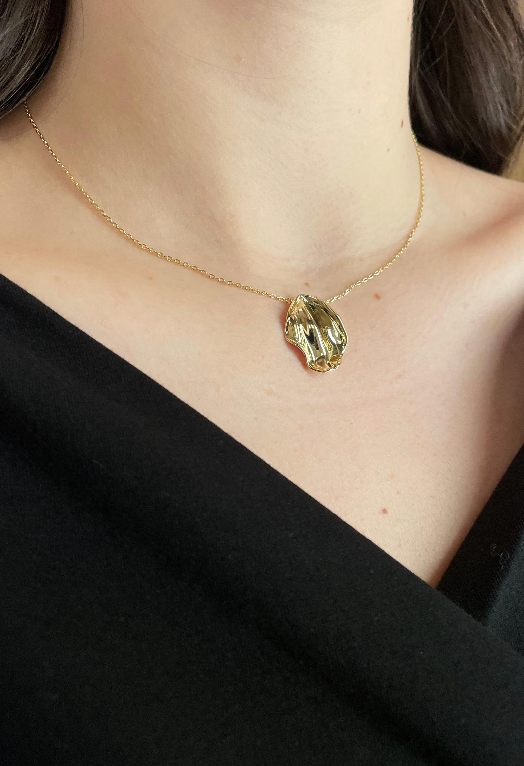 High Quality Brass Thick 14K Gold Coating Gold Petal Shaped Necklace14in chain 1in Pendant
