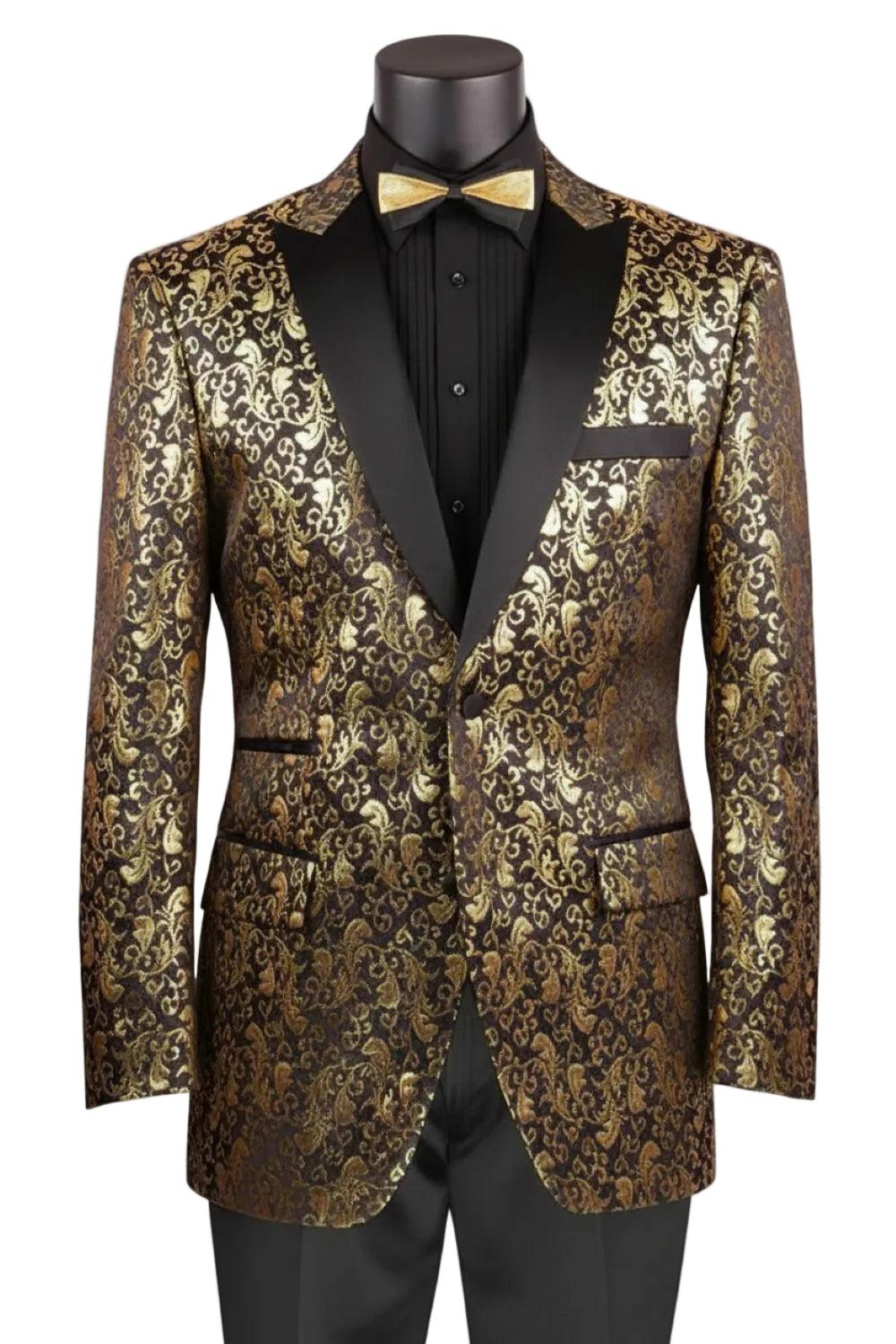 Gold Regular Fit Floral Pattern Jacket Peak Lapel