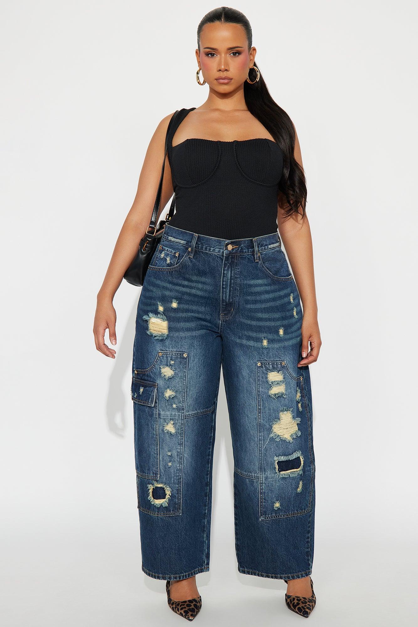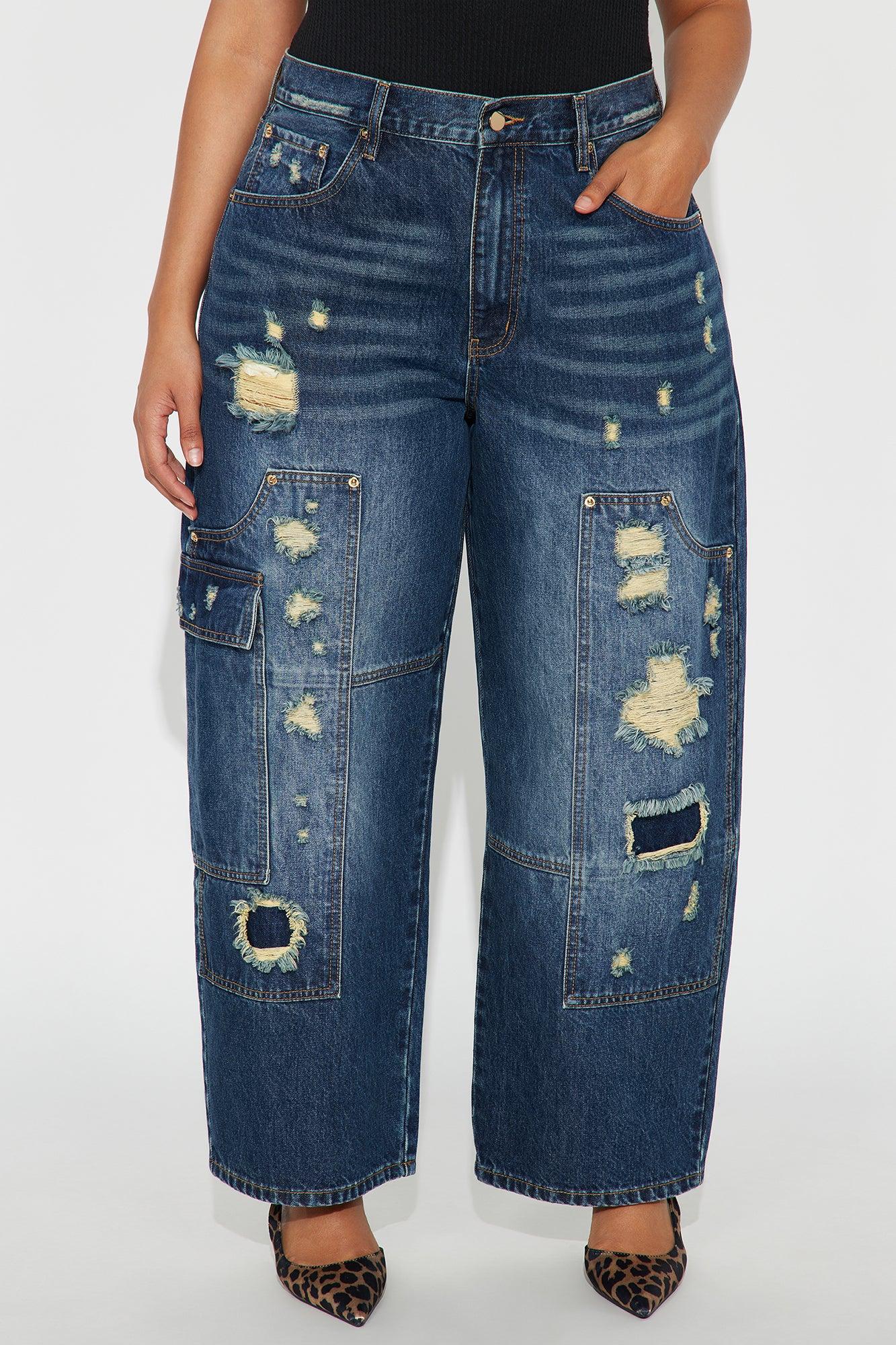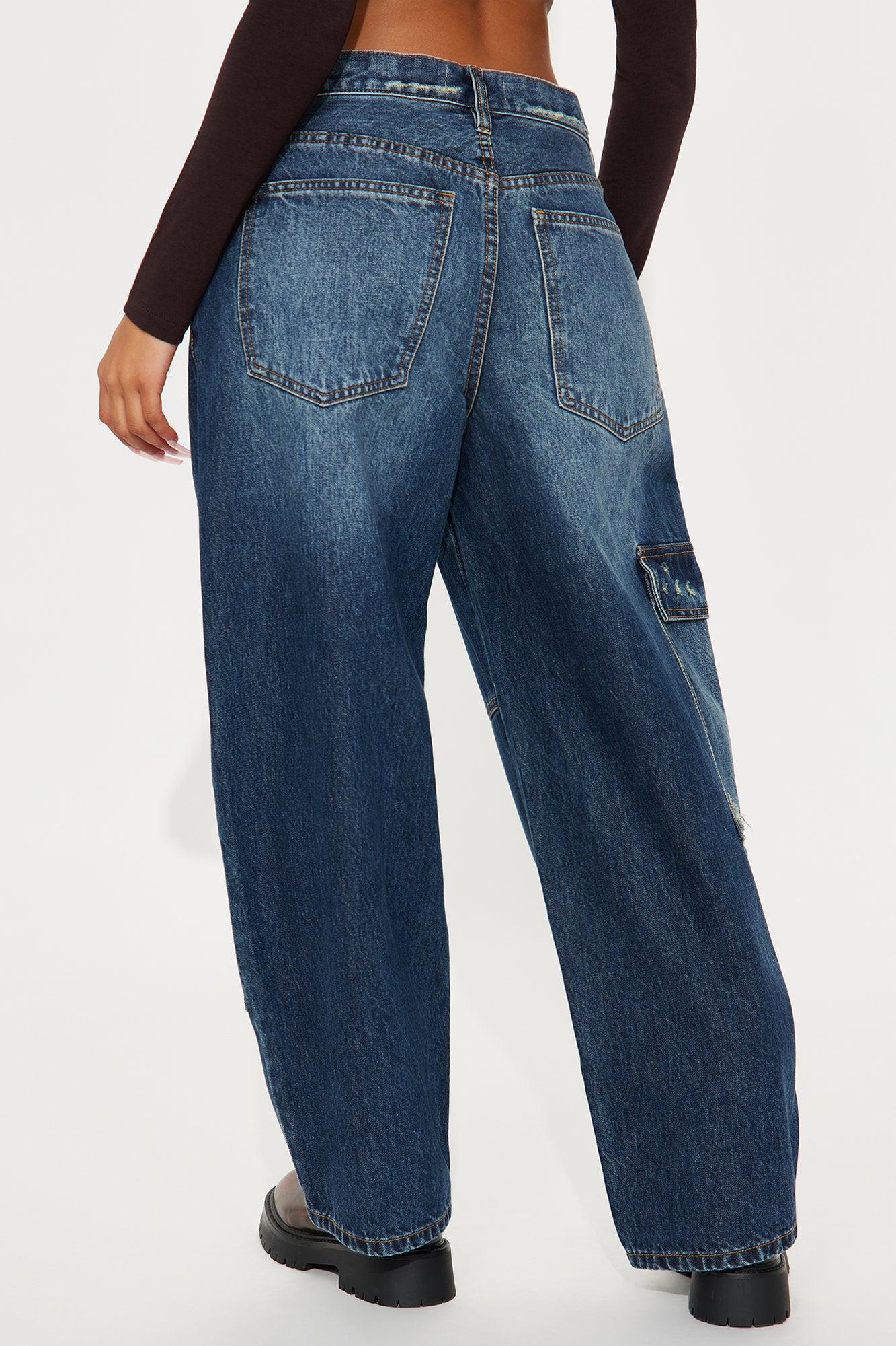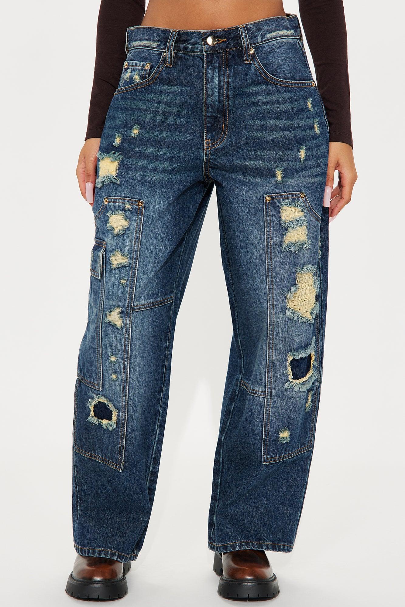 Available In Dark Wash. Loose Fit 5 Pocket Distressed Cargo Utility Details 12'' Rise 28" Inseam Non-Stretch Disclaimer -Due To The Specialized Wash & Distressing Process, Each Garment Is Unique. 100% Cotton Imported California Proposition 65WARNING: Cancer and Reproductive Harm - www.P65Warnings.ca.gov.