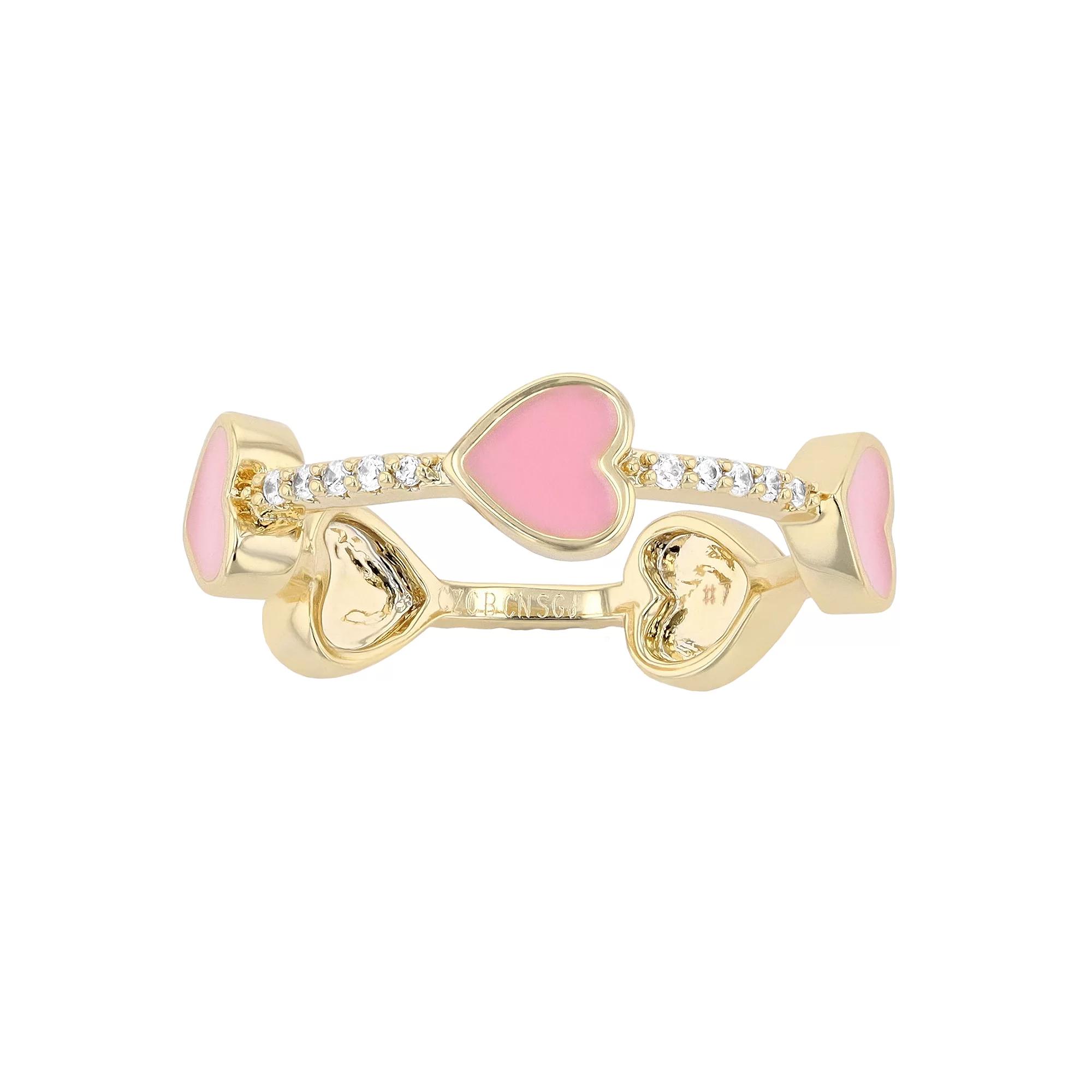 You will love the charming design of this cubic zirconia pink enamel heart stacking ring. Click on this JEWELRY & WATCHES GUIDE to learn about fit, styles, materials and more! You will love the charming design of this cubic zirconia pink enamel heart stacking ring. Click on this JEWELRY & WATCHES GUIDE to learn about fit, styles, materials and more! FEATURES Width: 6 mm Shank style: stackable Band fit: comfort fit Metal: brass Plating: 14k gold Finish: polished Packaging: velvety pouchSTONE DETAILS Stone type: cubic zirconia Shape: round Setting: prong Gemstones may have been treated to enhance their appearance. Special care may be required. Please visit our Gemstone Treatment & Special Care Guide for more information. Size: 5. Color: Gold Tone Pink. Gender: female. Age Group: adult.