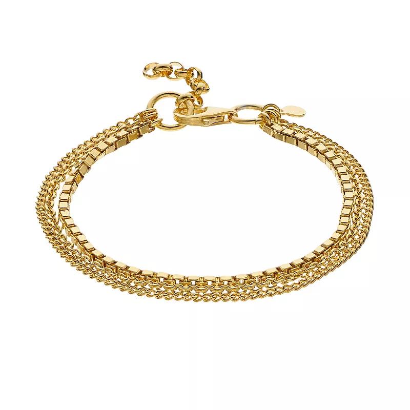 Accent your look with the eye-catching style of this gold-tone sterling silver double-strand bracelet. Accent your look with the eye-catching style of this gold-tone sterling silver double-strand bracelet. Length: 8 in. Clasp: lobster claw Metal: sterling silver Plating: gold tone Finish: diamond-cut Packaging: boxed Size: 8". Color: Yellow. Gender: female. Age Group: adult. Material: Gold Over Sterling.