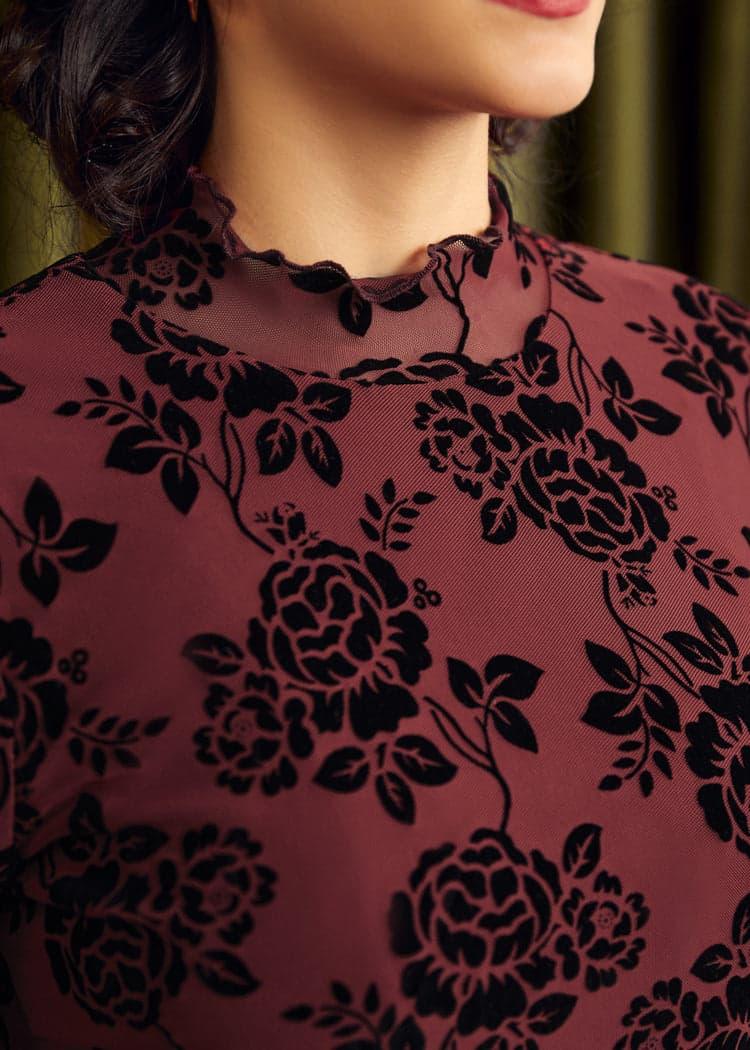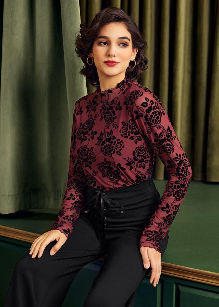 Embody the warmth and richness of the season with the Golden Era Glow Turtleneck Top in Crimson Embrace, from our ModCloth namesake label. This dark red knit top is your new go-to for chilly winter days, combining snug material with timeless elegance. Ideal for layering or wearing solo, its classic turtleneck design makes it perfect for a family gathering, a festive shopping day, or simply enjoying a quiet evening by the fireplace. Add it to your wardrobe for an instant touch of classic winter charm.Machine wash cold, line dryShell: 95% Polyester, 5% Elastane Contrast: 100% PolyesterLength 23.75""ImportedModel is wearing a US size SModel Measurements: Height 5'7""/Bust 34""/Waist 24""/Hips 36"
