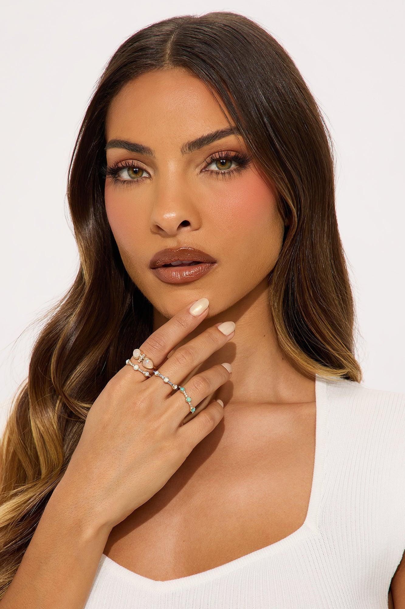 Golden Hour Jeweled 4 Piece Ring Set - Gold Female