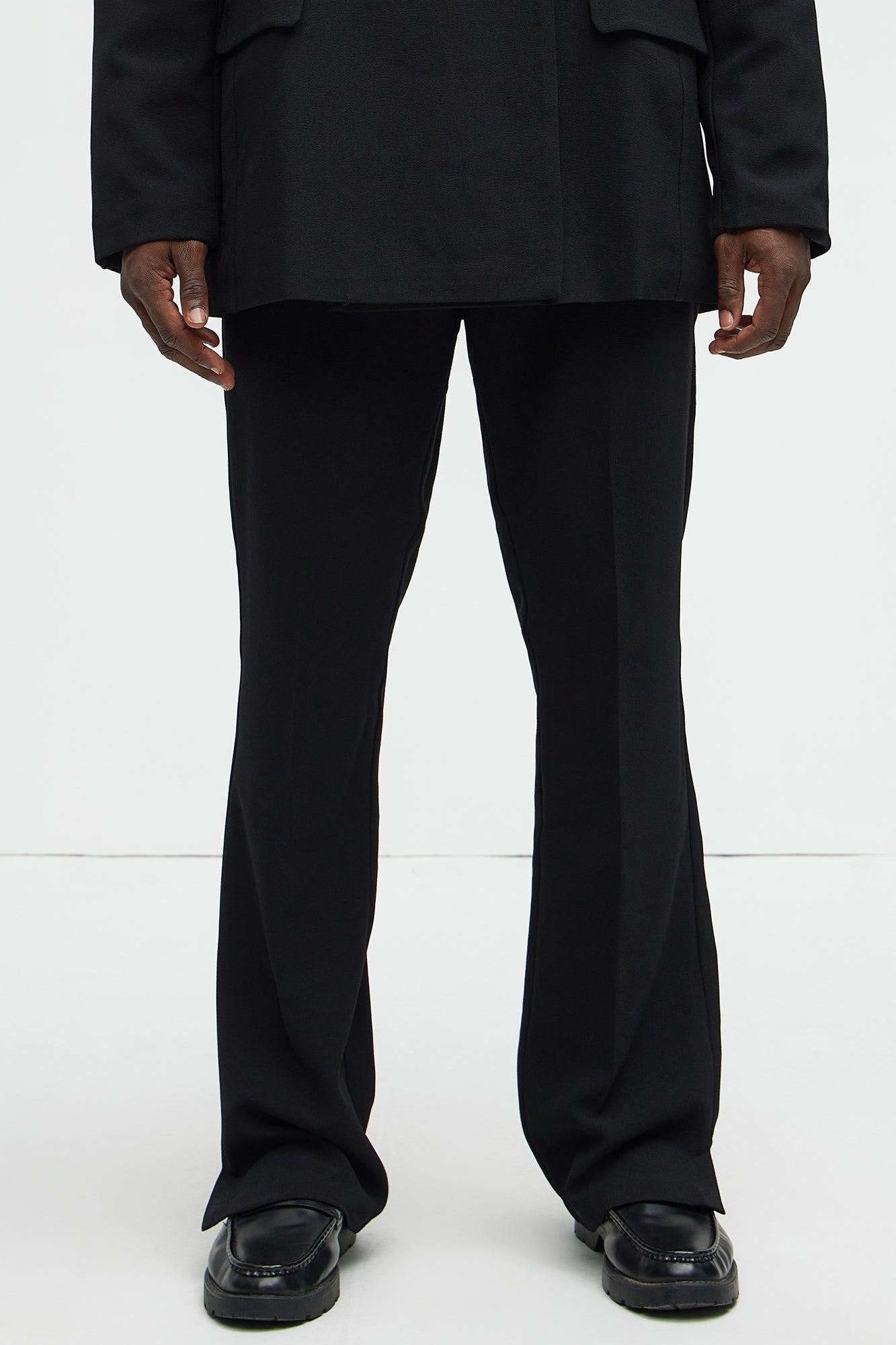 Model Height: 6'4 - Waist Size: 34 - Wearing Large Big & Tall: Height 6'5 - Waist Size: 42 - Wearing XXXL Available In Black And Brown. Flare Fit Stretch Fabric Zip Fly Button Closure Side Hand Pockets Back Pockets Side Slit At Hem Detail Pair With "Golden Hour Short Sleeve Shirt" 96% Polyester 4% Elastane Imported