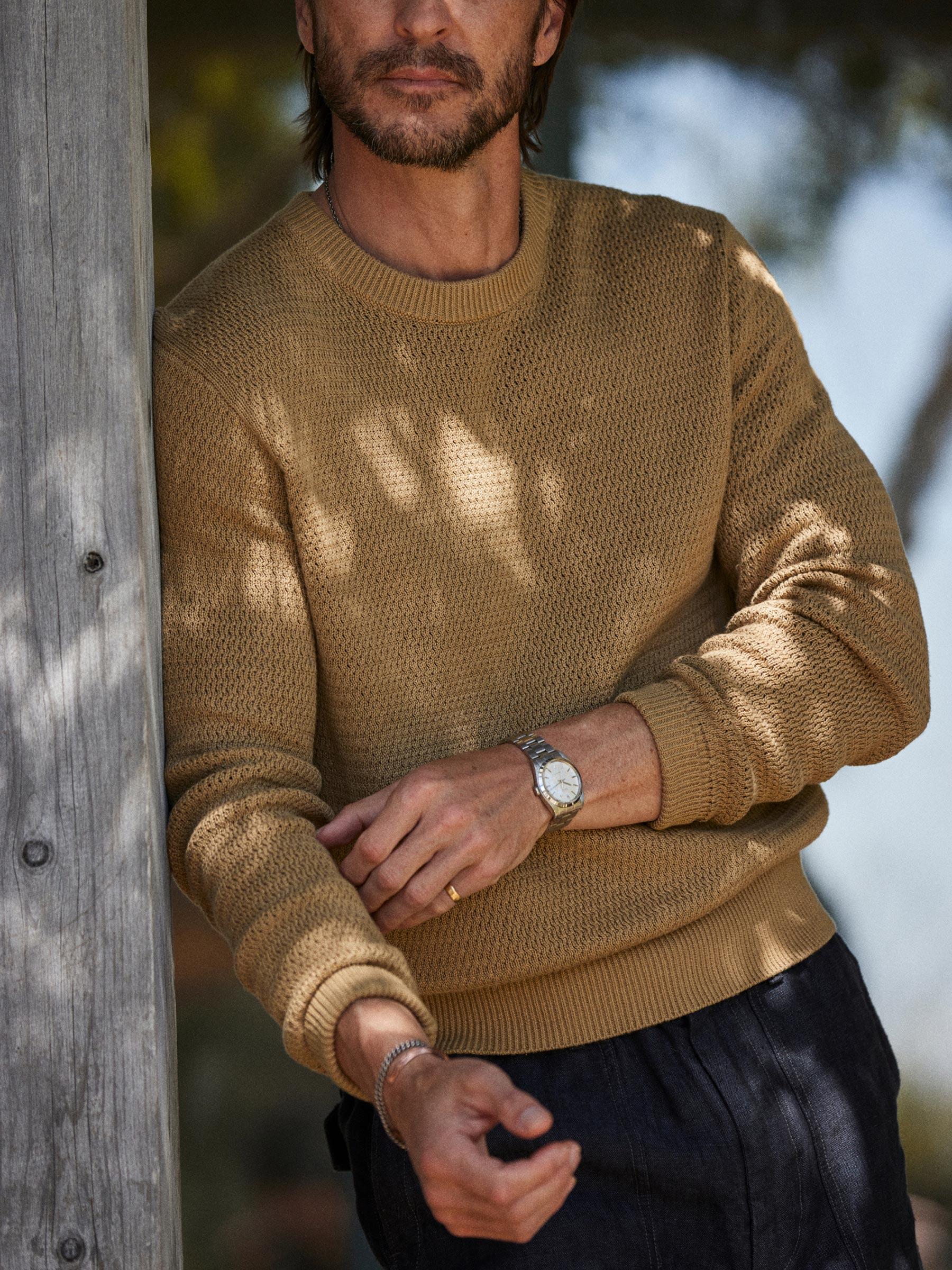 Golden Khaki Rope-Knit Yuma Hemp Crew