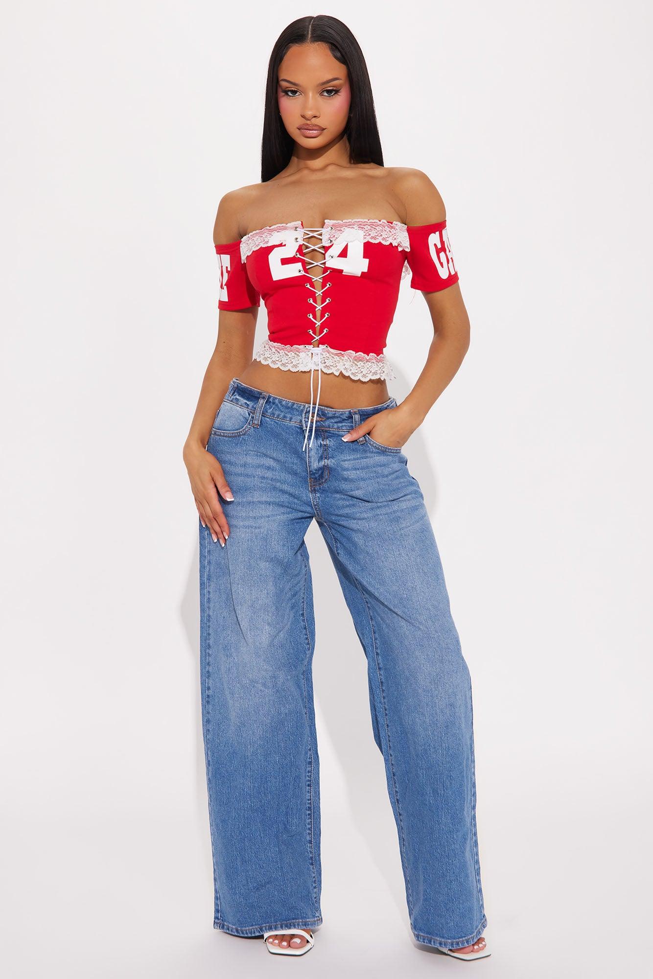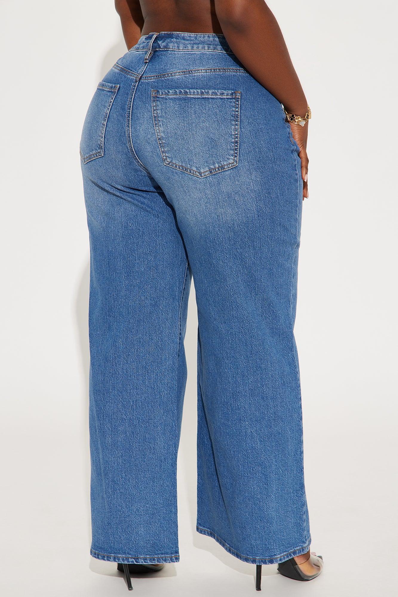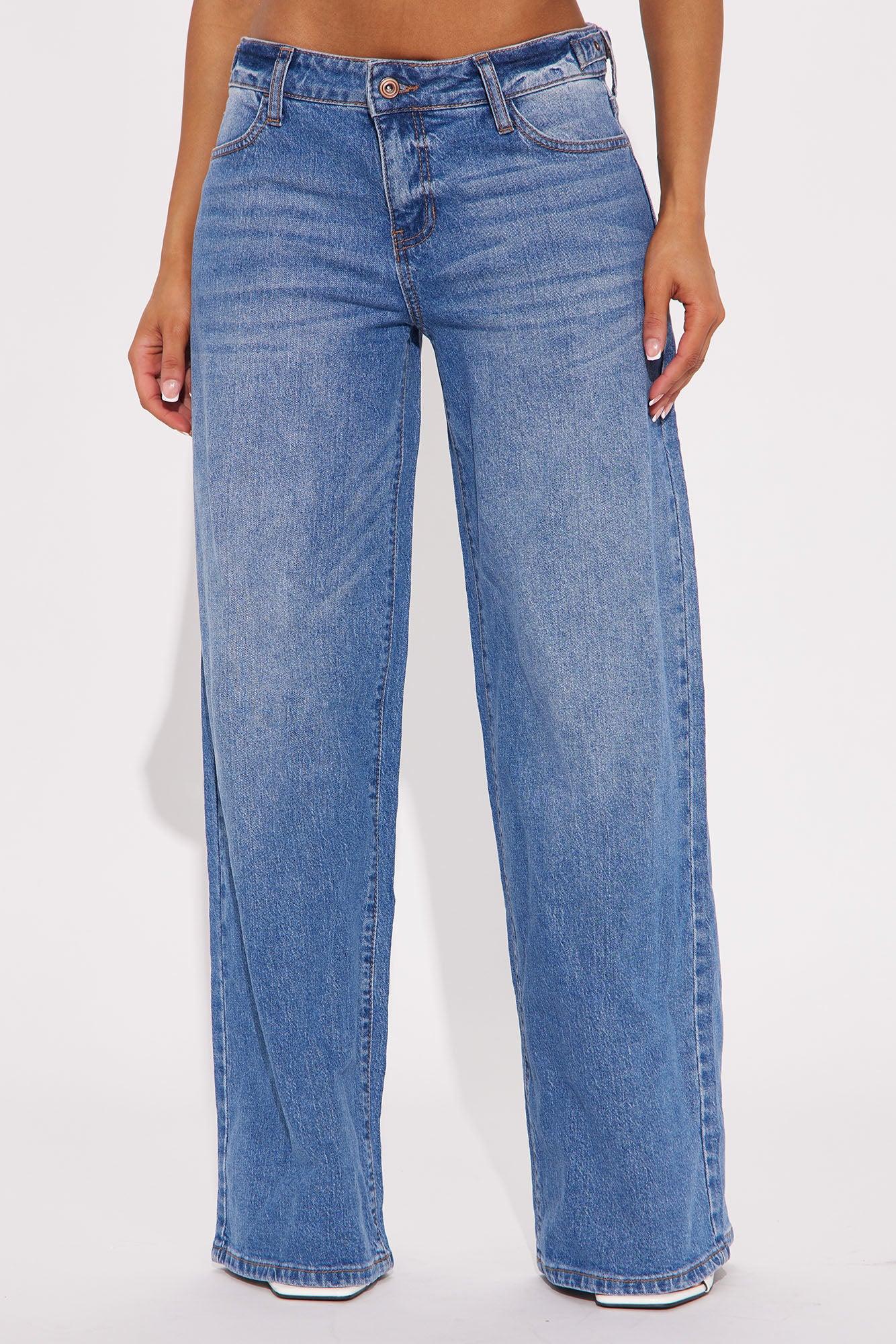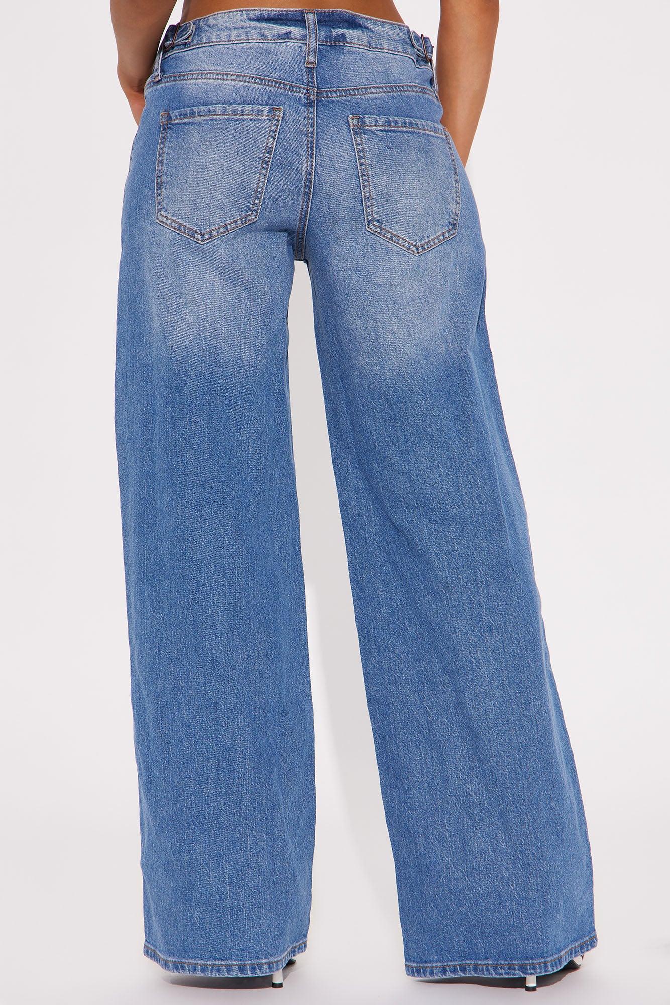 Available In Medium Wash. Wide Leg Jean 5 Pocket Waistband Tabs 10" Mid Rise 32" Inseam Low Stretch Disclaimer: Due To The Specialized Wash, Each Garment Is Unique. 99% Cotton 1% Spandex Imported California Proposition 65WARNING: Cancer and Reproductive Harm - www.P65Warnings.ca.gov.