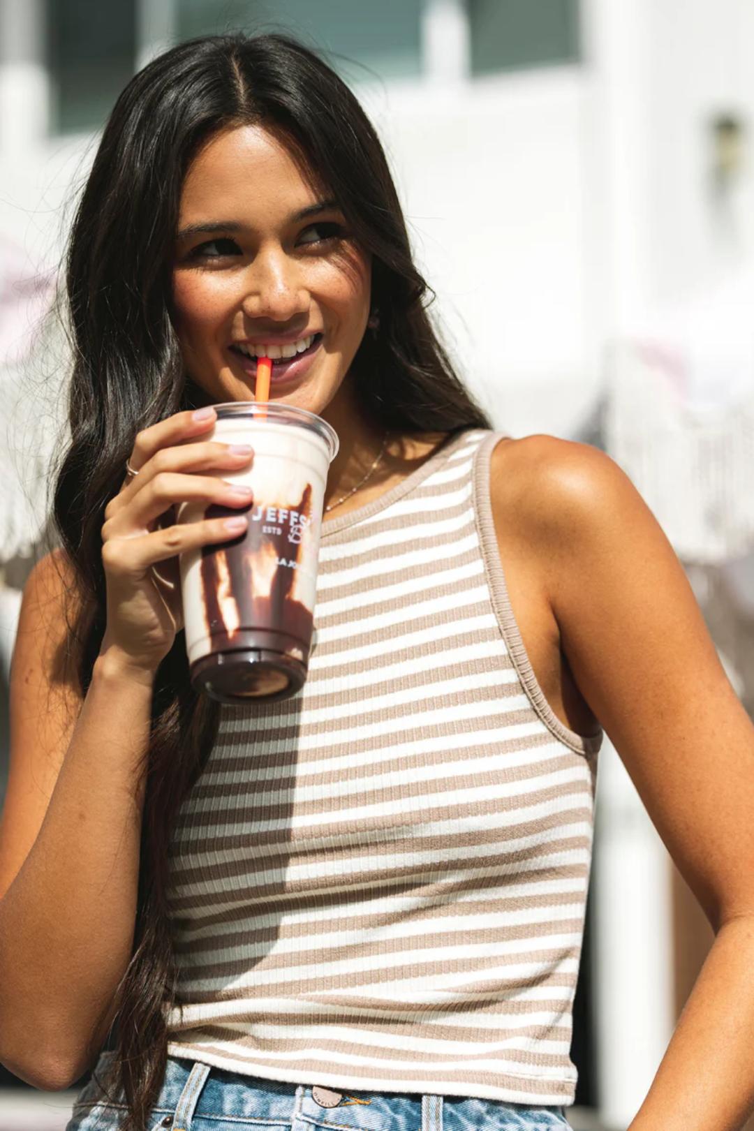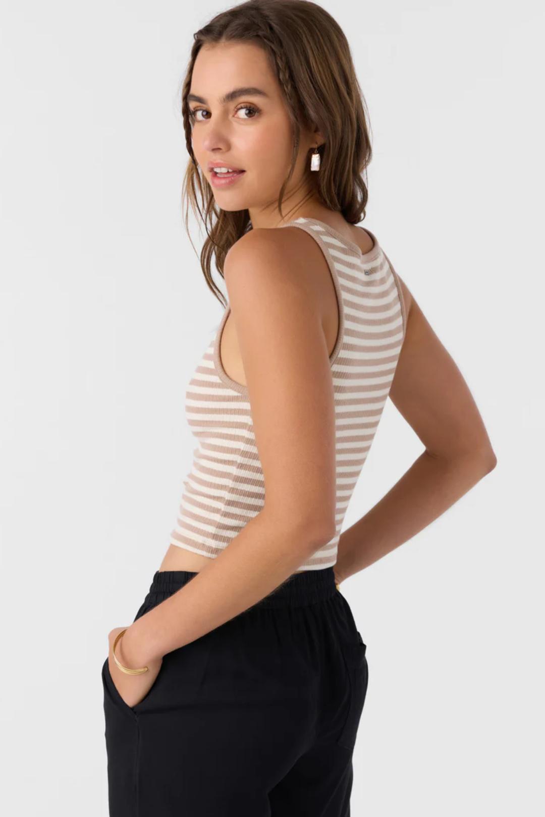 Goldlyn Top will become your new go-to for timeless style and ultimate comfort. It's a skimmer-length fit tank with a classic yarn-dye stripe design and is made from a rib texture fabric feel. A must-have for your wardrobe!