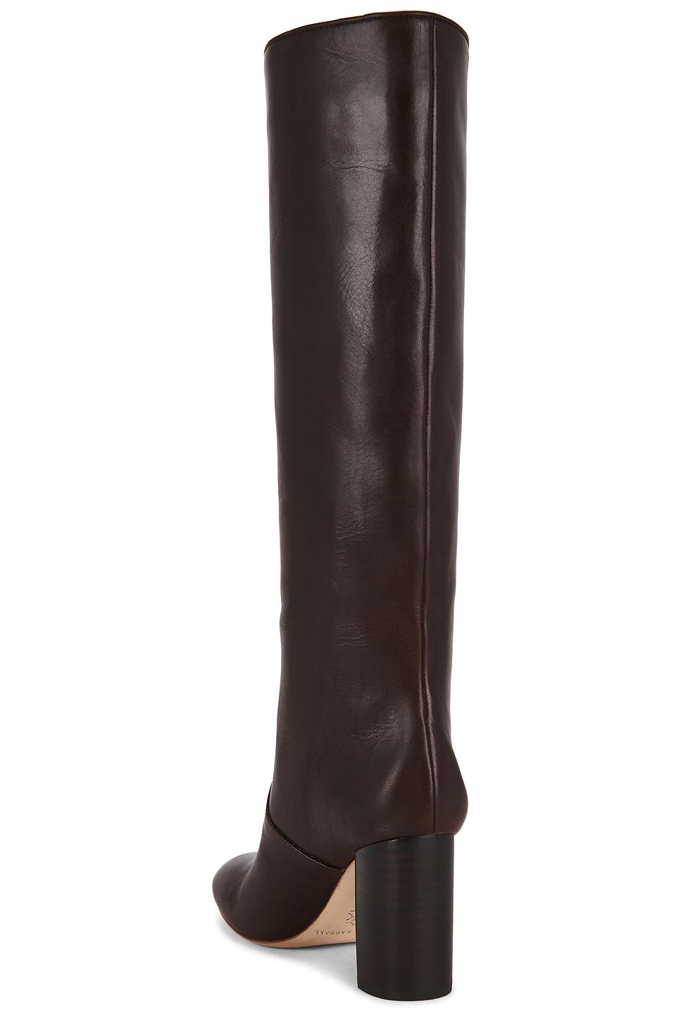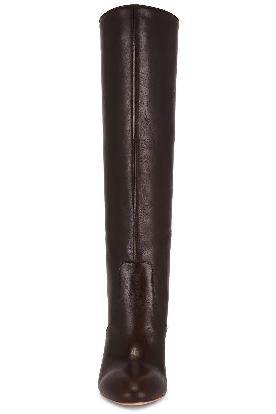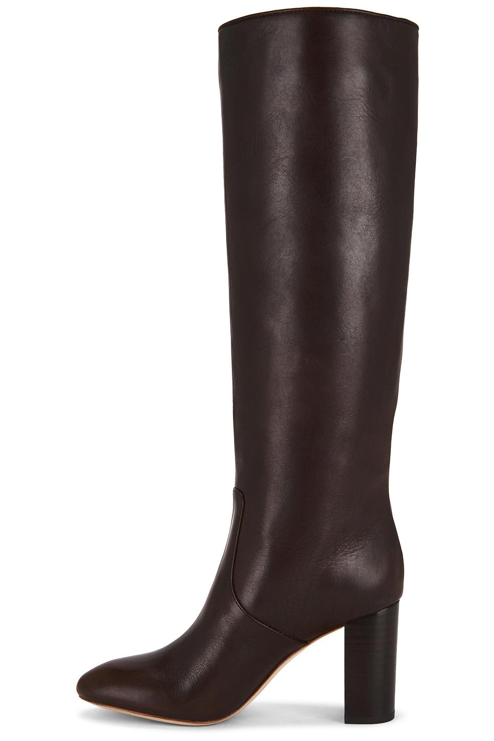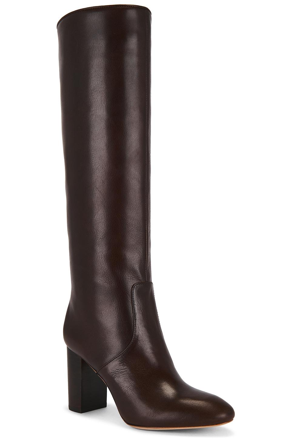 Leather upper with leather sole. Pull-on styling. Leather lining and forbid. Round toe. Stacked heel. Approx 75mm/ 3 inch heelApprox 381mm/ 15 inch shaftOpening measures approx 15" in circumference. Made in China. Revolve Style No. LOEF-WZ588. Manufacturer Style No. GOLDY-VA-ESPRE.