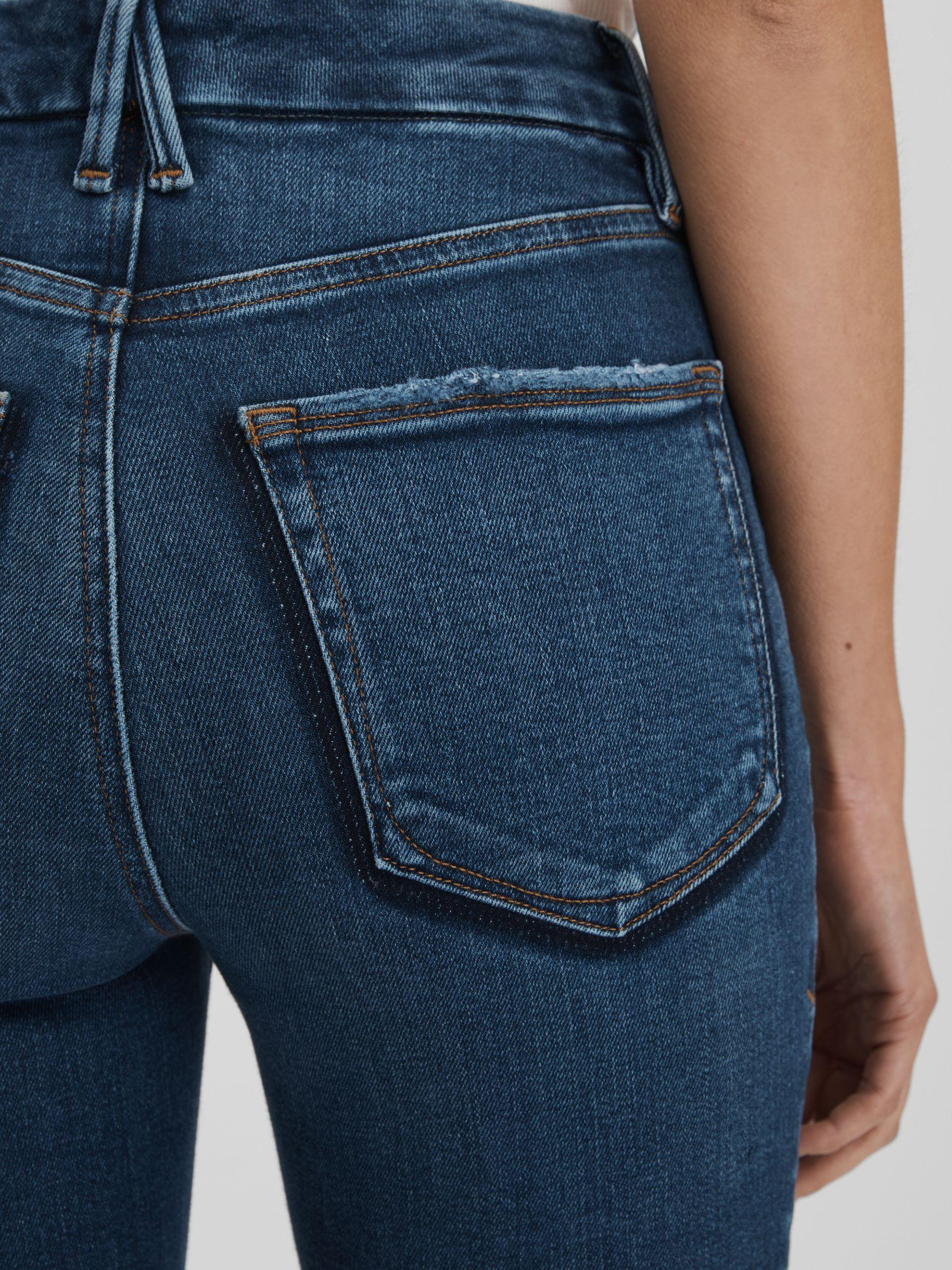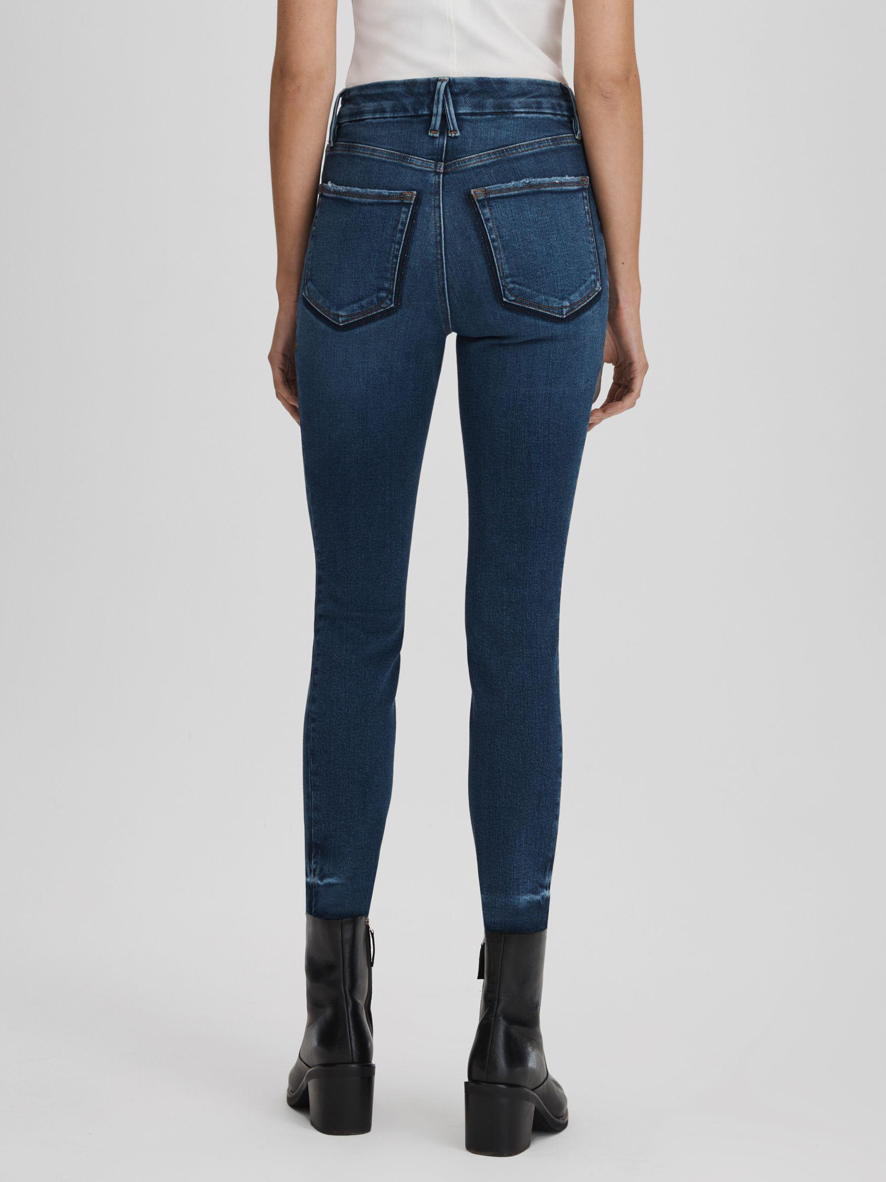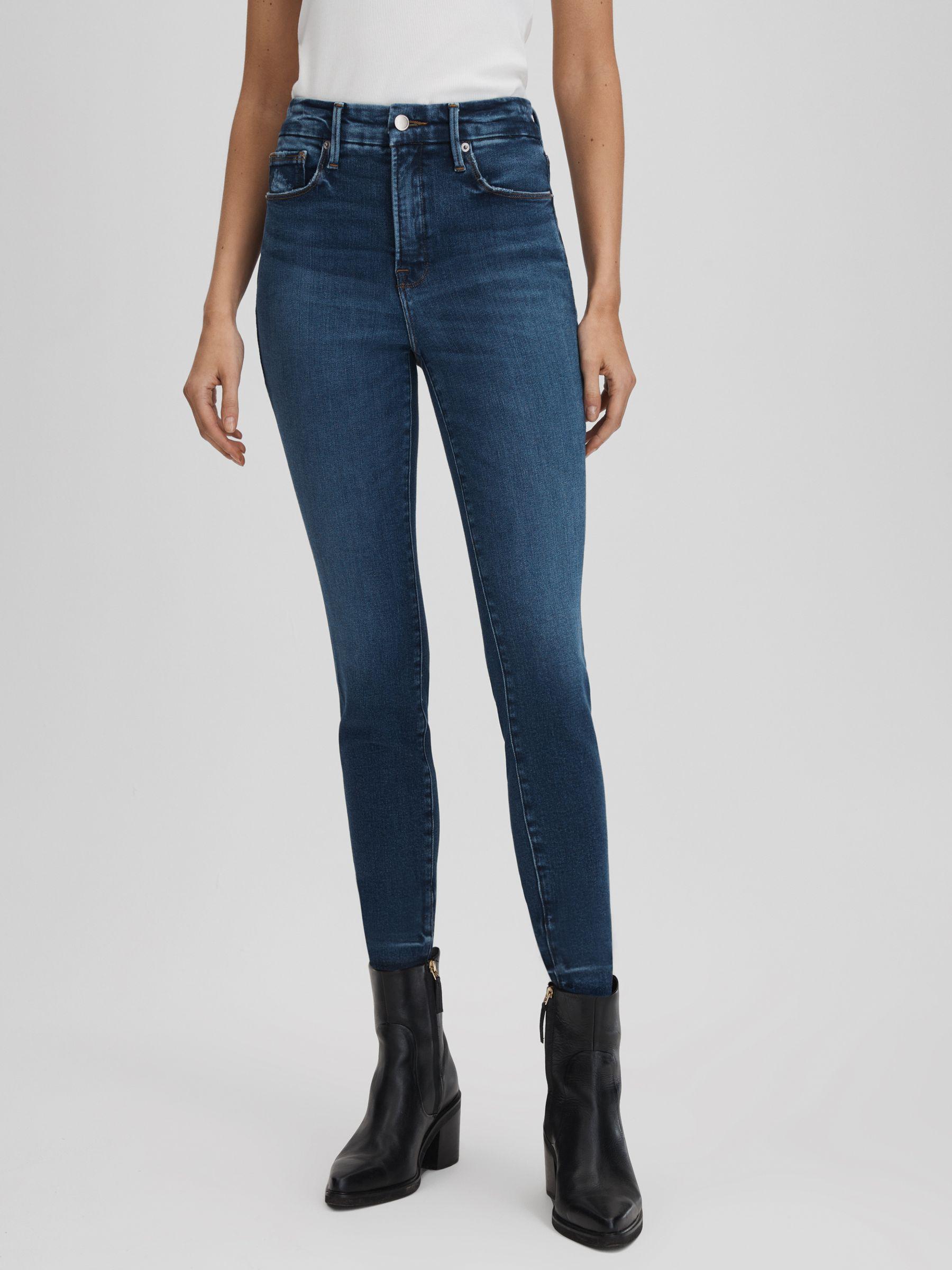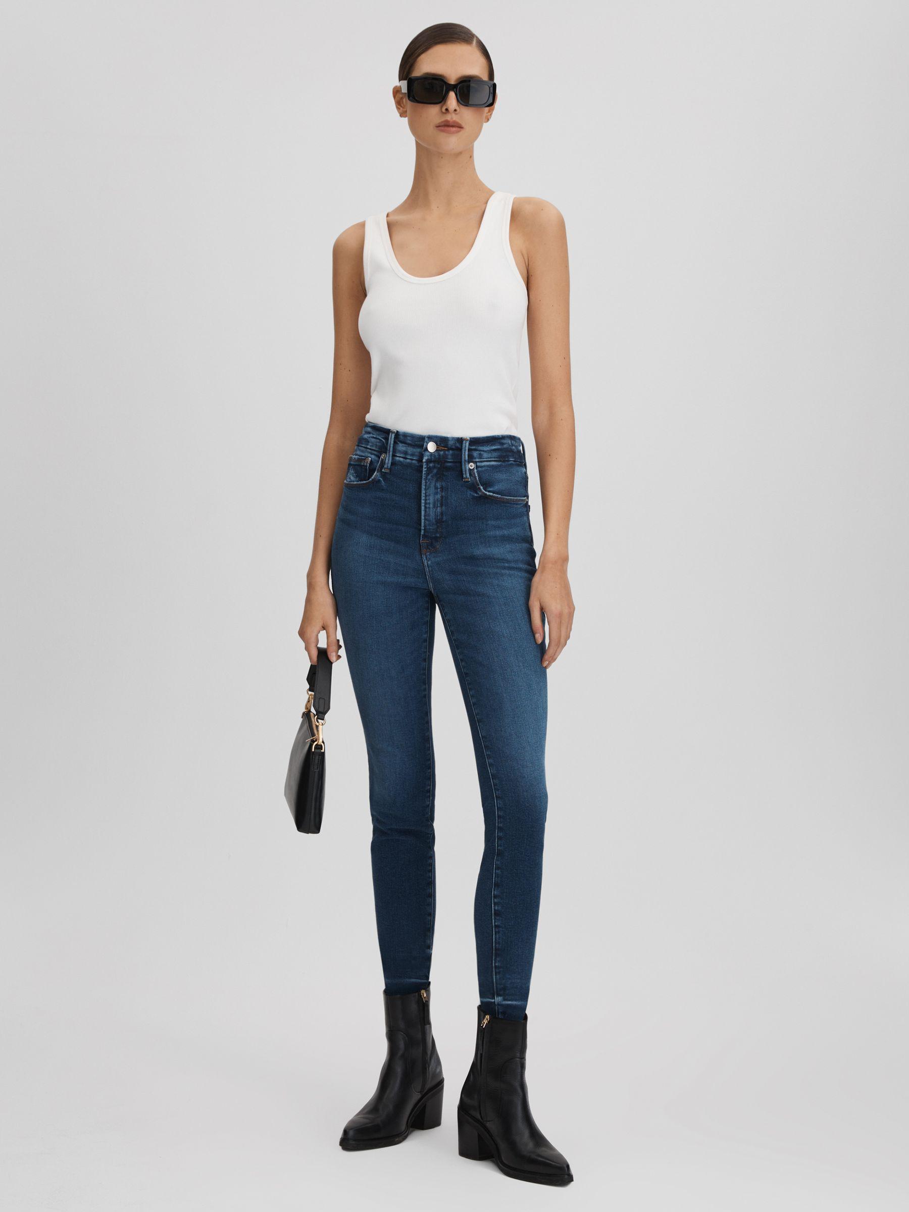 These skinny jeans are cut in a mid-rise, slightly cropped silhouette. Their light compression denim and gap-proof waistband are engineered to sculpt and smooth the profile. Distressed and dark-wash detailing modernises the look. Light compression denim Mid rise Reinforced belt loops Gap-proof waistband Five-pocket style Distressed and dark-wash detailing Cropped Skinny fit Good American, curated by Reiss, is a collection designed to work perfectly with your existing Reiss wardrobe. Innovative, solution-led denim and lifestyle garments champion inclusivity, enhance curves and represent body acceptance. By women, for women.