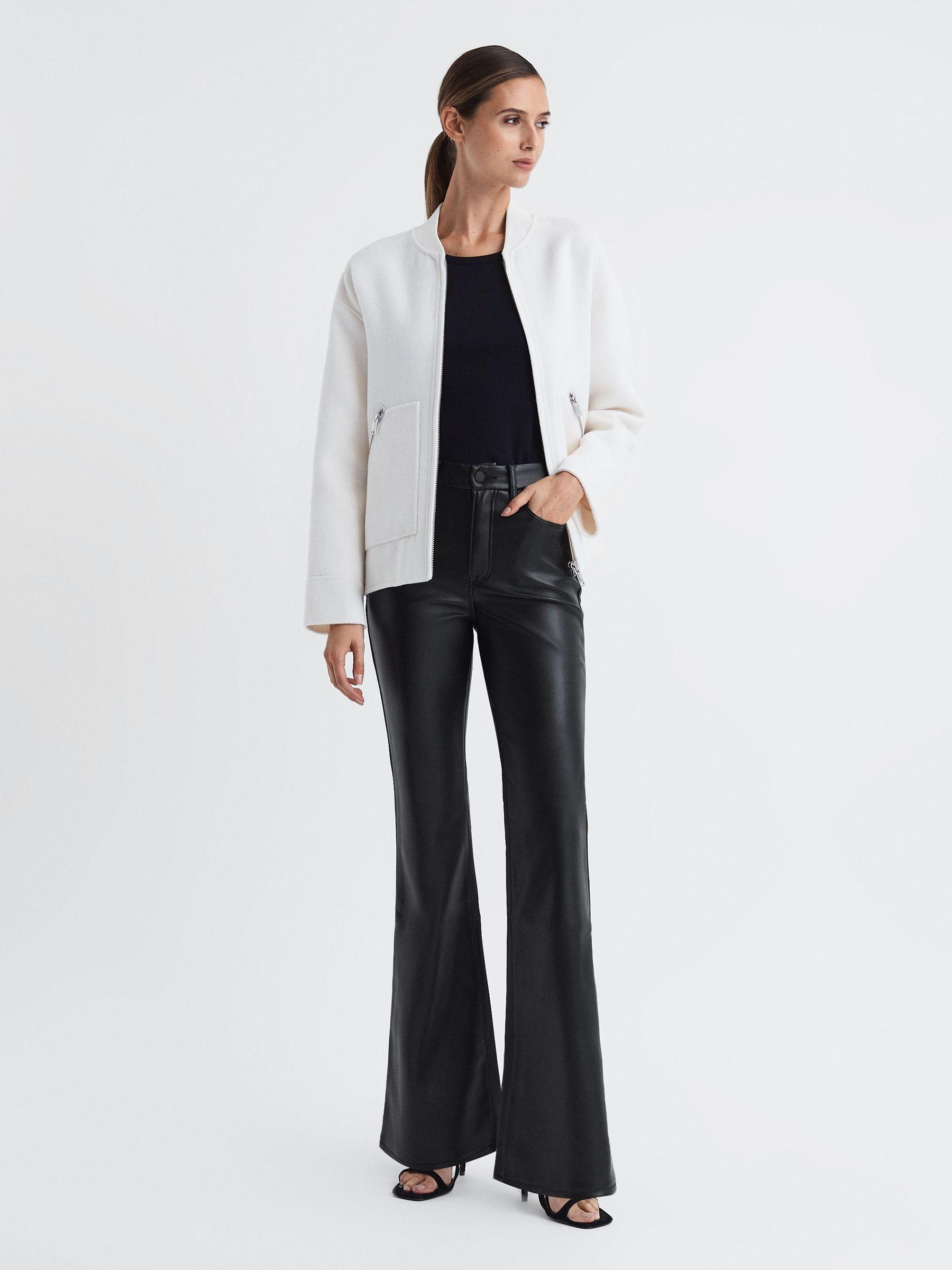 Good American, curated by Reiss, is a collection designed to work perfectly with your existing Reiss wardrobe. Innovative, solution-led denim and lifestyle garments champion inclusivity, enhance curves and represent body acceptance. By women, for women. The Good Legs Flare Jeans are cut from the brand’s signature Better Than Leather fabric, a thick, faux leather construction for a structured and secure fit. Featuring a high-rise and a flared leg, this style reinvents an iconic 70s silhouette for the modern woman. Elevate the look with Reiss heels, or pair with trainers for a smart-casual mood. Better Than Leather – heavyweight faux leather construction High rise Five-pocket style Zip-fly and button closure Flared leg