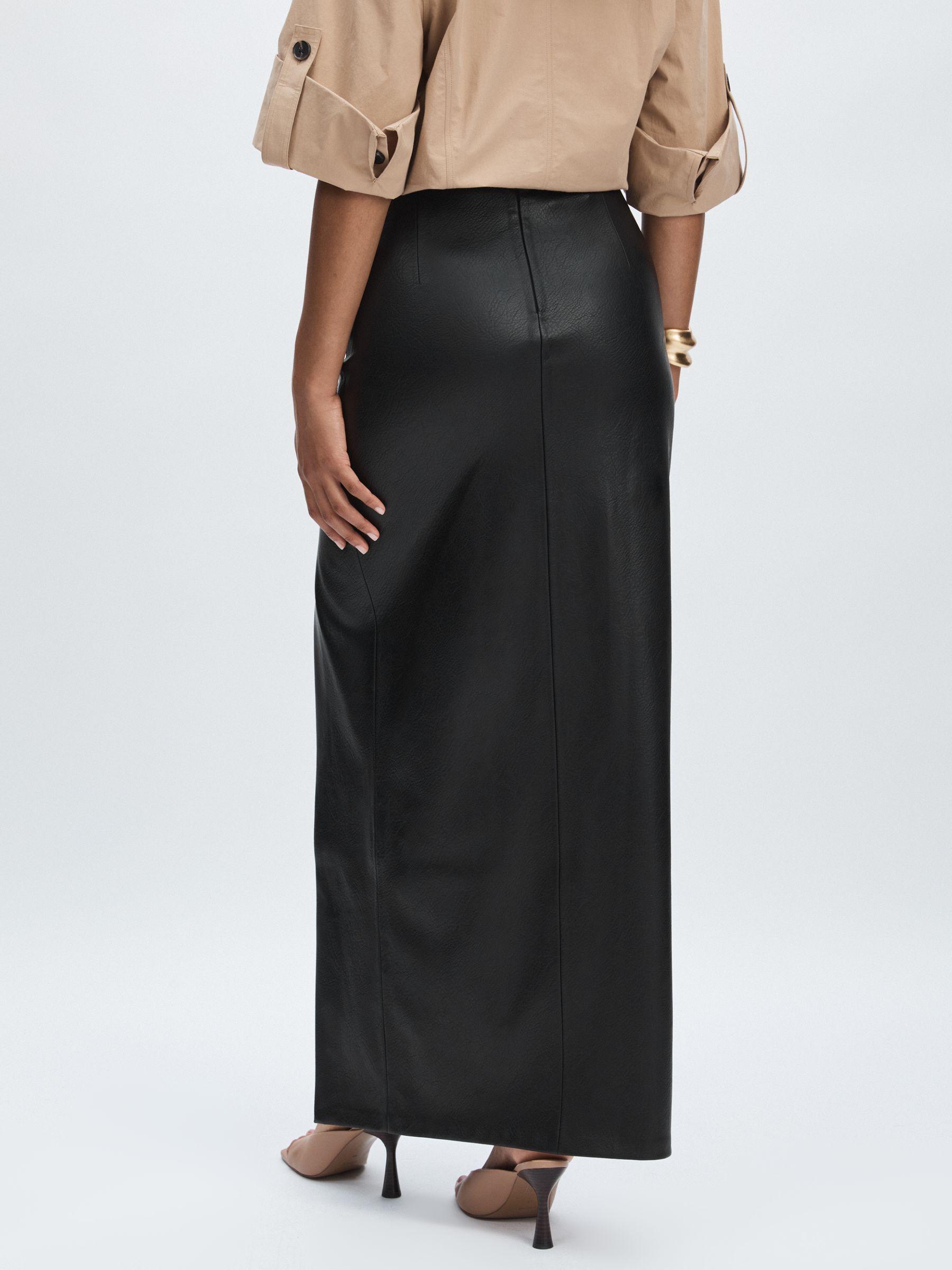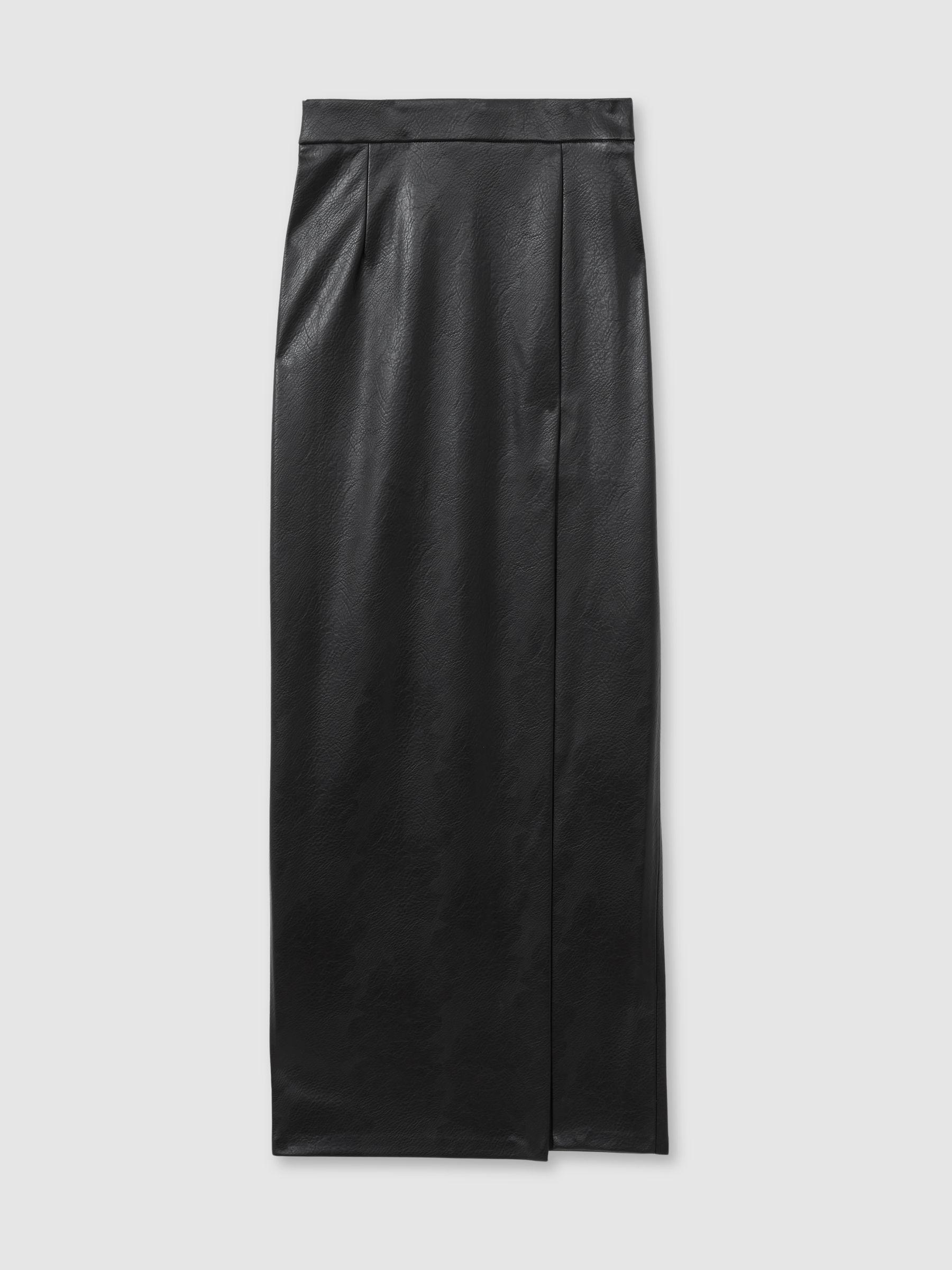 Good American’s Faux-Leather Maxi skirt has a body-skimming silhouette and an ultra-flattering high-rise waistline. Crafted from pebbled faux leather, the skirt has a rich and tactile feel, with a luxurious matte finish. A thigh-high side slit is the perfect finishing touch. Faux leather Slim fit High rise Side slit Maxi length Back zip closure Good American, curated by Reiss, is a collection designed to work perfectly with your existing Reiss wardrobe. Innovative, solution-led denim and lifestyle garments champion inclusivity, enhance curves and represent body acceptance. By women, for women.